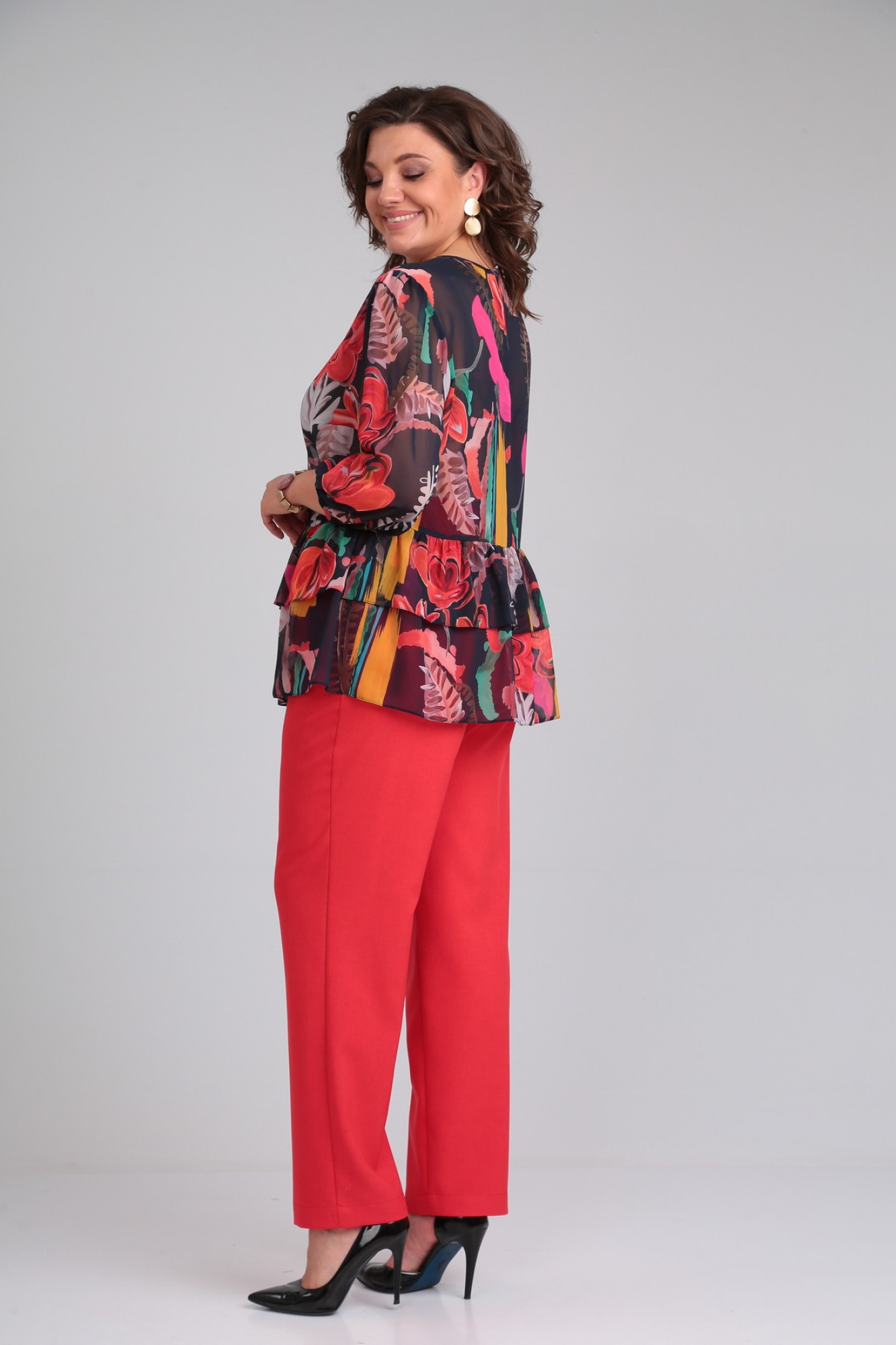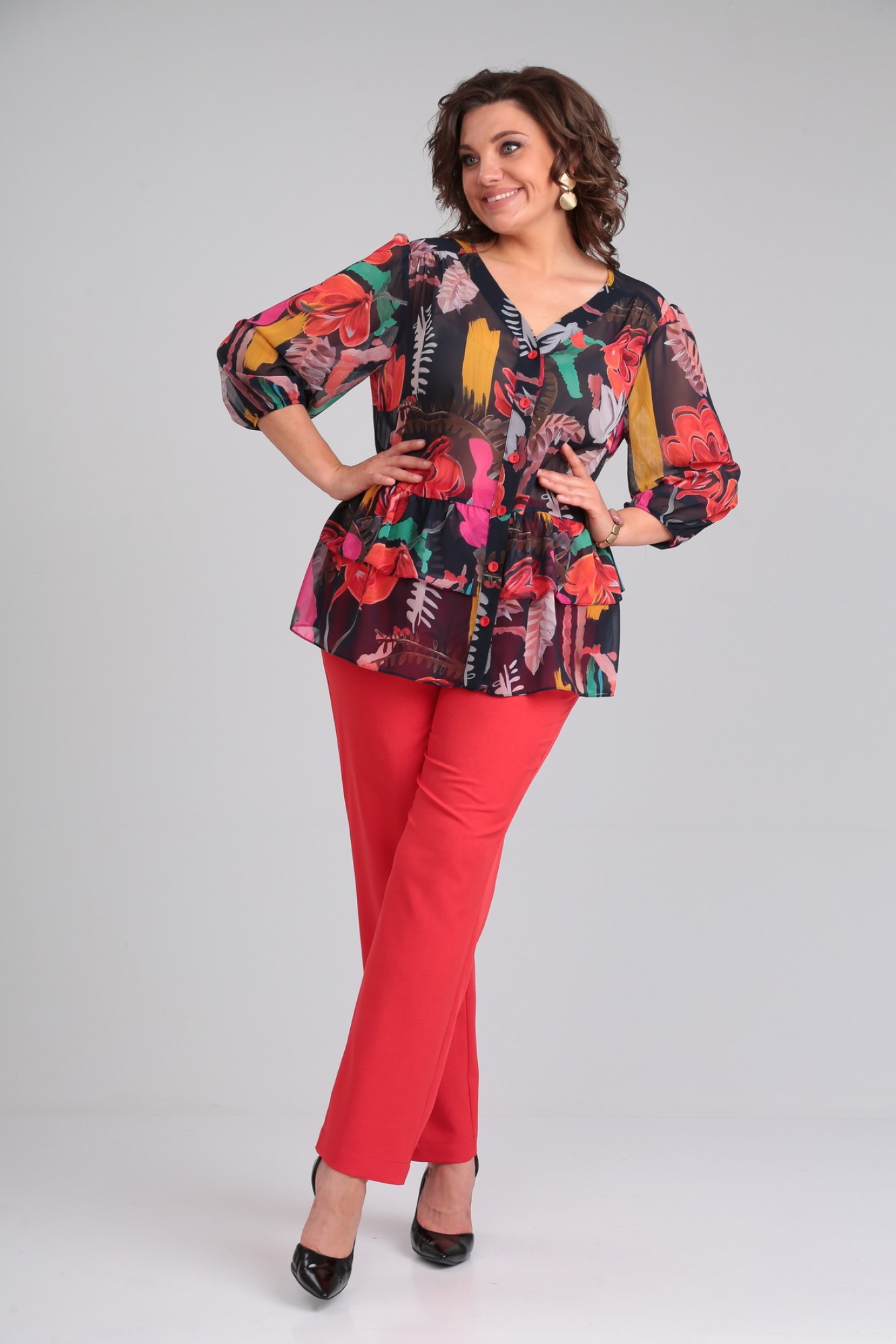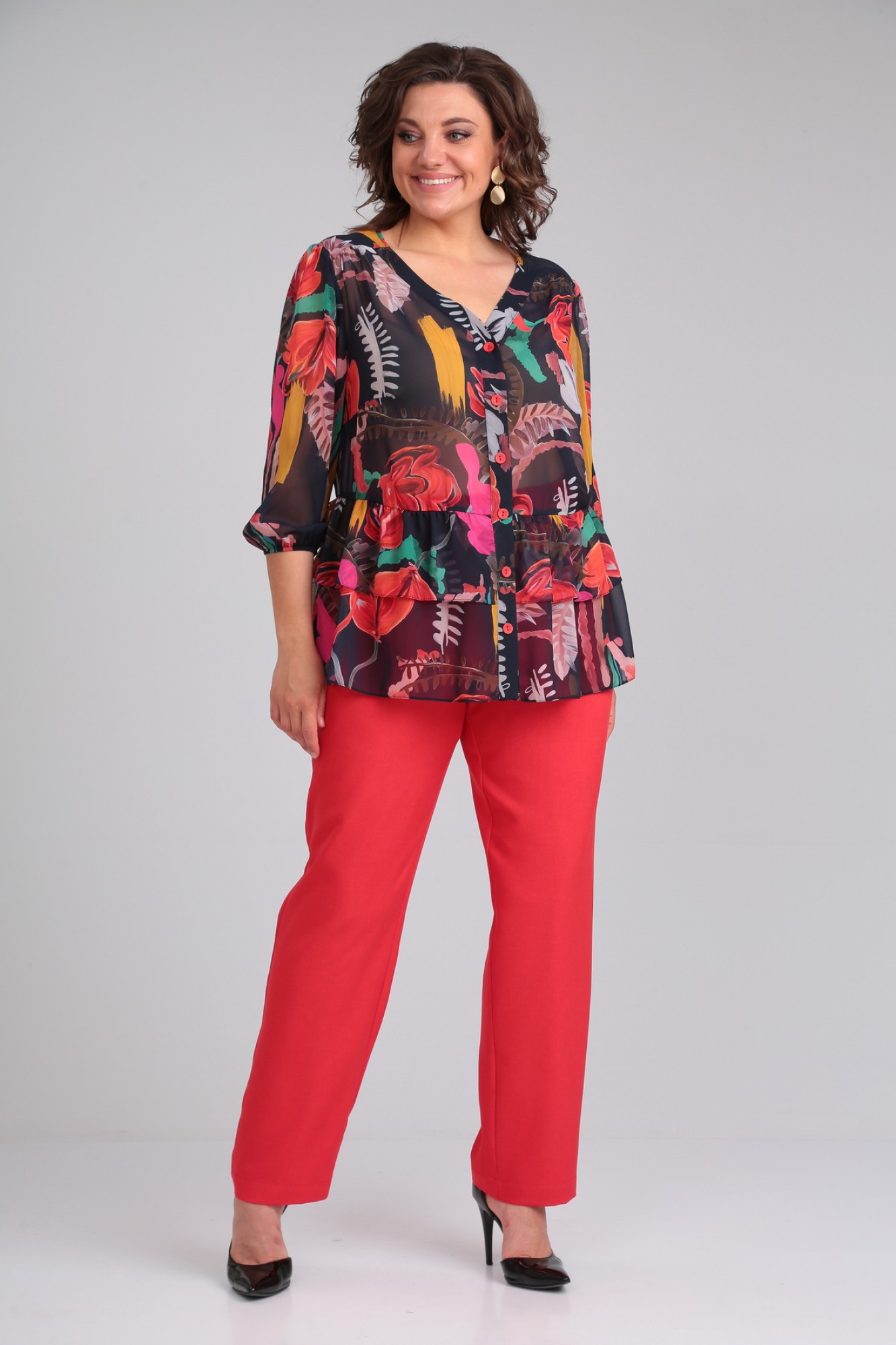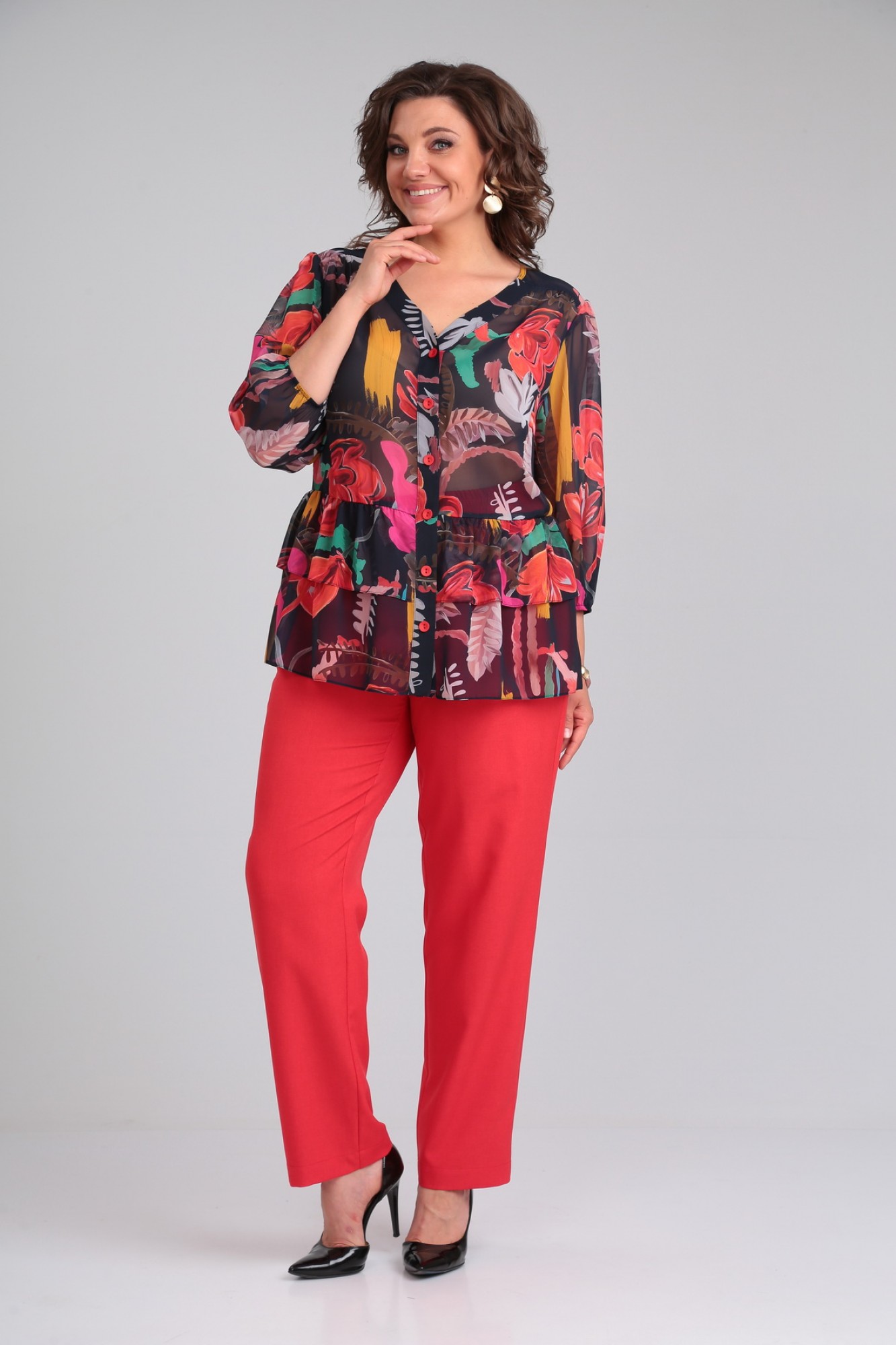 Брючный костюм Мублиз плюс 066 двойка красный, принт с ID товара 443452