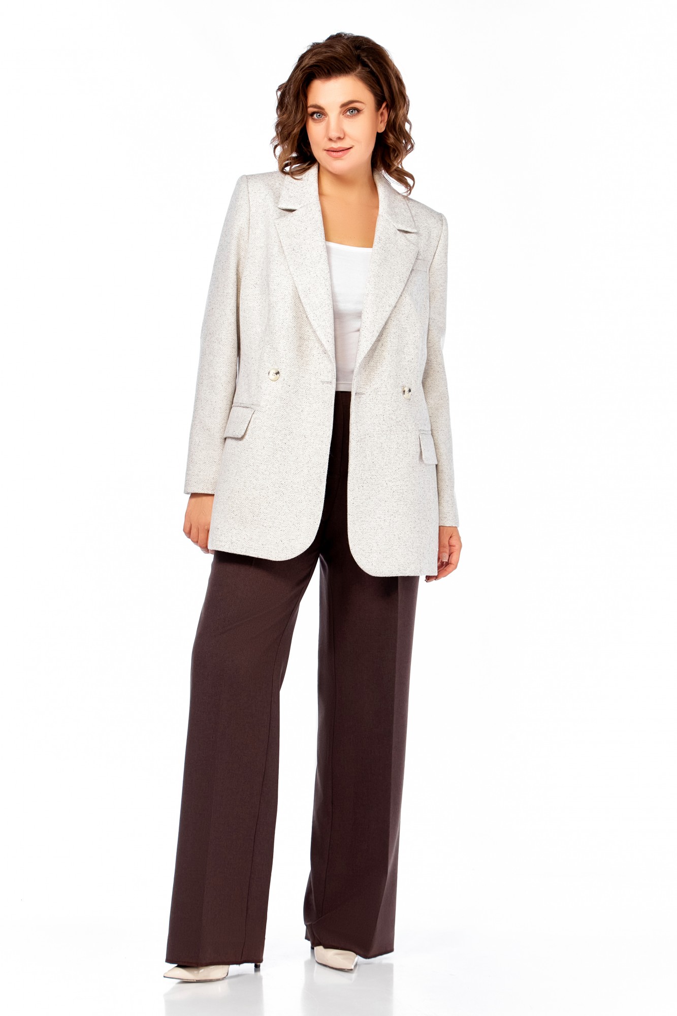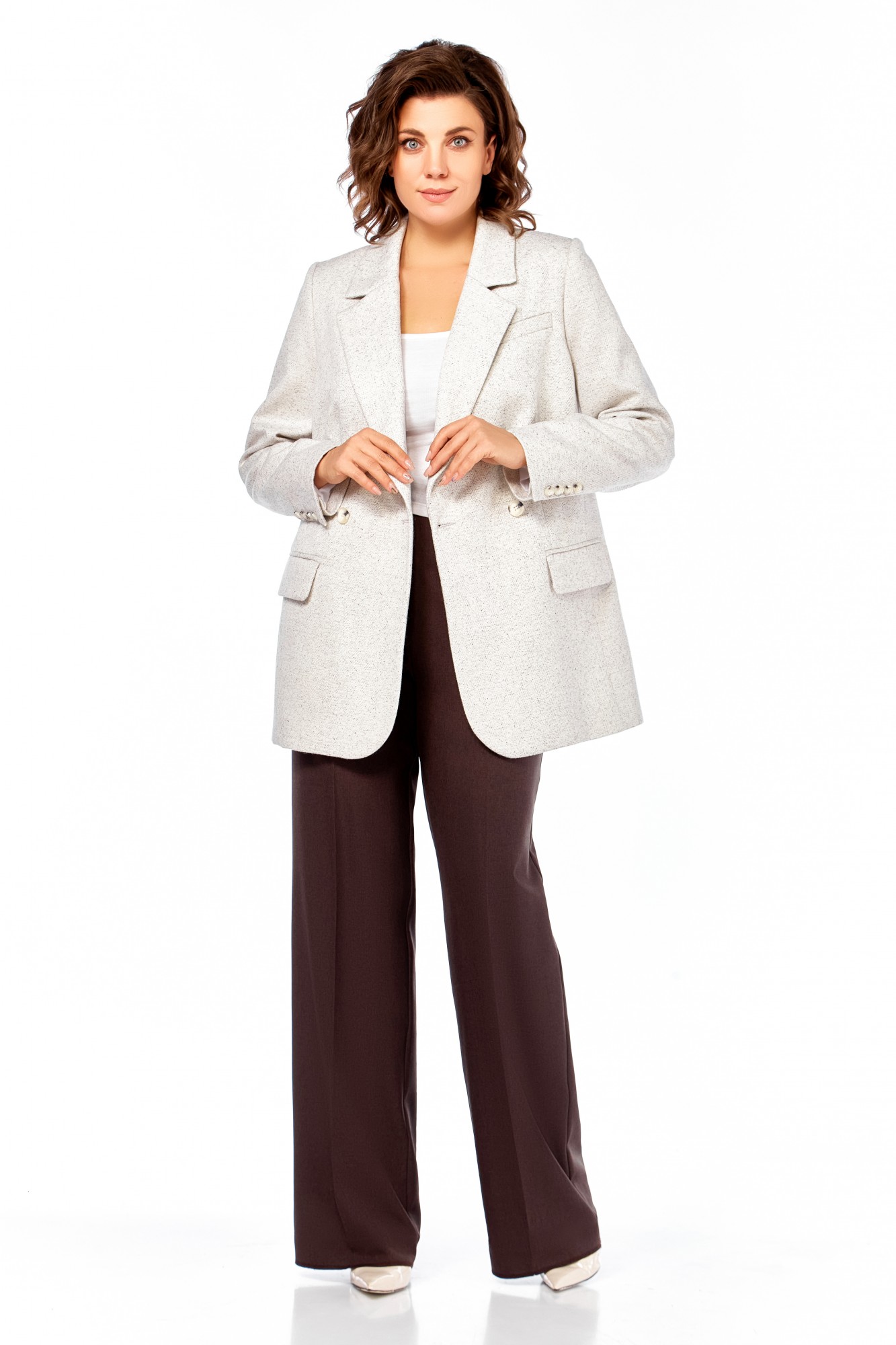 жакет вискоза 50%, ПЭ 46%, спандекс 4%, брюки ПЭ 65%, вискоза 32%, спандекс 3%