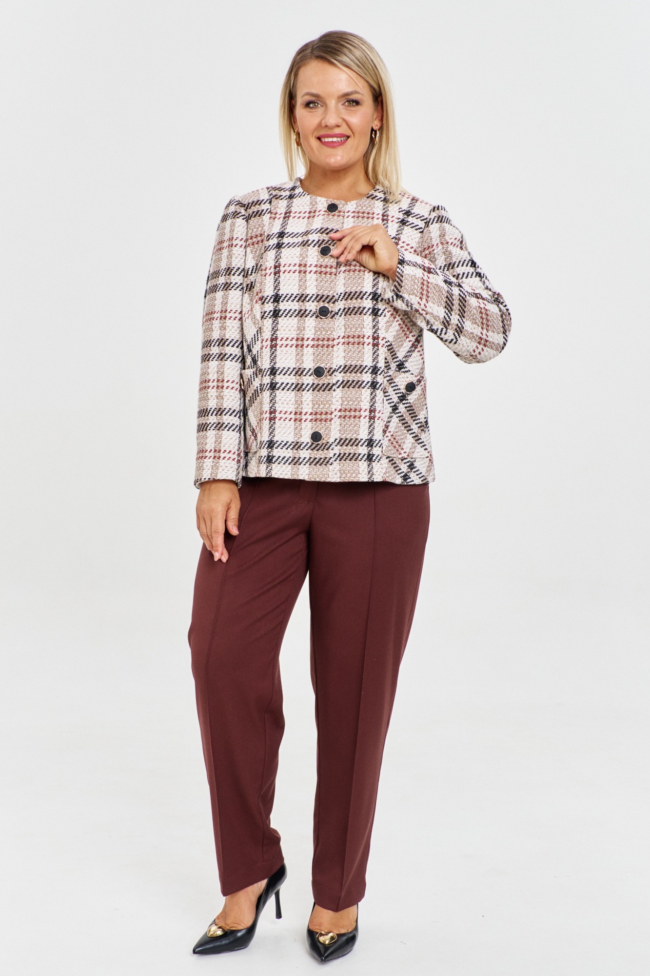 Комплект двойка женский из новой коллекции обрадует Вас посадкой и качеством пошива. Классический жакет а-ля «Шанель» с круглым воротником на подкладке прямого кроя, имеет удобные функциональные карманы с клапанами, что добавляет практичности. Жакет на застёжке на декоративных пуговицах. Рукава жакеты полноразмерные. Брюки с высокой посадкой, частично на резинке, а также центральной застежке на петлю-пуговичку. Брюки заужены к низу, что зрительно вытягивает фигуру и невероятно стройнит. Для удобства и функциональности в боковых швах карманы-«хулиганы». Добавив нарядные аксессуары и туфли Вы будете королевой на любом мероприятии.
