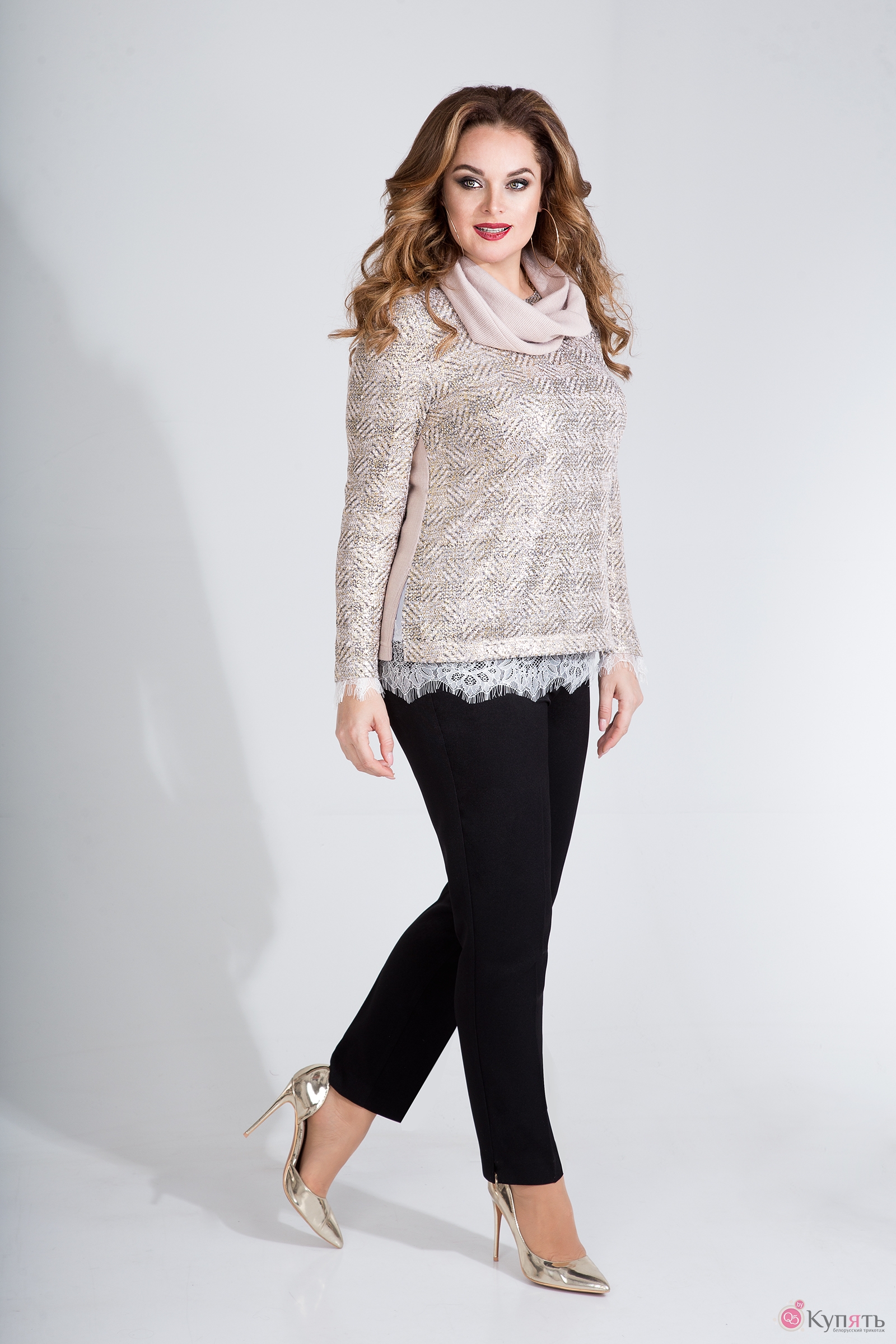 джемпер - вискоза 70%, полиэстер 30%; брюки - хлопок 70%, полиэстер 30%