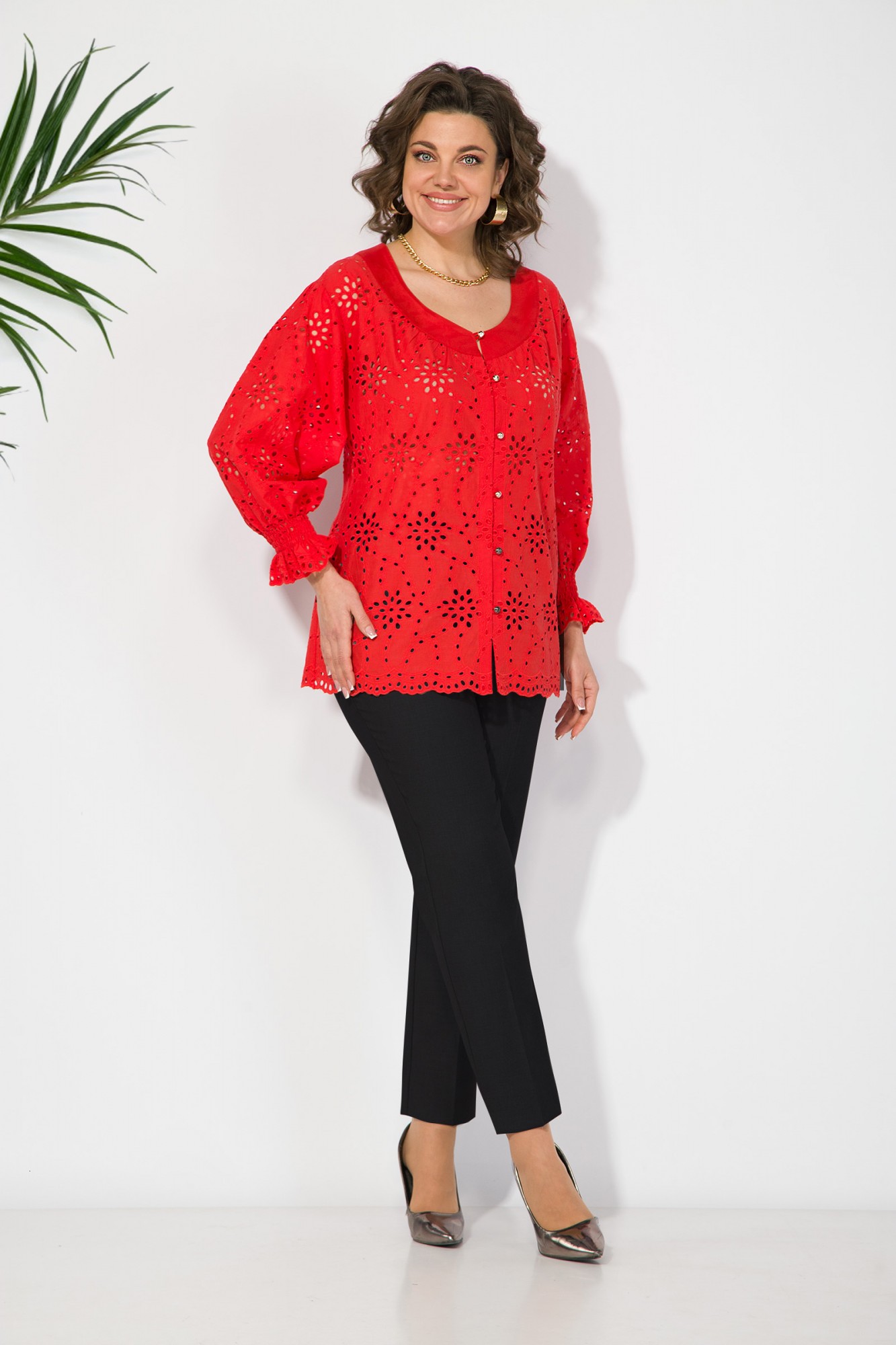 Легкая, романтическая женская блузка, выполнена из роскошного хлопкового ришелье! Модель свободного силуэта, со спущенной линией плеча. Эффектный рукав, длиной ¾-ти оформлен манжетам на резинку. Округлый вырез горловины оформлен планками. Застежка в модели центральная, на навесные петли и пуговицы. Спинка без особенностей! Блузка из хлопка – отличный вариант для лета и отпуска. В ней можно пойти на свидание, вечеринку или на работу. Блузка хорошо сочетается как с кэжуал брюками, так и с классическими моделями брюк от бренда - ЛИЛИАНА! Изящные туфли или босоножки на каблуке дополнят сочетание.