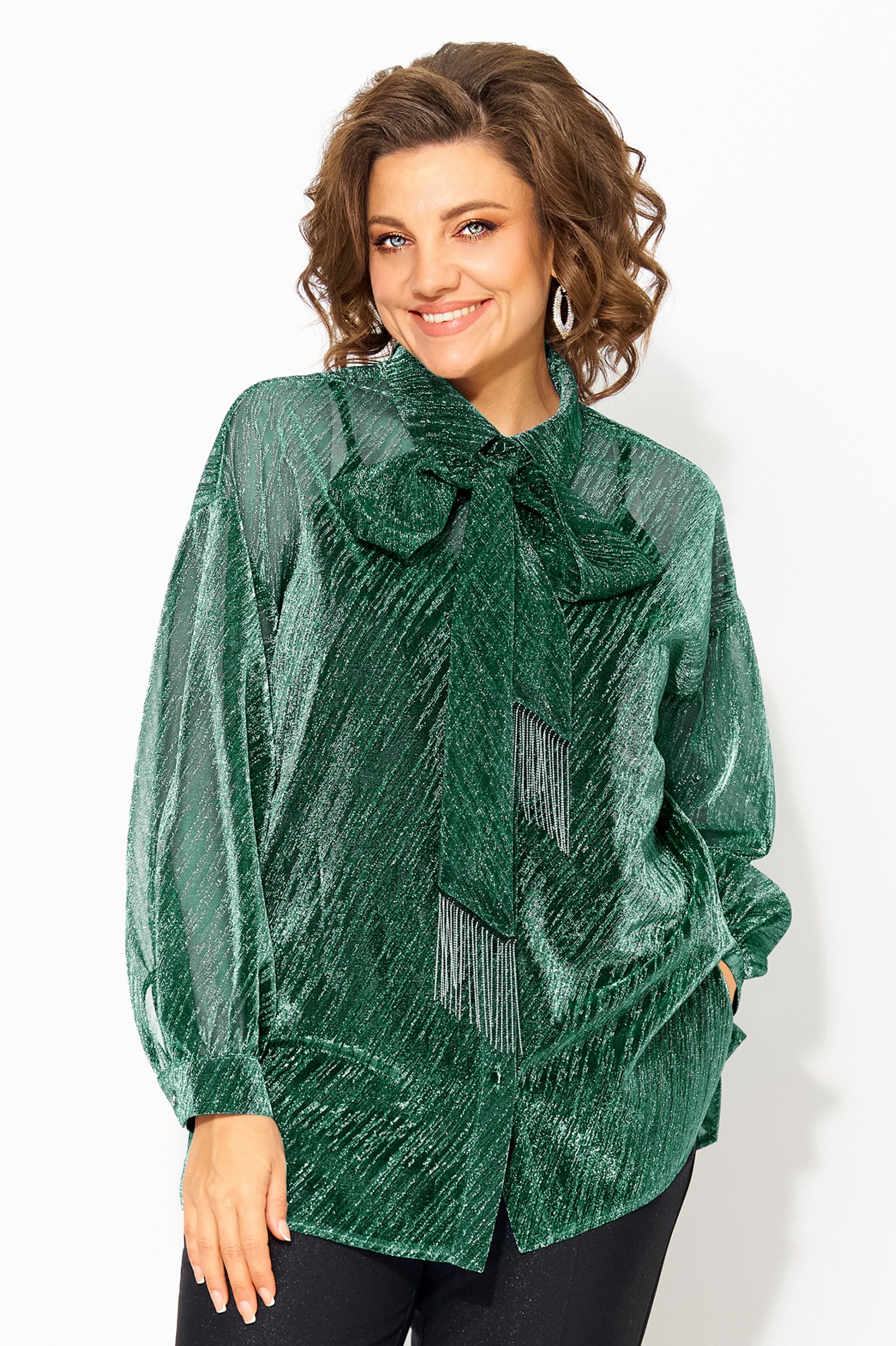 Трендовая блузка из легкой сетчатой ткани c эффектом мерцания станет стильным дополнением вашего гардероба. Ее можно комбинировать с различными элементами гардероба, накинуть поверх платья или топа. Модель выполнена с воротником-стойкой, который добавляет элегантности образу. Застежка центральная на петли и пуговицы. По бокам расположены разрезы. Свободный крой обеспечивает комфорт и подчеркивает женственность. Длинный рукав с манжетами делает ее универсальной для любого сезона, а удлиненный силуэт добавляет изысканности. В комплект входит съёмный пояс с декоративной бахромой, который может служить в виде шарфика и добавить элегантность образу. Изделие идеально подходит для повседневного ношения, офиса или вечернего выхода. Отлично сочетается с базовыми браками из коллекции от бренда «Лилиана». Брюки классического покроя, средней посадки с боковыми карманами. Пояс притачной, в боковых участках вставлена резинка. Застежка: брючная тесьма-молния с обработанным гульфиком. В брюках заутюжены канты.