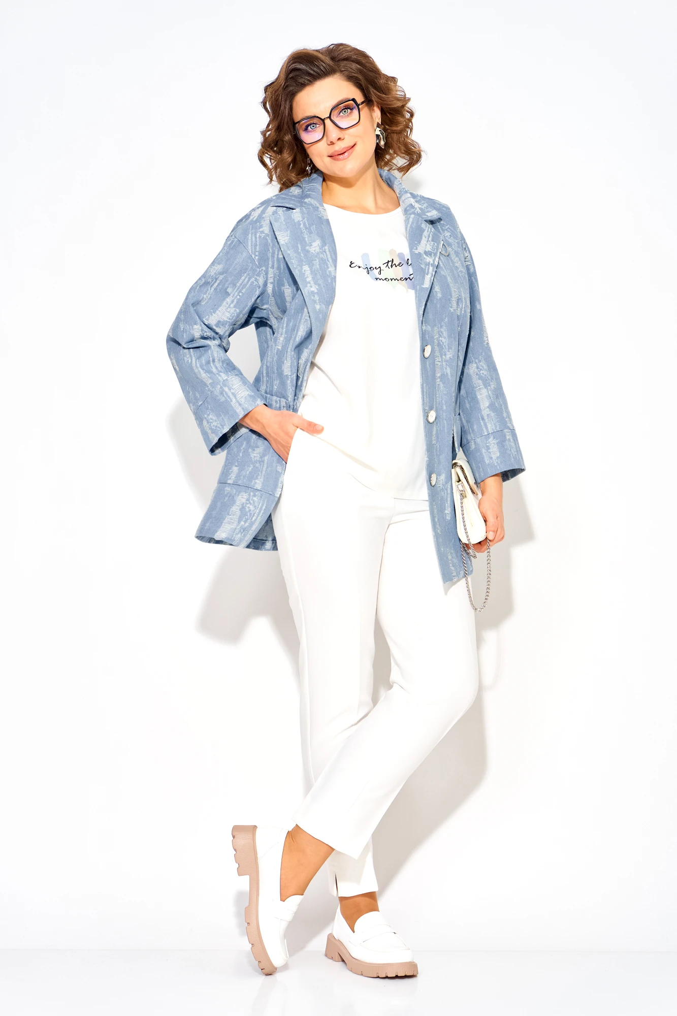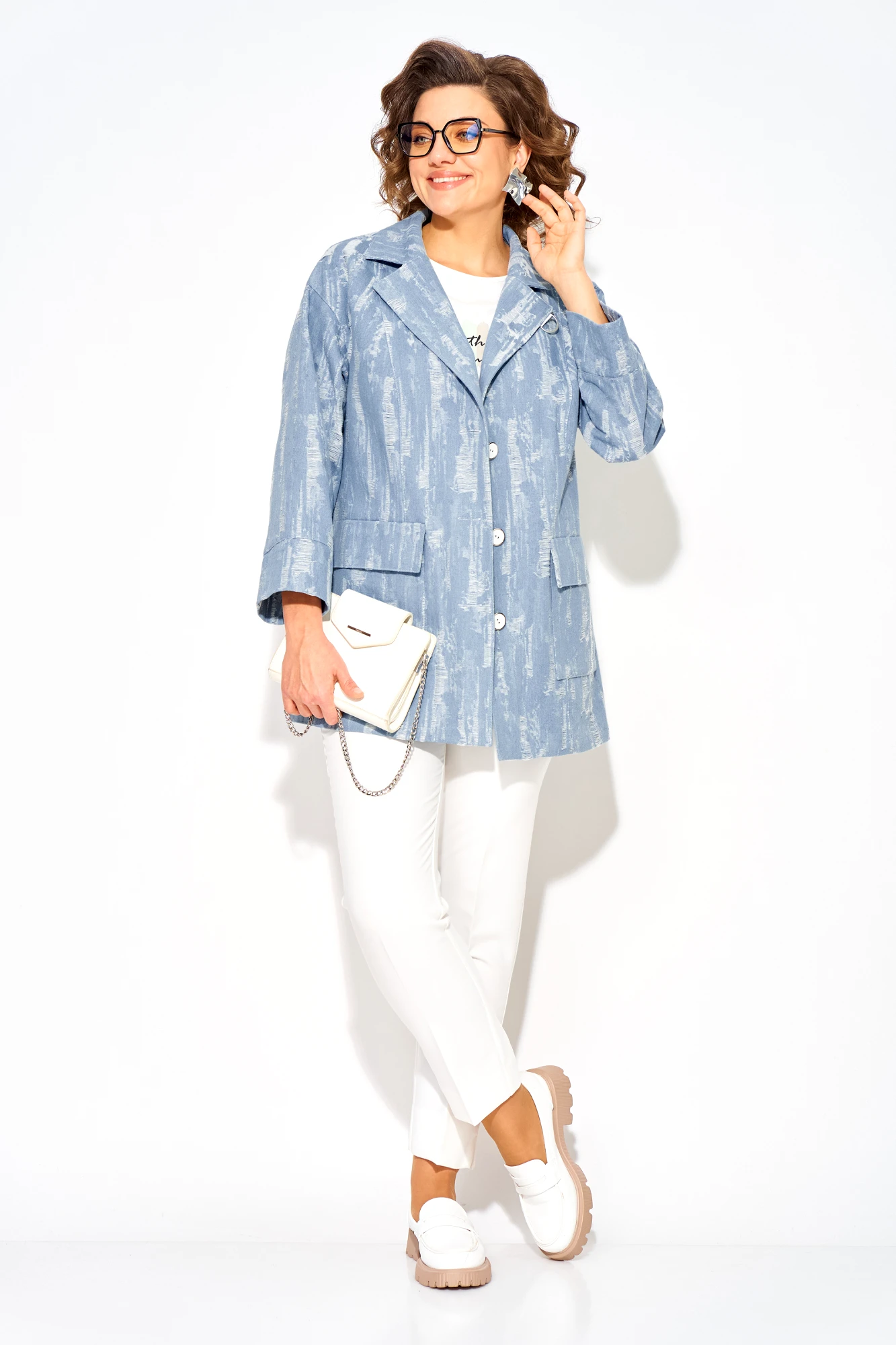 Брючный костюм LILIANA М1505 БрЛ джинс, белый