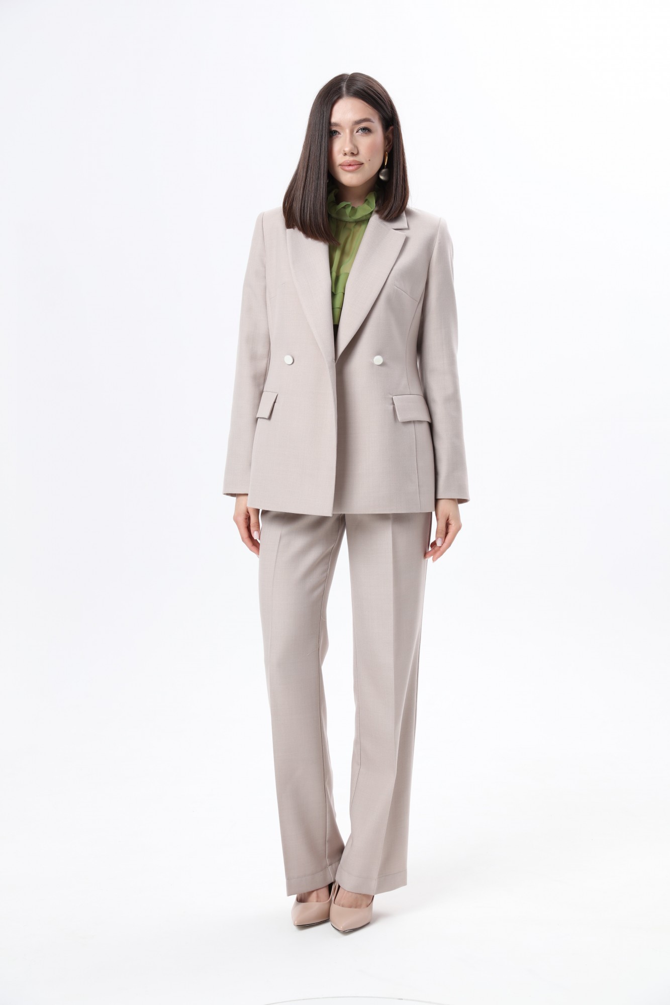 Брючный костюм LM К6667-34 тройка Бежевый, салатовый
