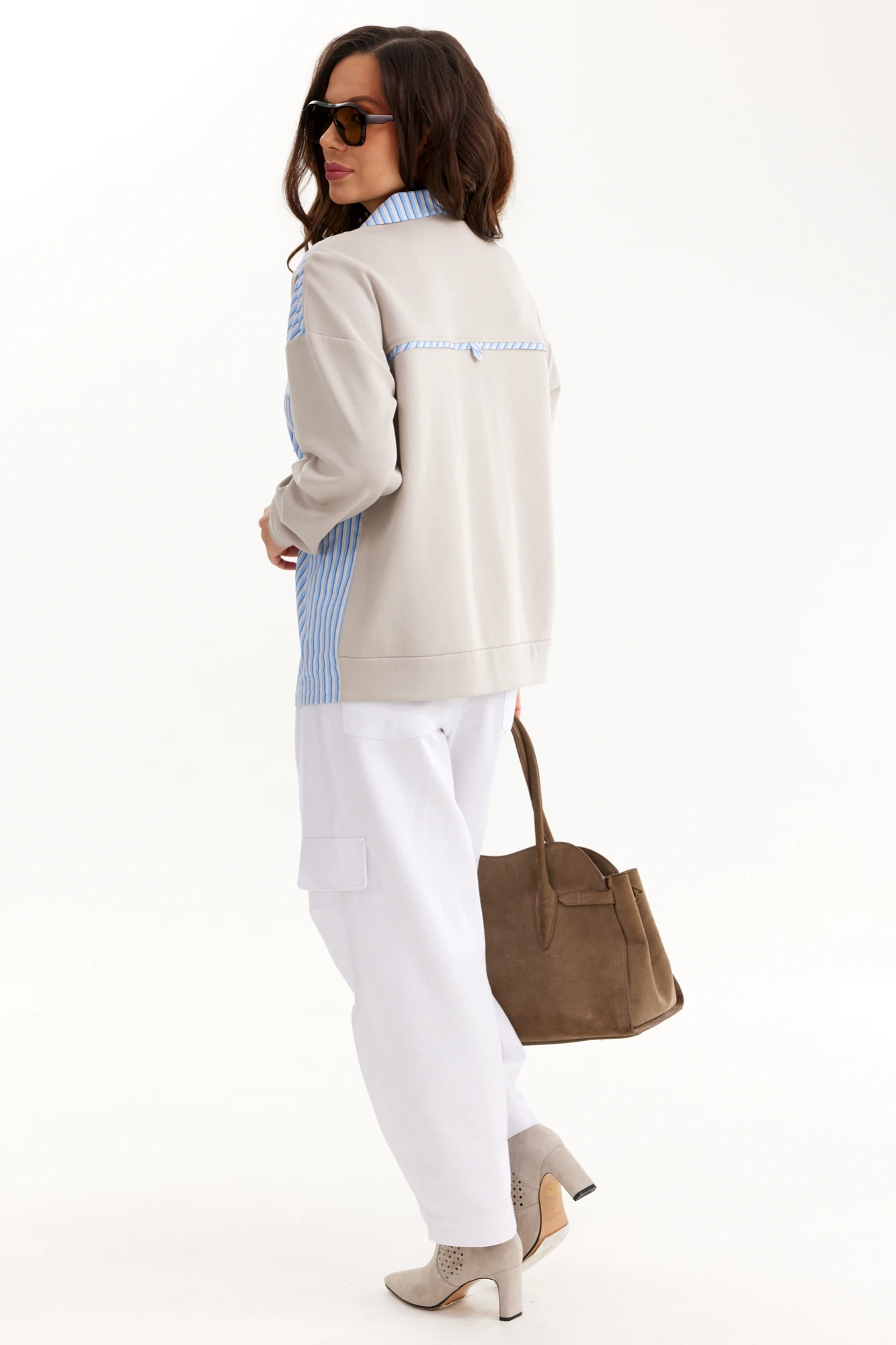 Брючный костюм Магия Моды 2693 двойка голубой, белый
