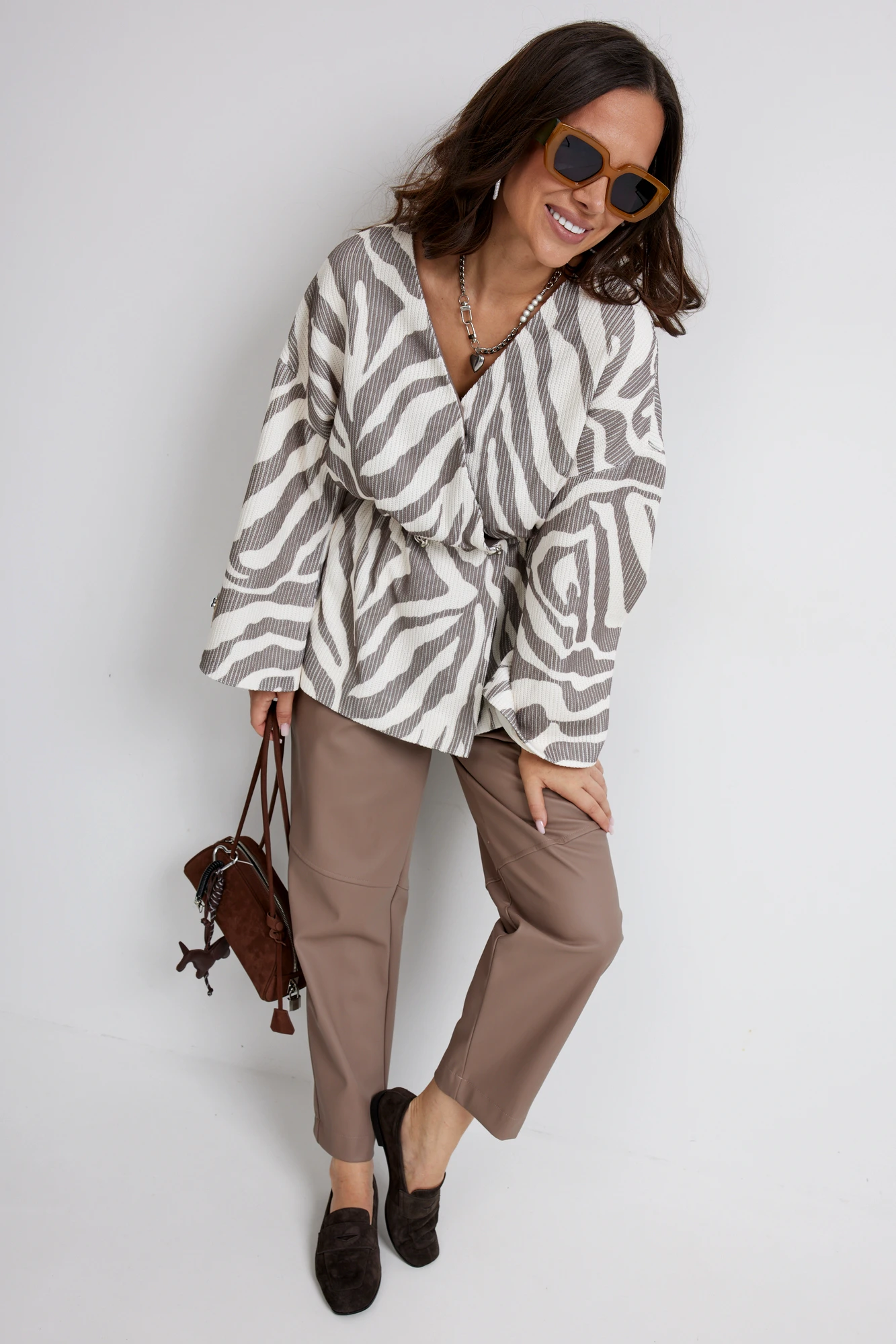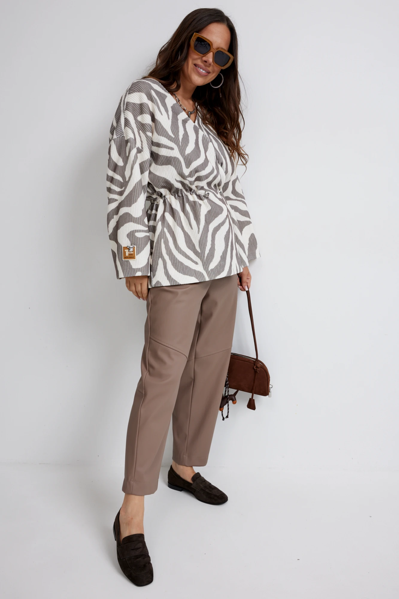 Брючный костюм Магия Моды 2698 двойка коричневый, молочный