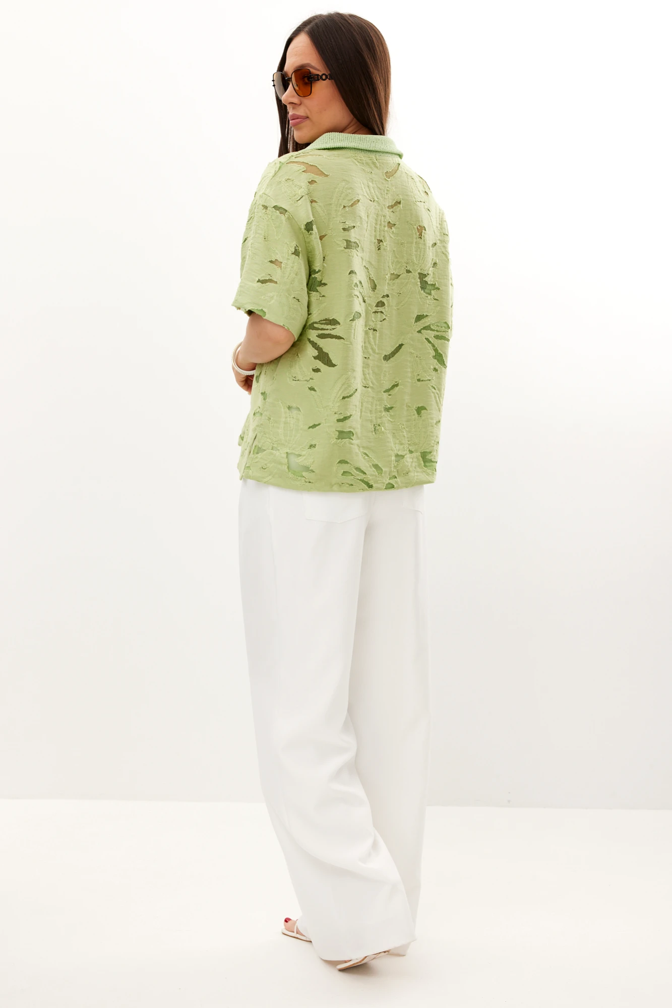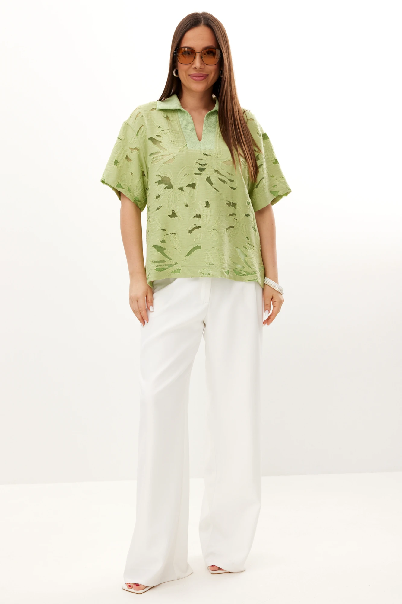 Брючный костюм Магия Моды 2729 двойка фисташковый, белый