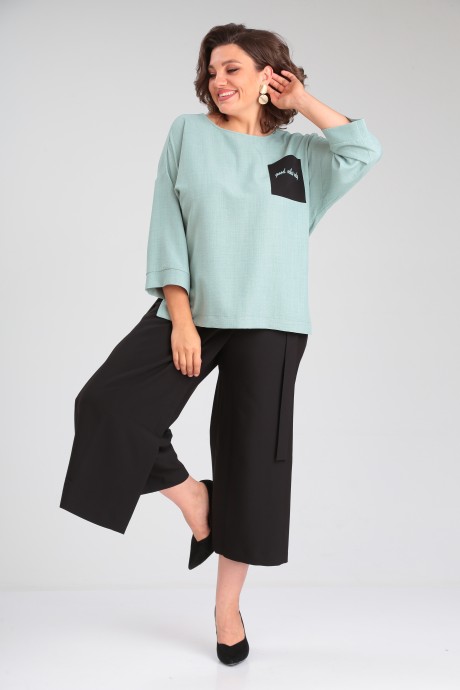 Брючный костюм Michel Chic 1349 мятный, чёрный