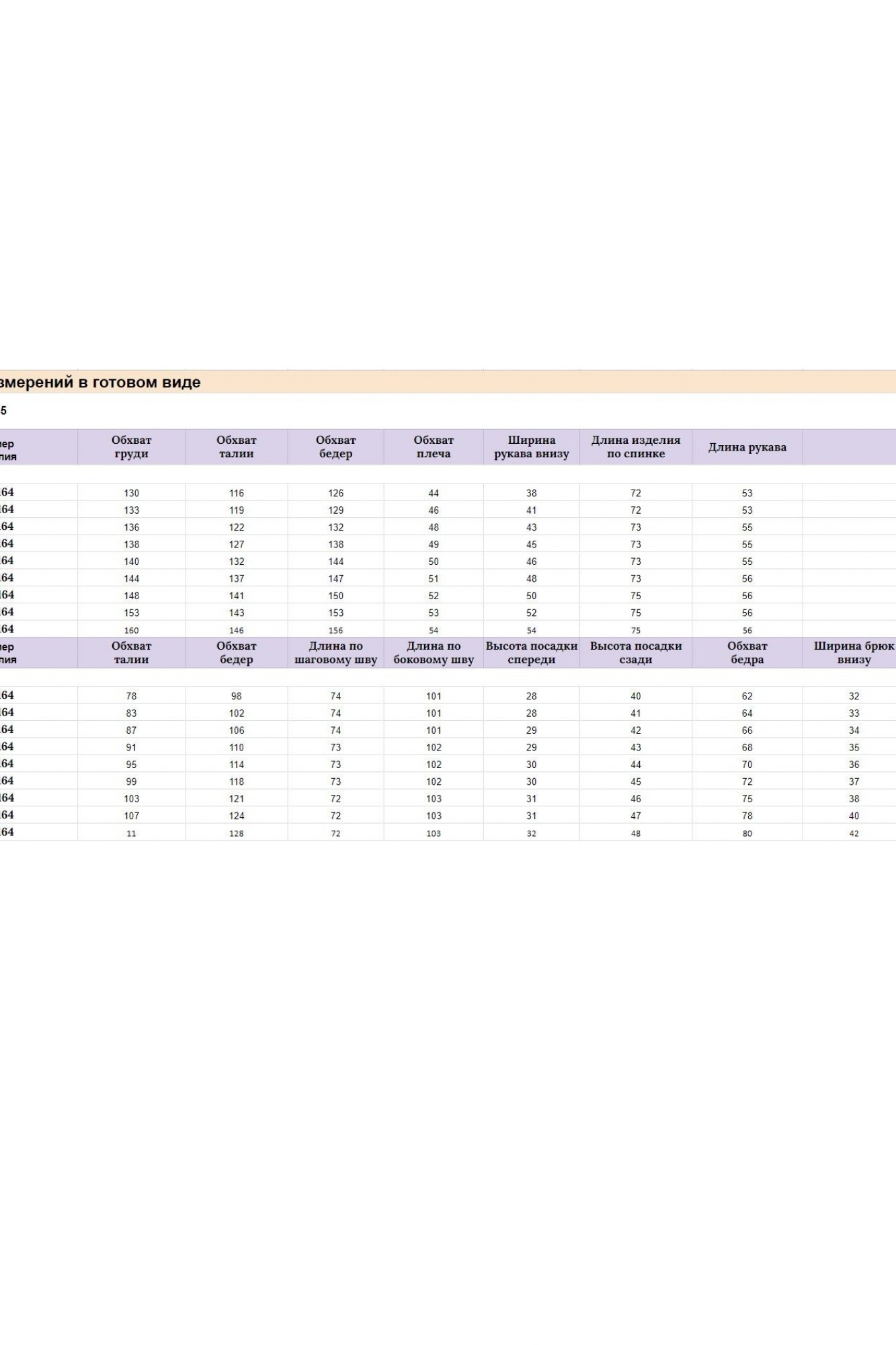 Длина блузы по спинке 74 (+/- 1 см), длина рукава от горловины 55 (+/- 1 см). Длина брюк по боковому шву 100 см (±1 см), длина брюк по шаговому шву 72 +-1 см. Изделие подойдет на рост 170 см.