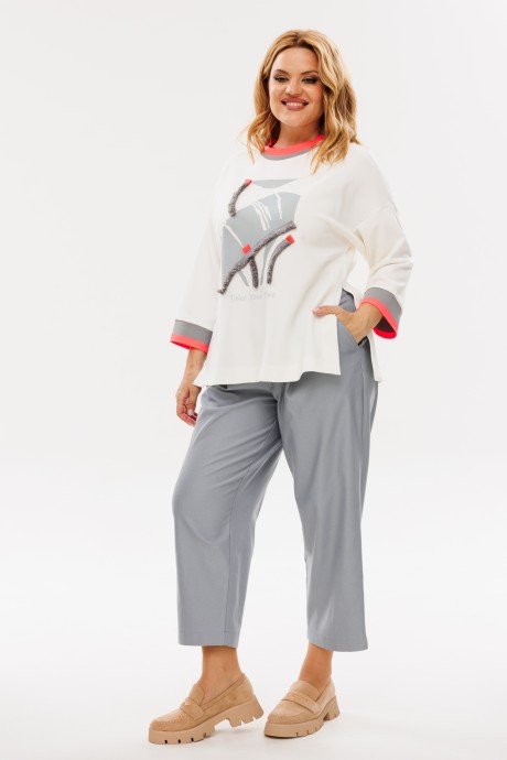 Брючный костюм Michel Chic 1389 двойка серый, молоко