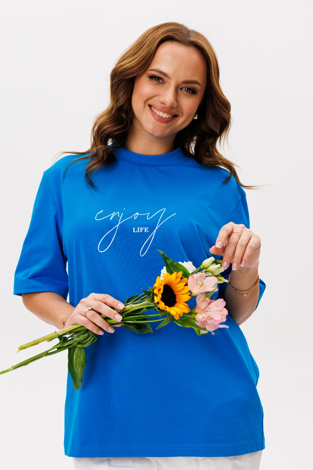 Комплект женский брючный, модный и яркий, спортивного типа станет для вас незаменимым в весенне-летний период, благодаря своей универсальности и практичности. Футболка прямого, свободного кроя, горловина круглая, рукав 3/4. По переду футболки в качестве декора — принт. Брюки-бананы 7/8 , на поясе с резинкой, по боковым швам с двумя накладными карманами и двумя клапанами чуть ниже колена. По низу брюки стянуты на тонкую резинку с фиксатором.