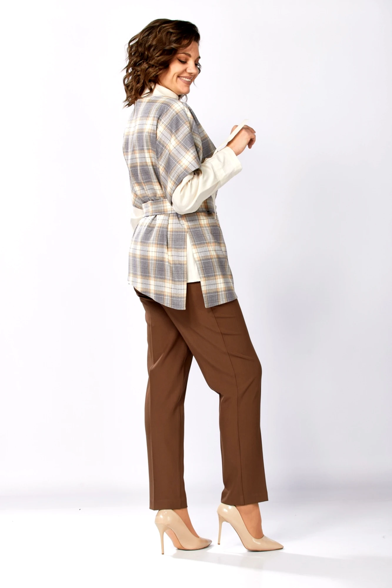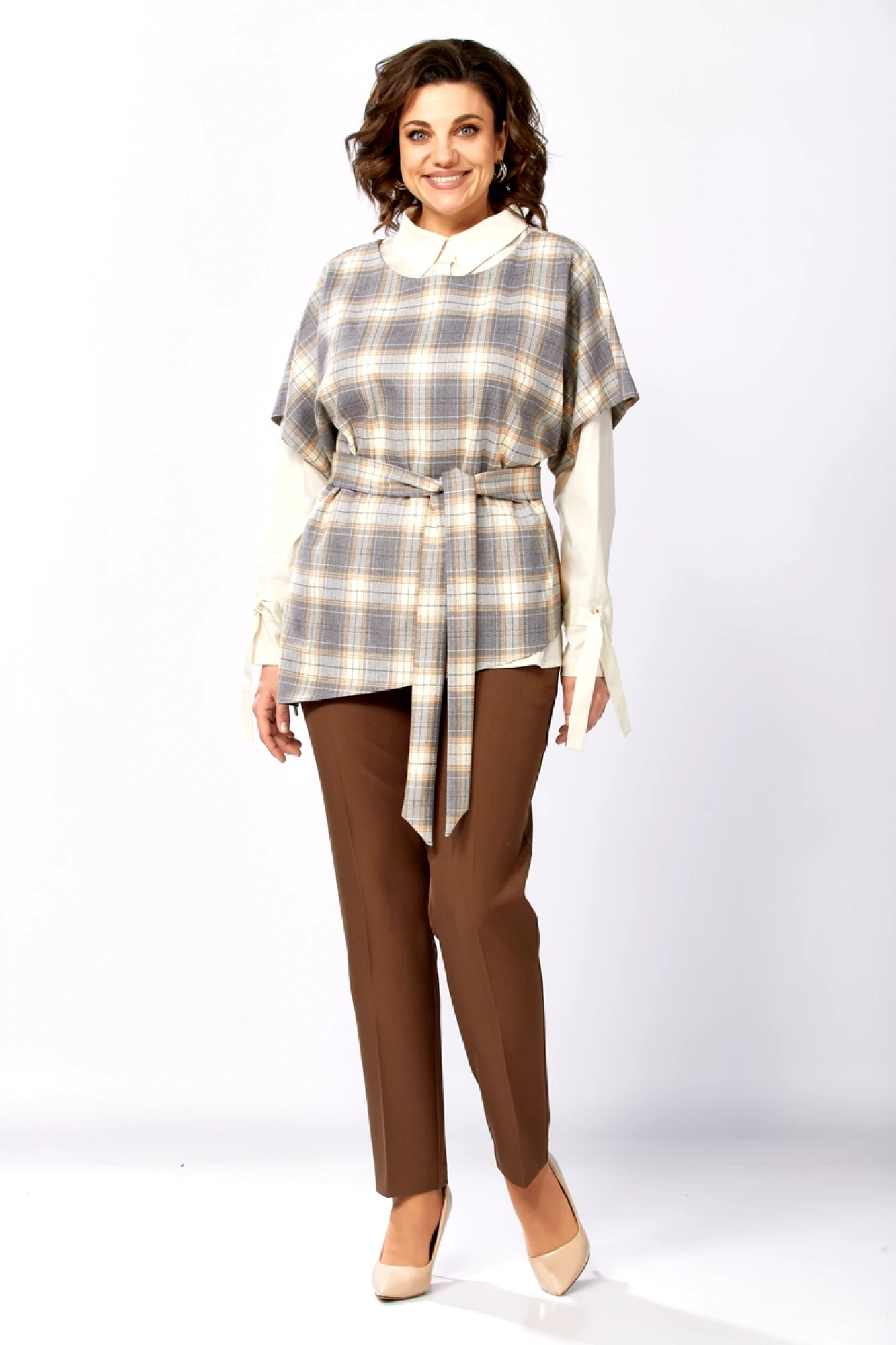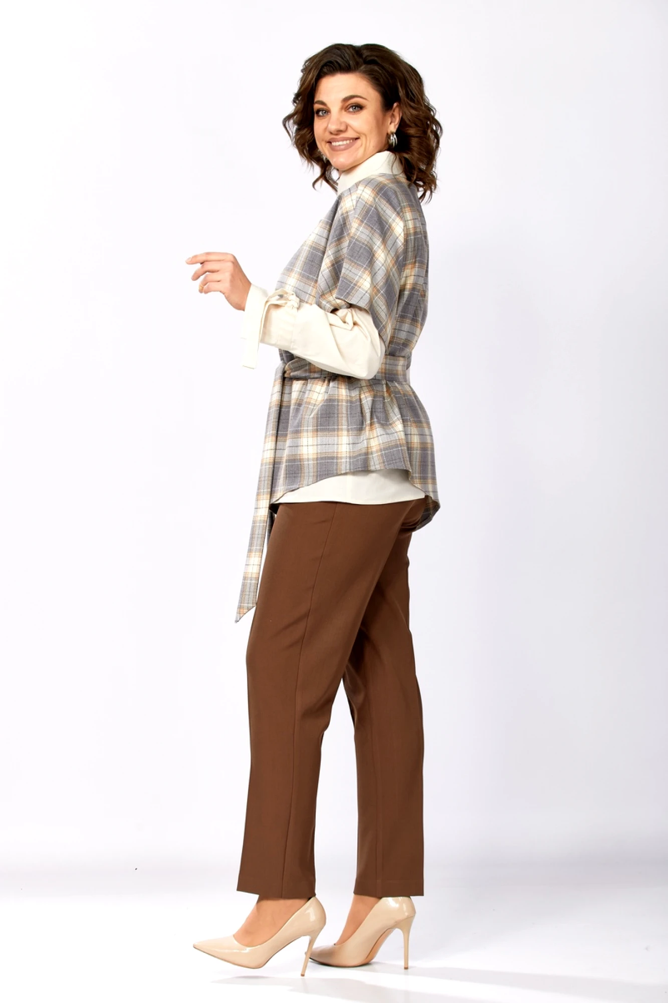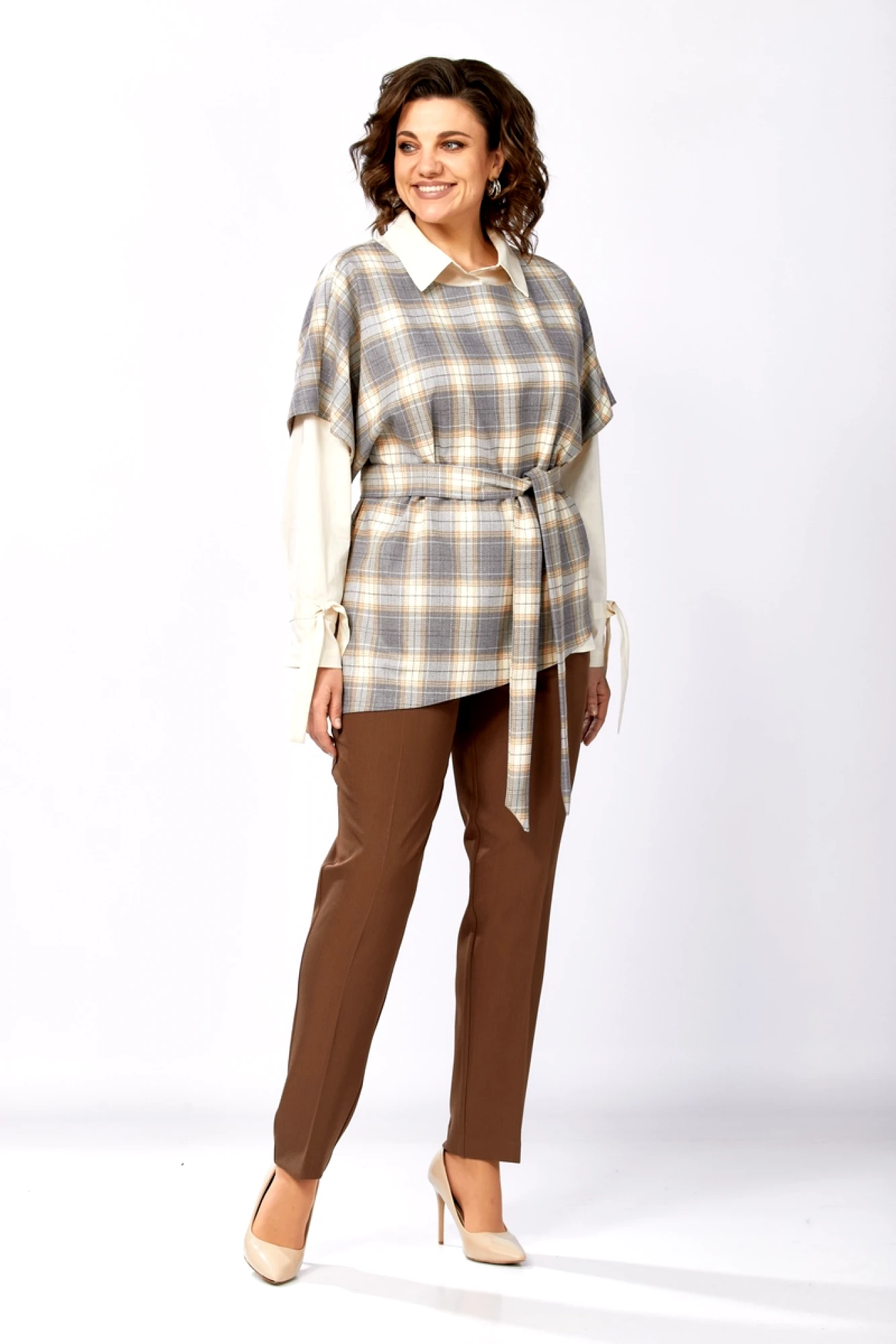 Брючный костюм Милора Стиль 1388 тройка серый, шоколад