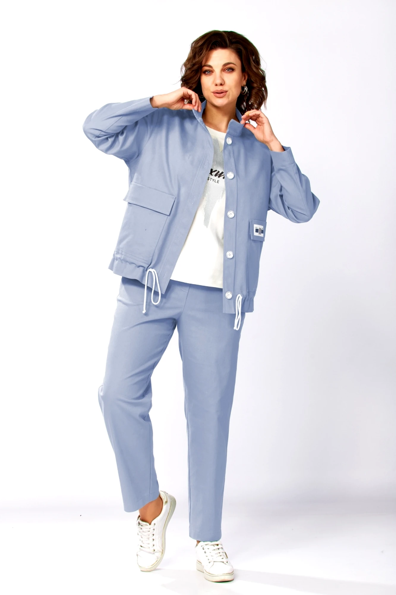 Брючный костюм Милора Стиль 1444 тройка голубой