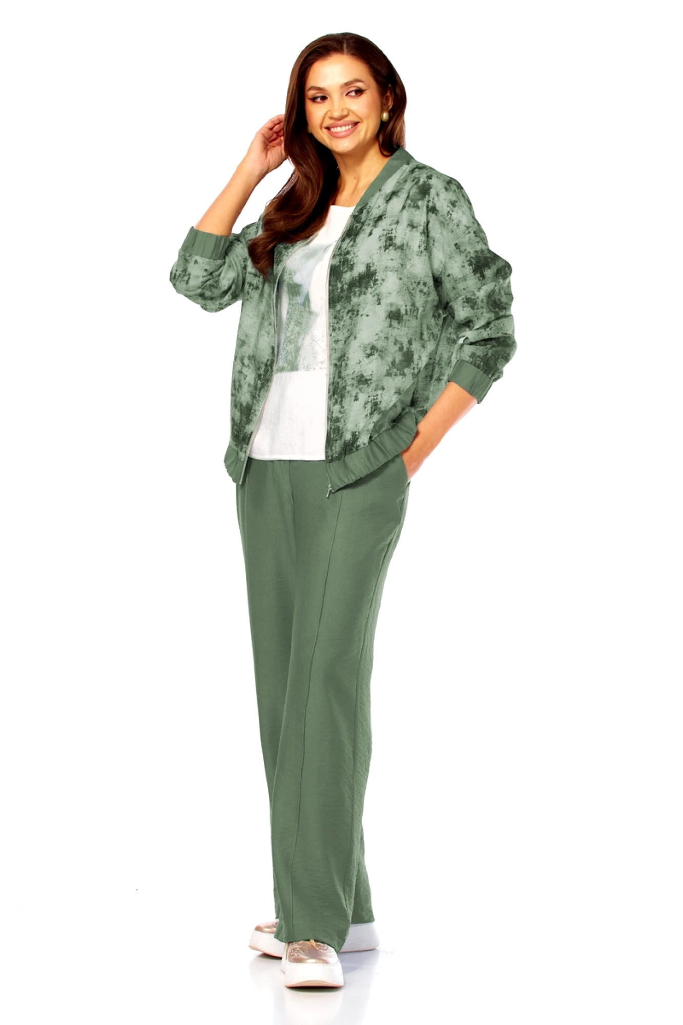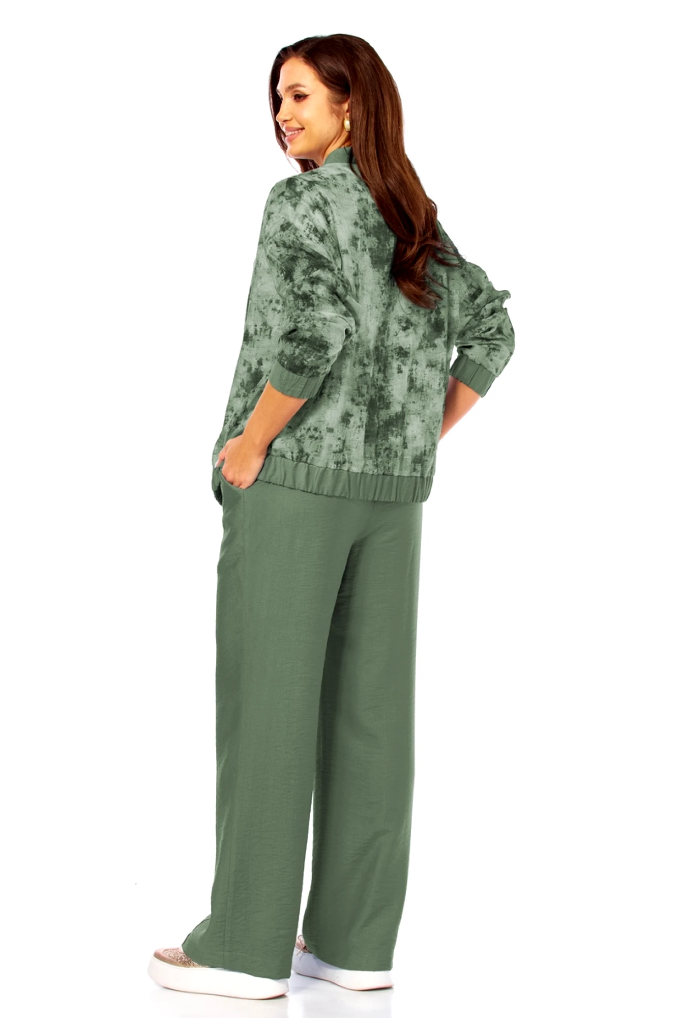 Брючный костюм Милора Стиль 1454 тройка зеленый