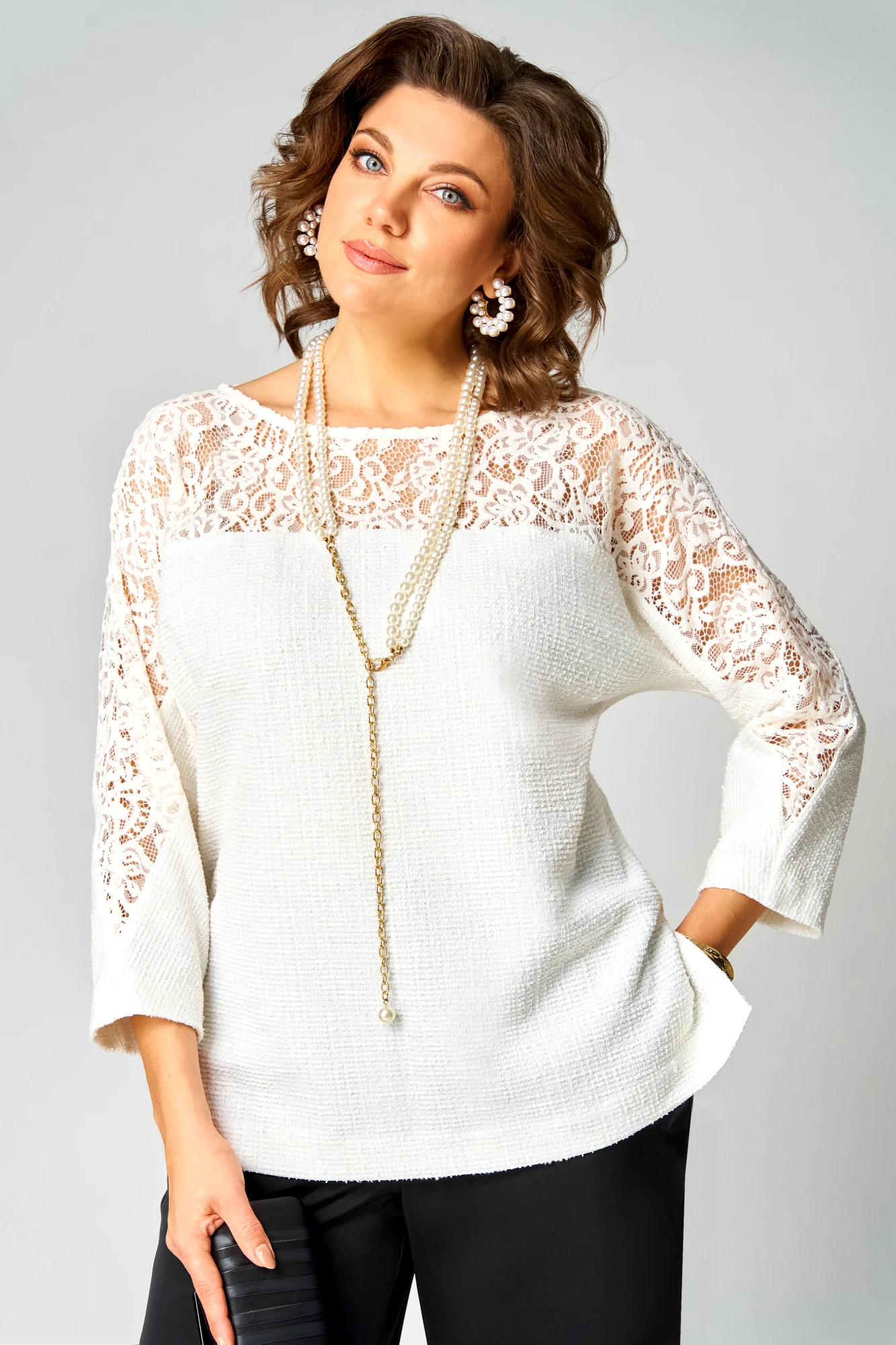 Брючный костюм Мишель Стиль 1335 бело-черный