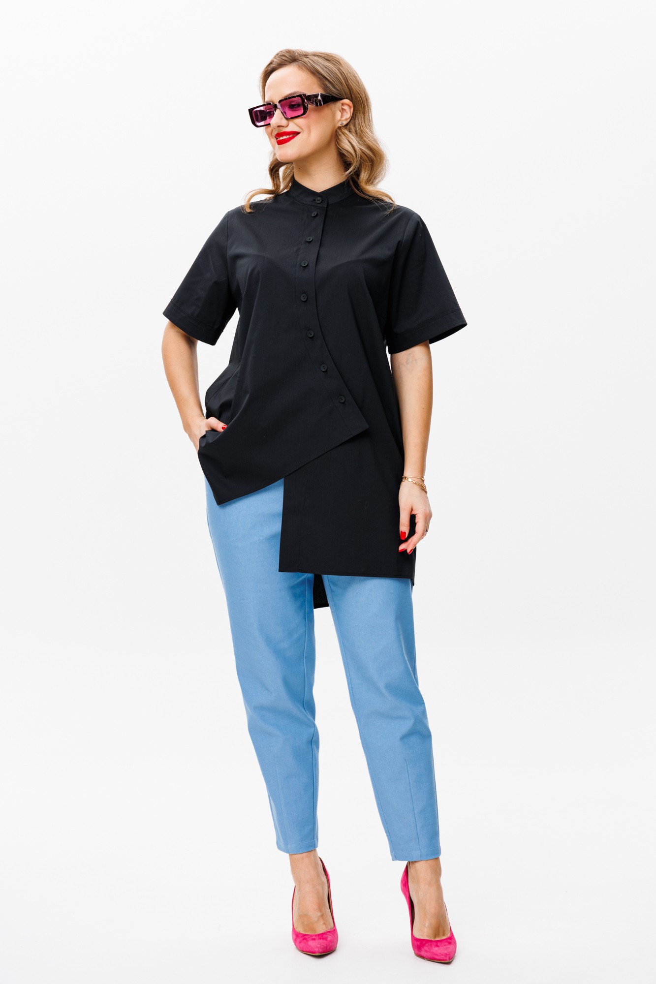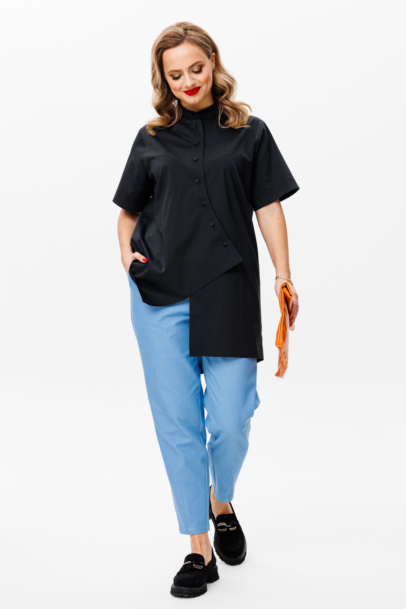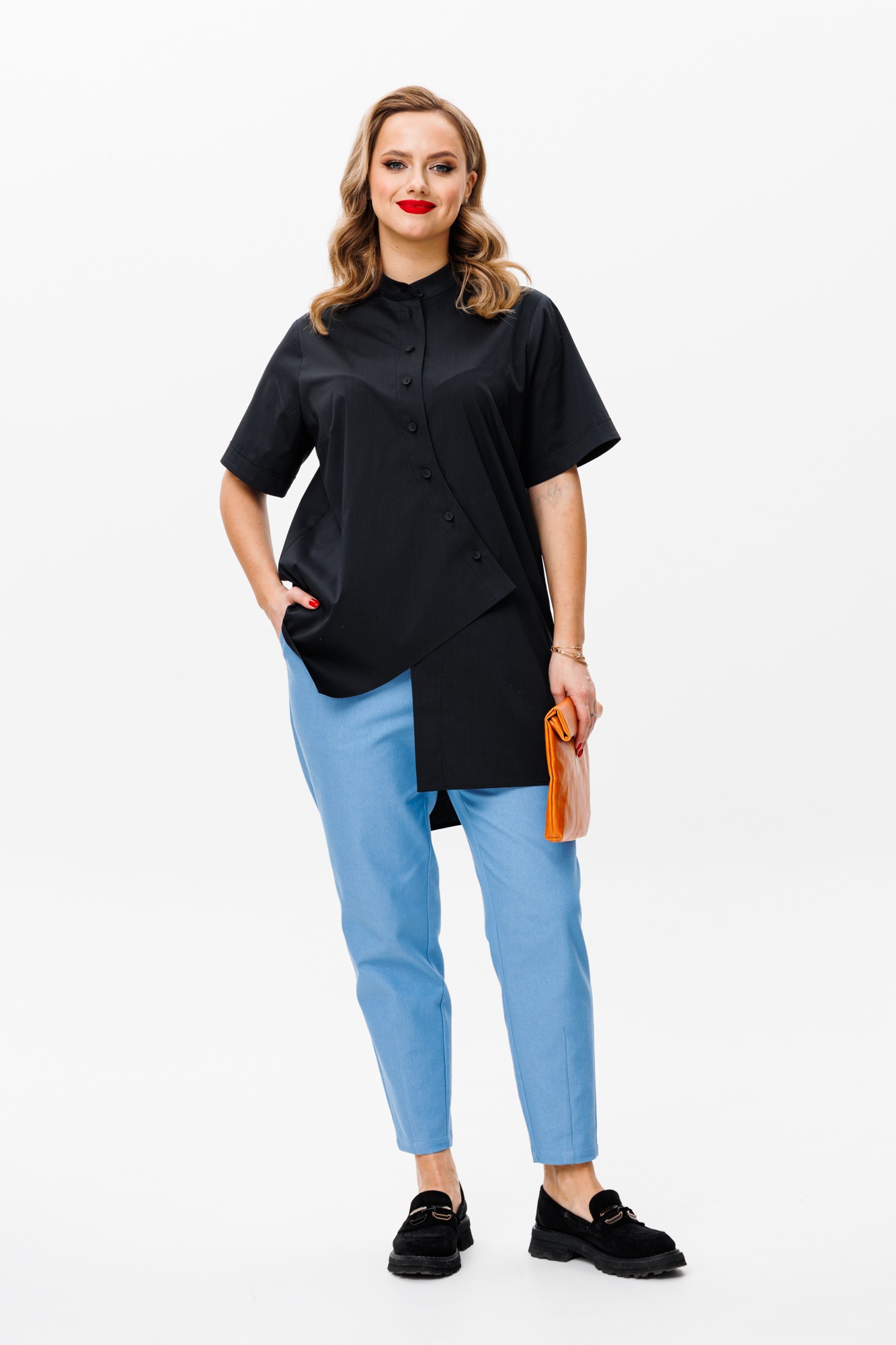 Брючный костюм Мублиз плюс 157 черный, голубой