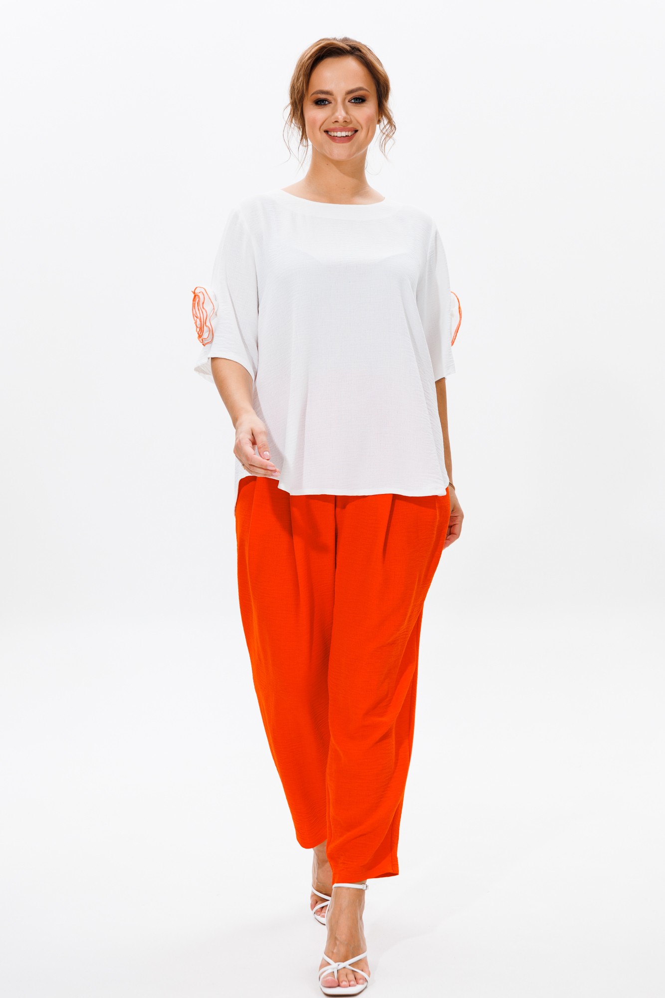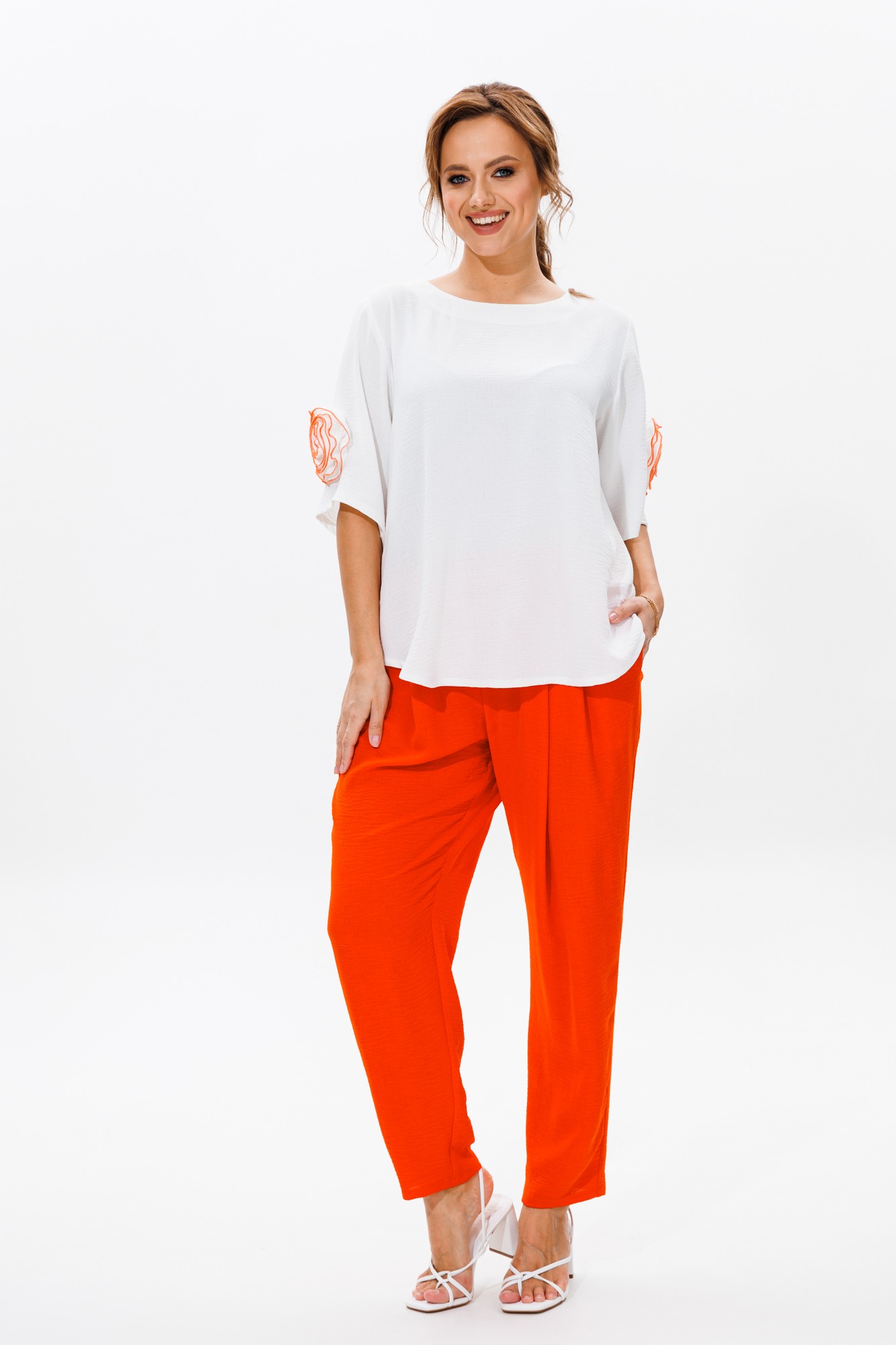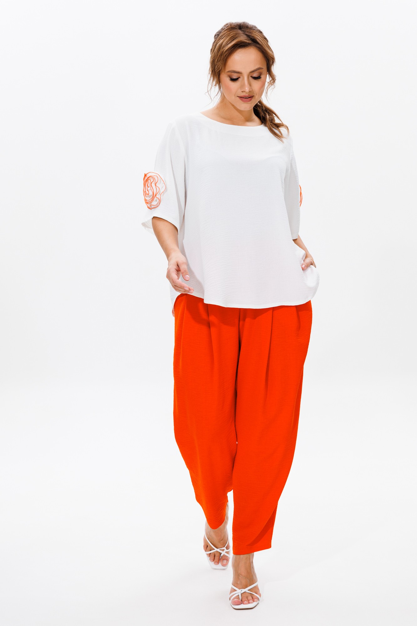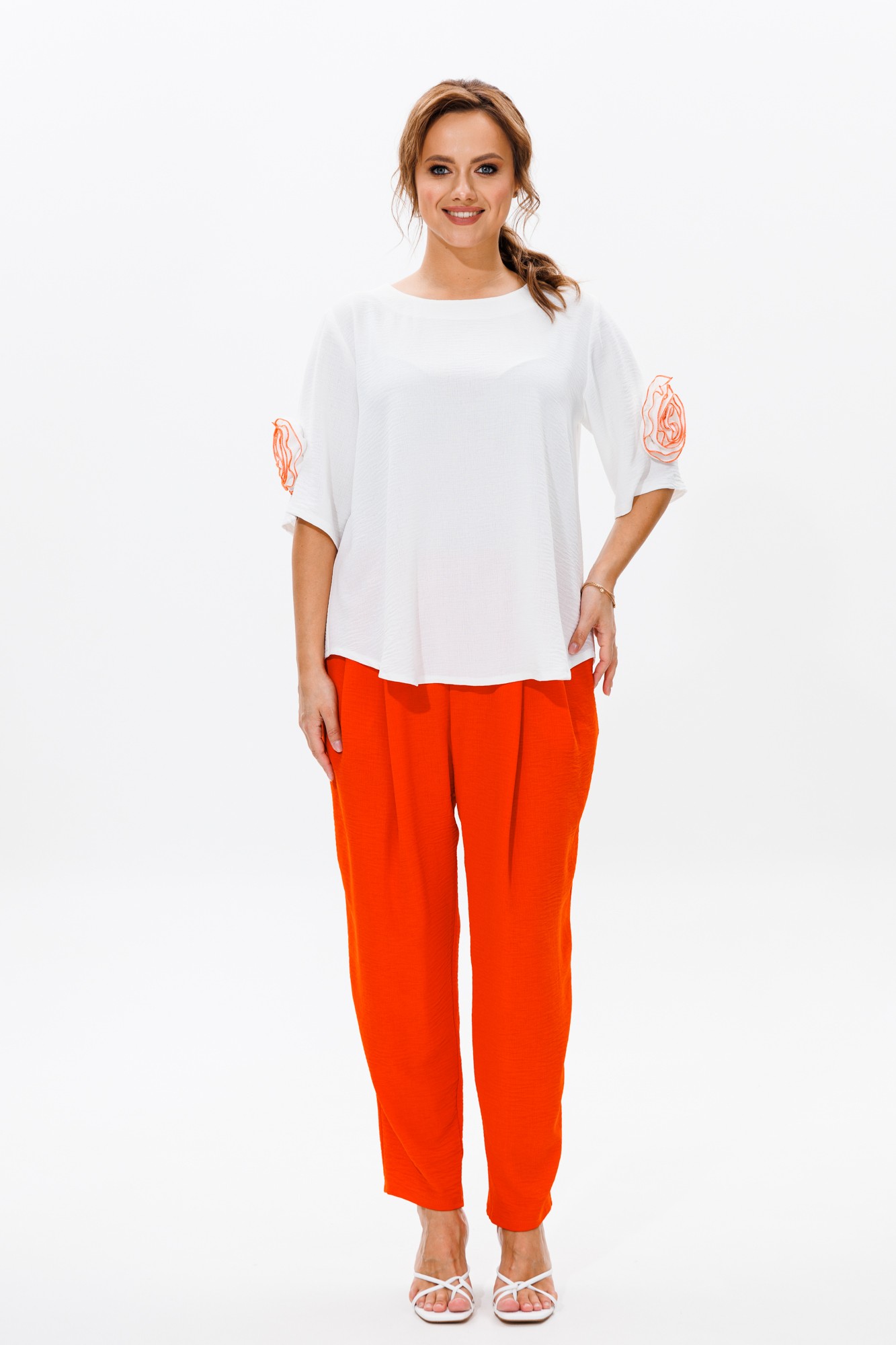 Брючный костюм Мублиз плюс 181 двойка белый, оранжевый с ID товара 395955