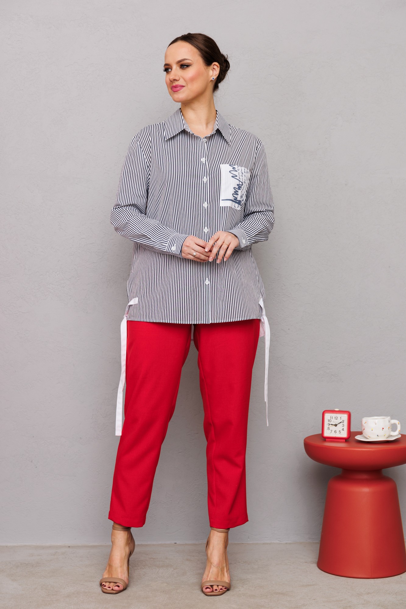 Брючный костюм Мублиз плюс 222 красный, полоска