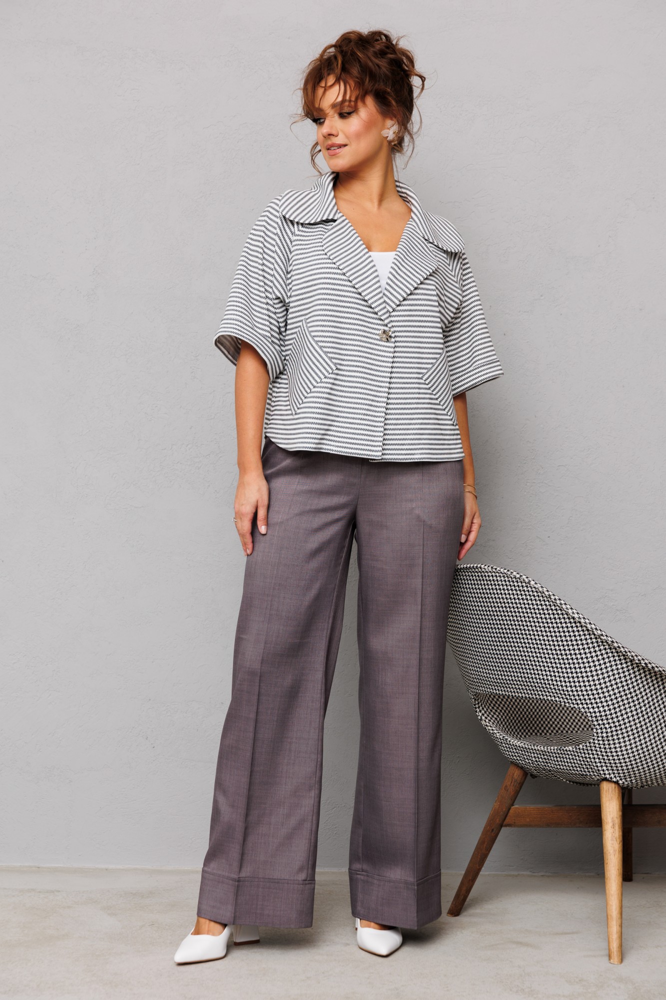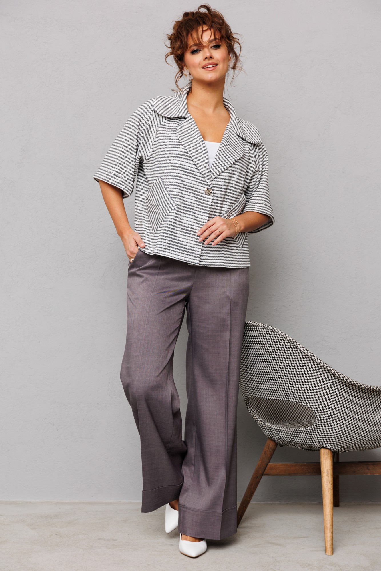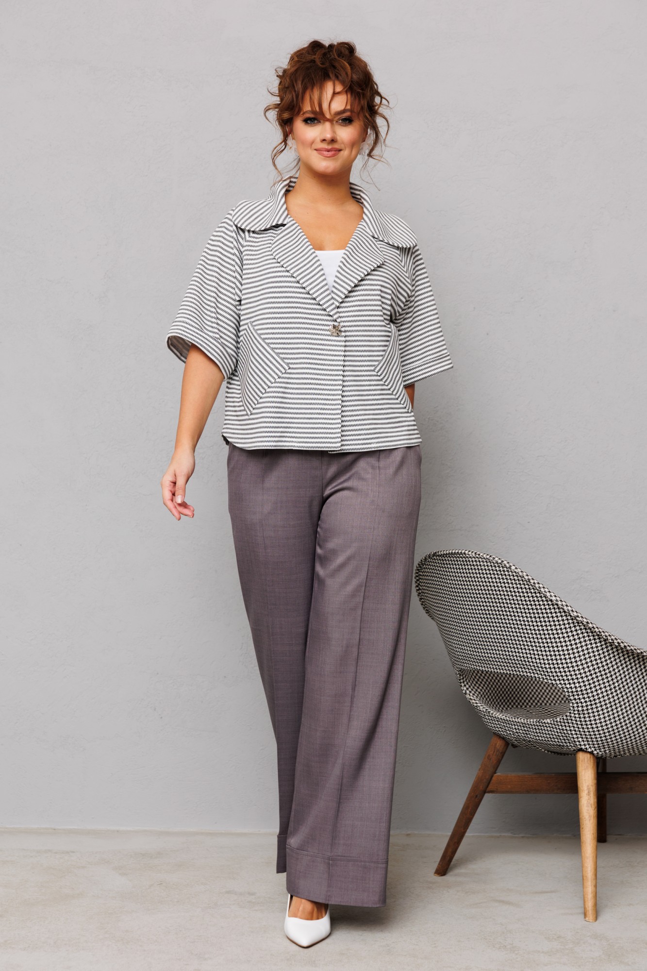 Брючный костюм Мублиз плюс 230 графит, белый