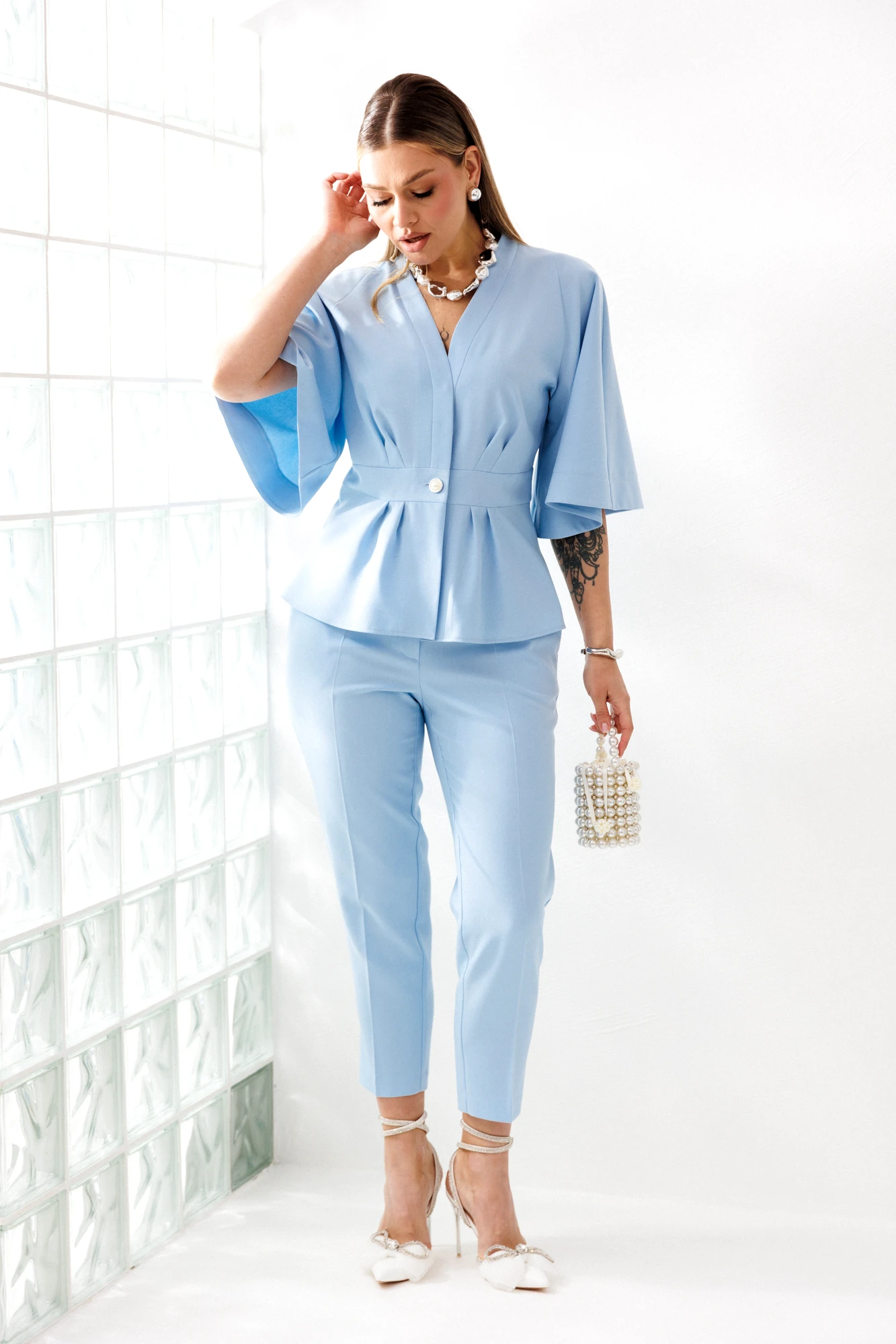 Брючный костюм Мублиз плюс 324 голубой