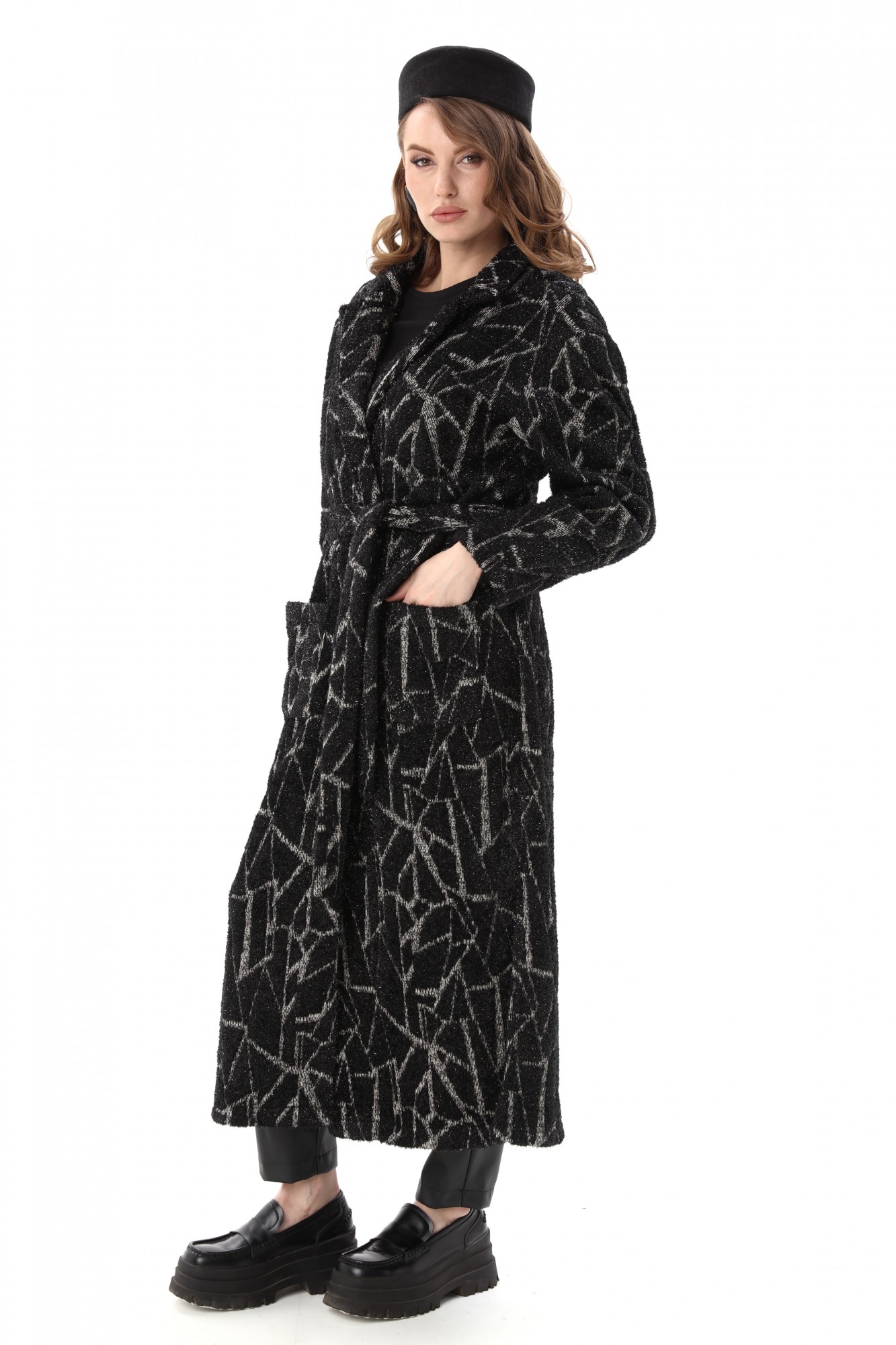 Костюм двухпредметный: состоит из кардигана и брюк. Кардиган свободного прямого силуэта длиной макси. Изделие со съемным поясом и накладными карманами. Рукав втачной, двухшовный, пройма приспущена. Воротник английский. Застежка не предусмотрена. В боковых швах разрезы. Брюки с притачным поясом и с карманами в боковых швах.