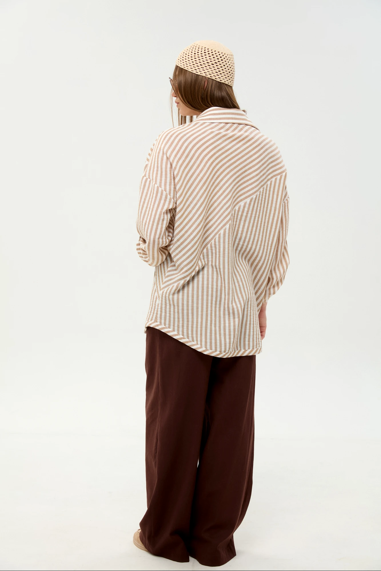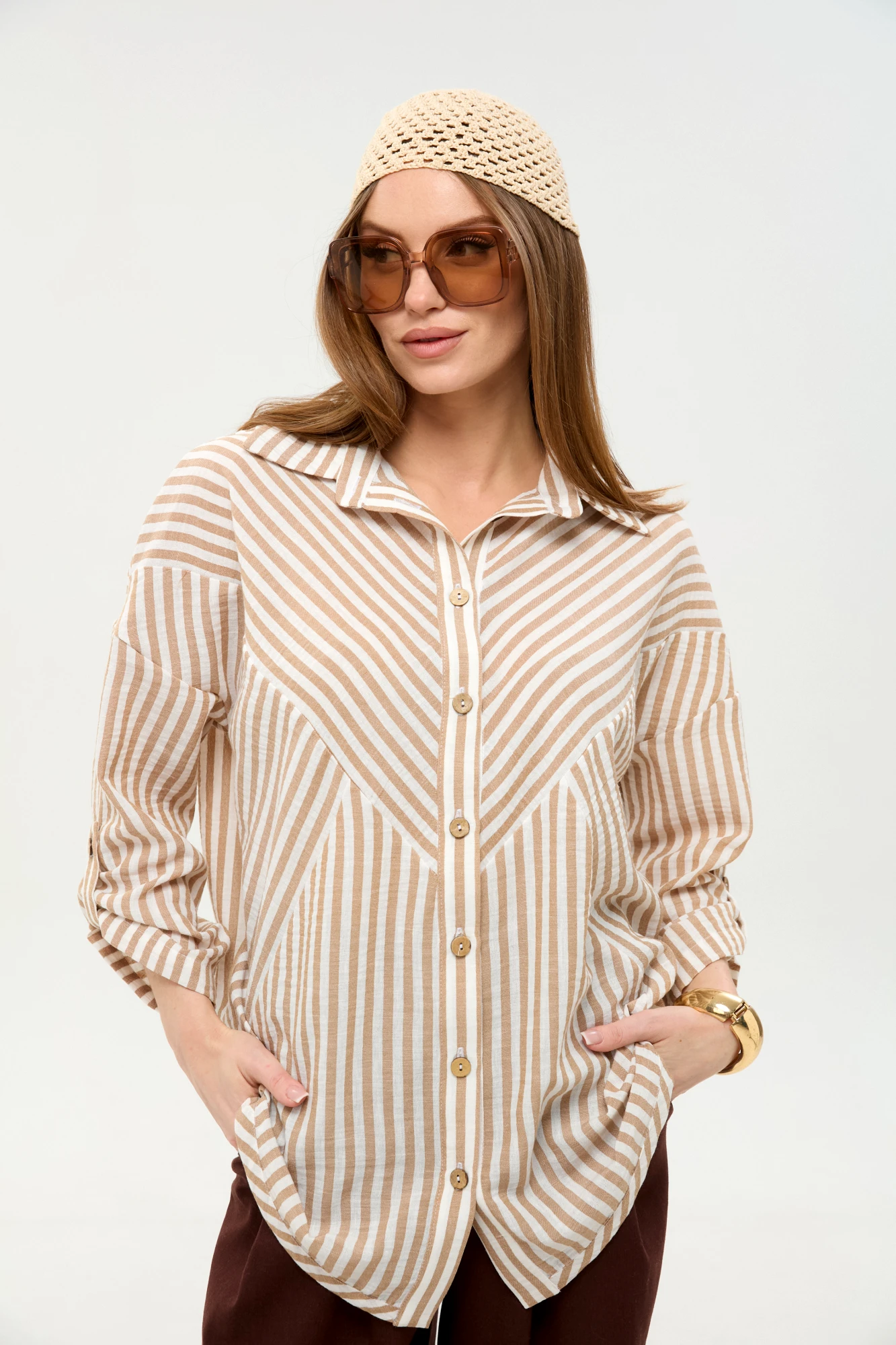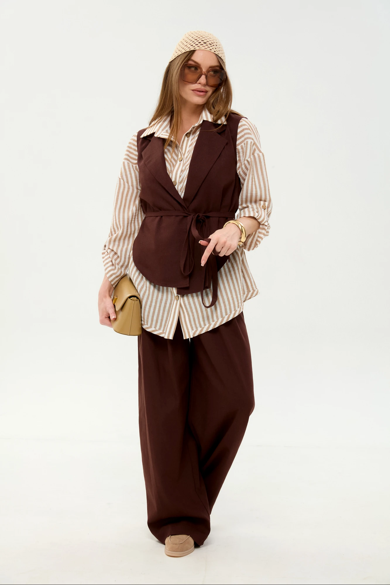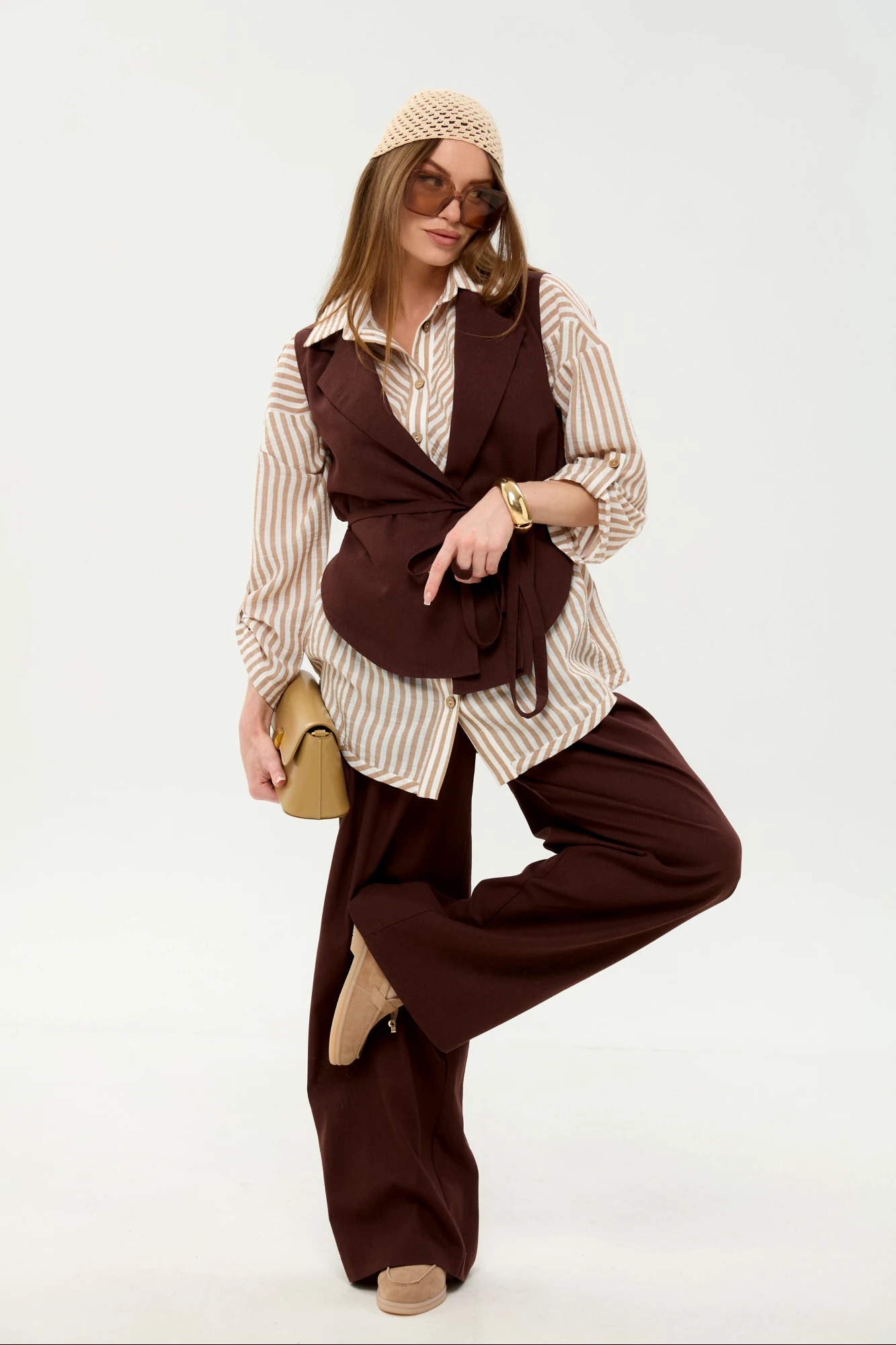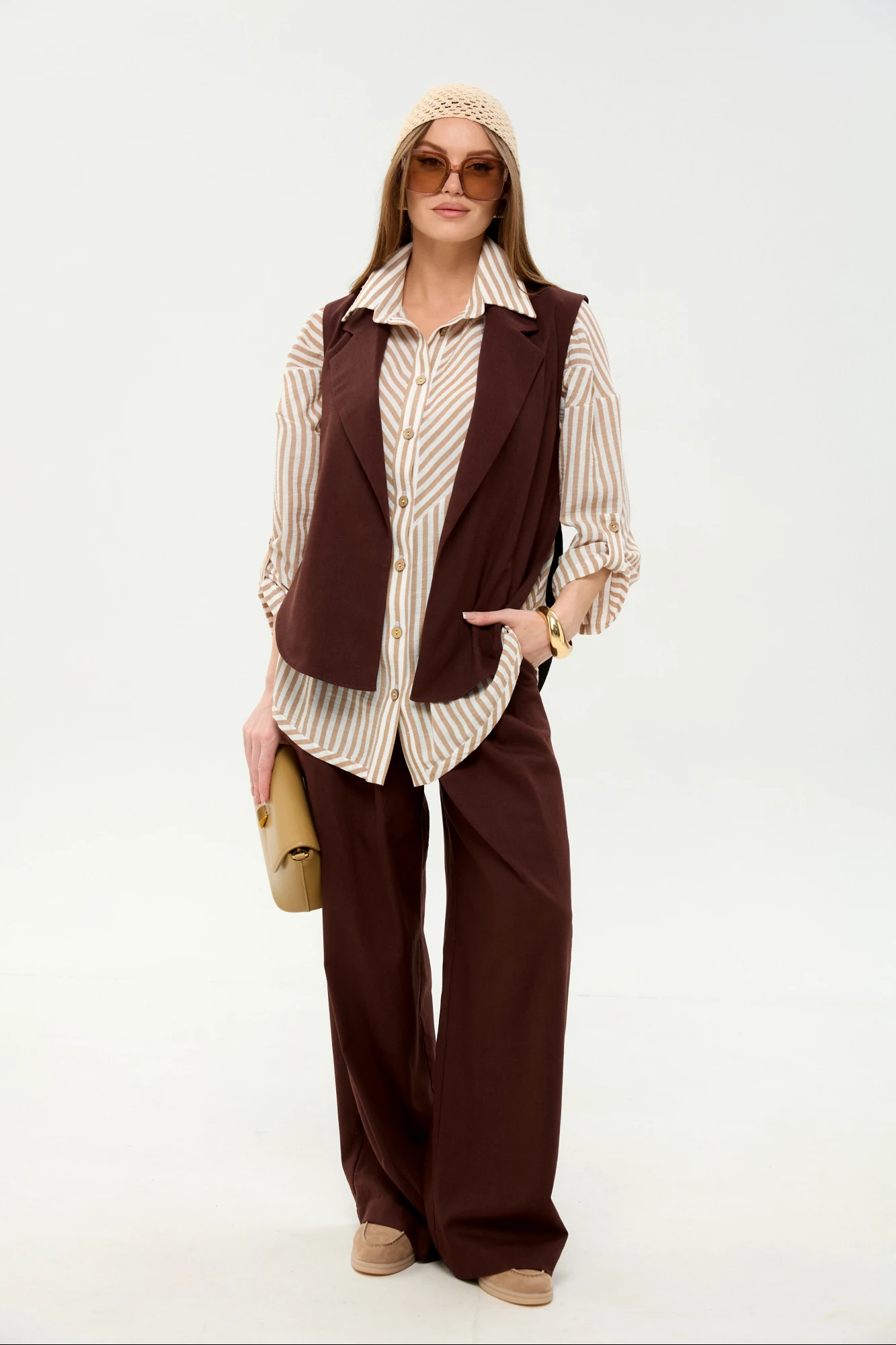 Брючный костюм NikVa н956 -4 тройка шоколад и песочные полосы