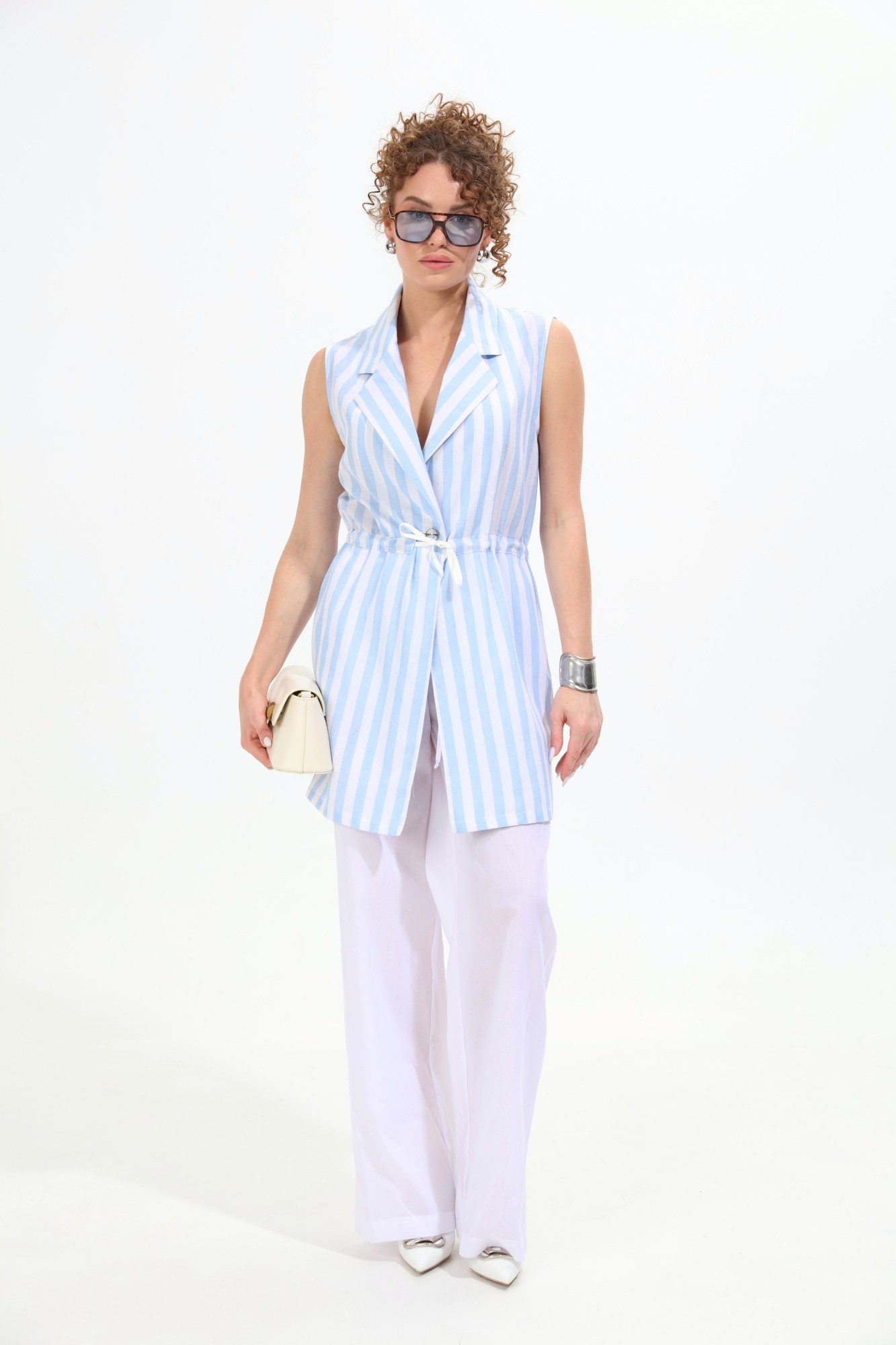 Брючный костюм NikVa н965 -1 молоко, бело-голубые полосы