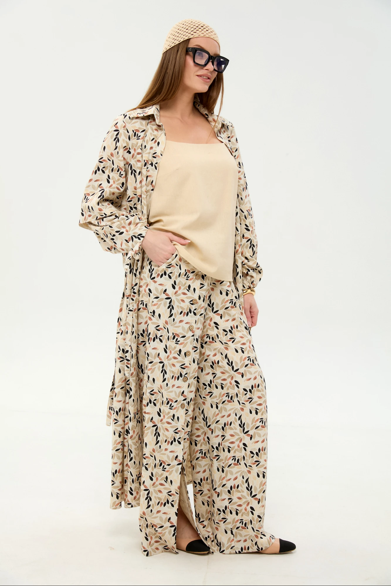 Брючный костюм NikVa н976 тройка -13 песок мультиколор