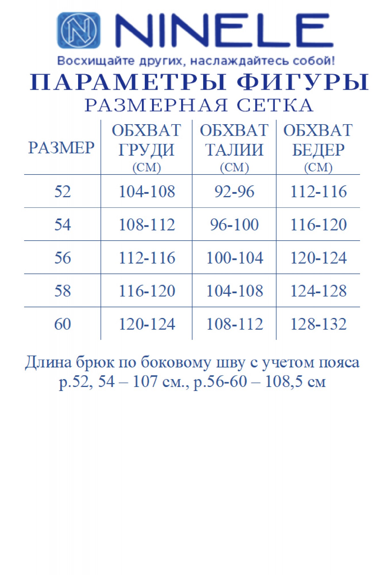 Таблица размеров