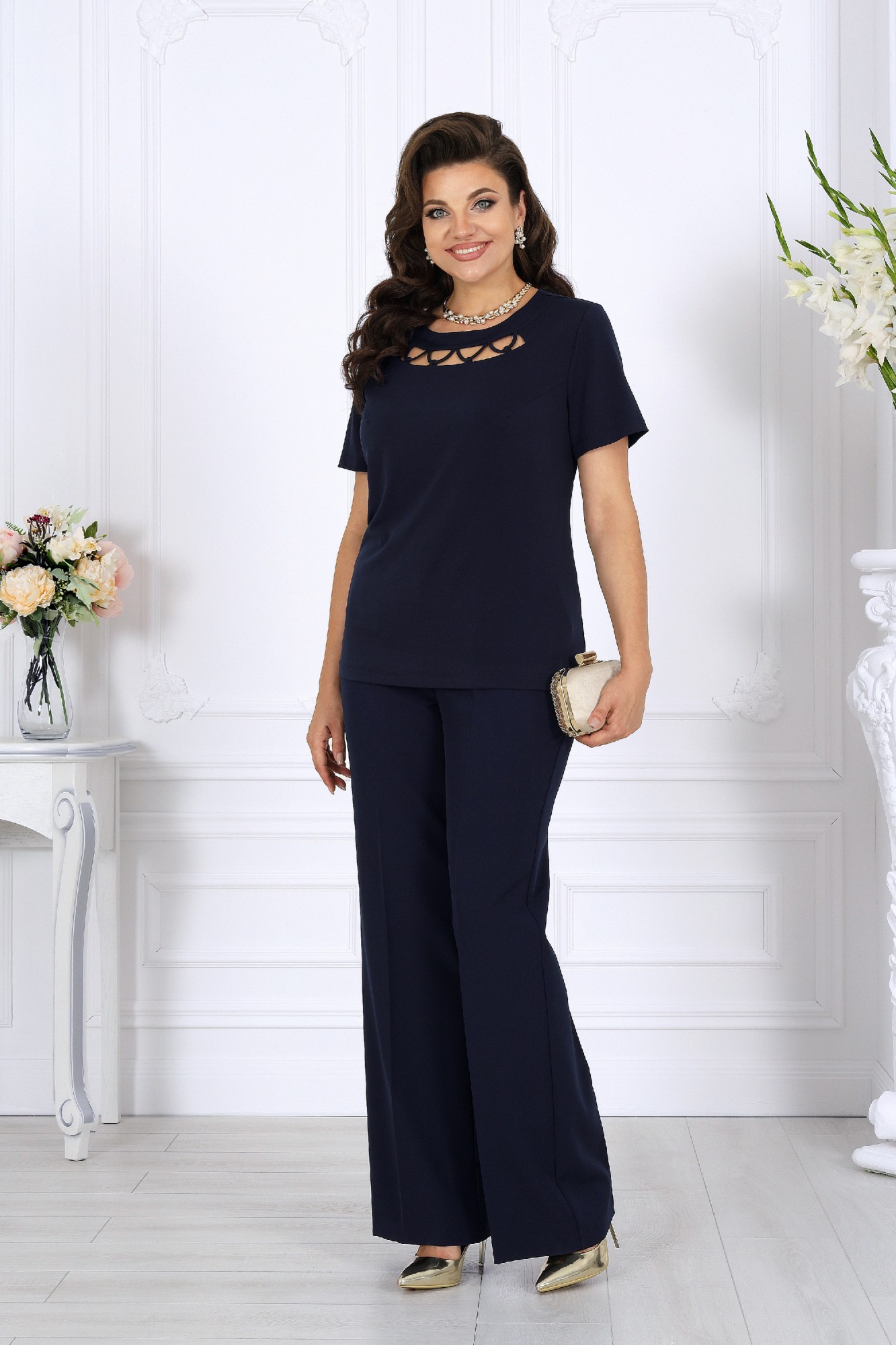 Праздничный брючный костюм-тройка для полных женщин — элегантный выбор для особых случаев и стильных деловых образов. Комплект состоит из трёх предметов: изысканного кардигана из гипюра, мягкой трикотажной блузки и классических брюк со стрелками. Такой ансамбль выглядит нарядно, подчеркивает женственность и формирует правильный силуэт даже для фигур plus size. Такой универсальный костюм тройка подходит для праздничных мероприятий, свадеб, юбилеев, корпоративов, а также для делового офиса или официальных. встреч. Он помогает создать безупречный, продуманный образ, скрыть небольшие несовершенства и подчеркнуть достоинства фигуры. Комплект брючный 3-х предметный, состоящий из кардигана, блузки и брюк. Кардиган прямого силуэта, выполнен из гипюра. Модель без застежки, без подкладки и плечевых накладок. Низ кардигана удлинен спереди. Рукав трехчетвертной. Низ изделия и низ рукава оформлены фестонами. Длина кардигана – 74 см; длина рукава – 48 см. Блузка полуприлегающего силуэта, выполнена из трикотажного полотна «масло». Модель без плечевых накладок. Фигурный вырез переда с декоративным элементом в виде узора, выложенного шнуром из основной ткани. Горловина округлой формы, с отрезной бейкой по переду. Рукав короткий, втачной. Длина блузки – 63 см; длина рукава – 22 см. Брюки классические, длинные, с посадкой на талии, выполнены из костюмно- плательной ткани. Модель со стрелками. Передние и задние половинки брюк с таллиевыми вытачками, направленными от пояса вниз. Спереди обработаны наклонные боковые карманы и центральная застёжка на тесьму-«молнию». Притачной пояс застегивается на 1 петлю и 1 пуговицу; для лучшего прилегания по линии талии в притачном поясе предусмотрена эластичная лента, вставленная по спинке. Длина брюк по боковому (с поясом) – 107 см (50-52 р-р), 108 см 954-58 р-р).