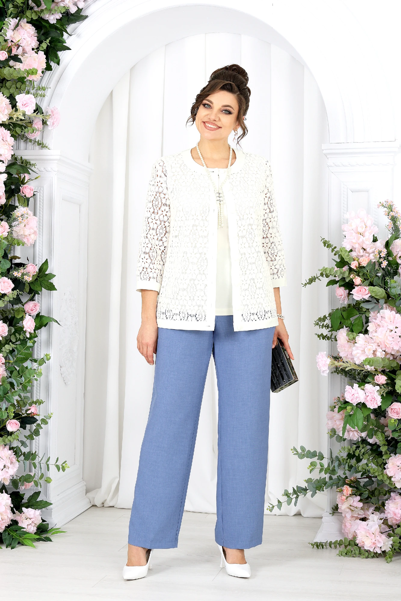 Брючный костюм NINELE 7518 тройка небесный