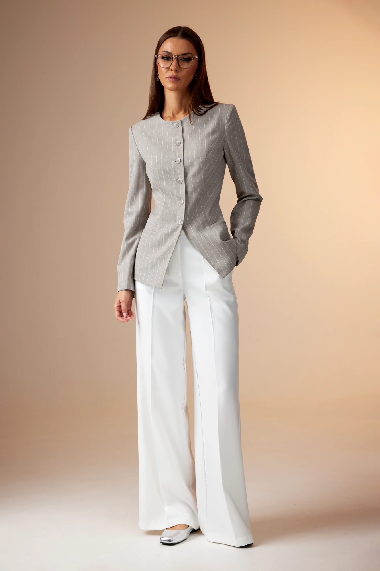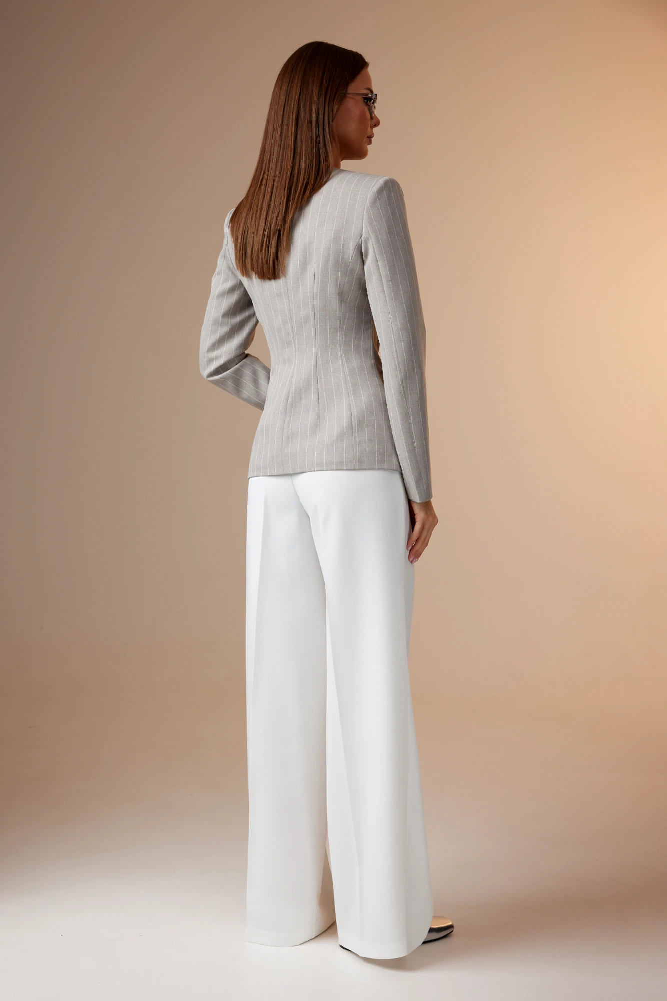 Жакет – хлопок 56%, полиэстер 41%, спандекс 3%; Брюки – вискоза 65%, полиэстер 32%, спандекс 3%