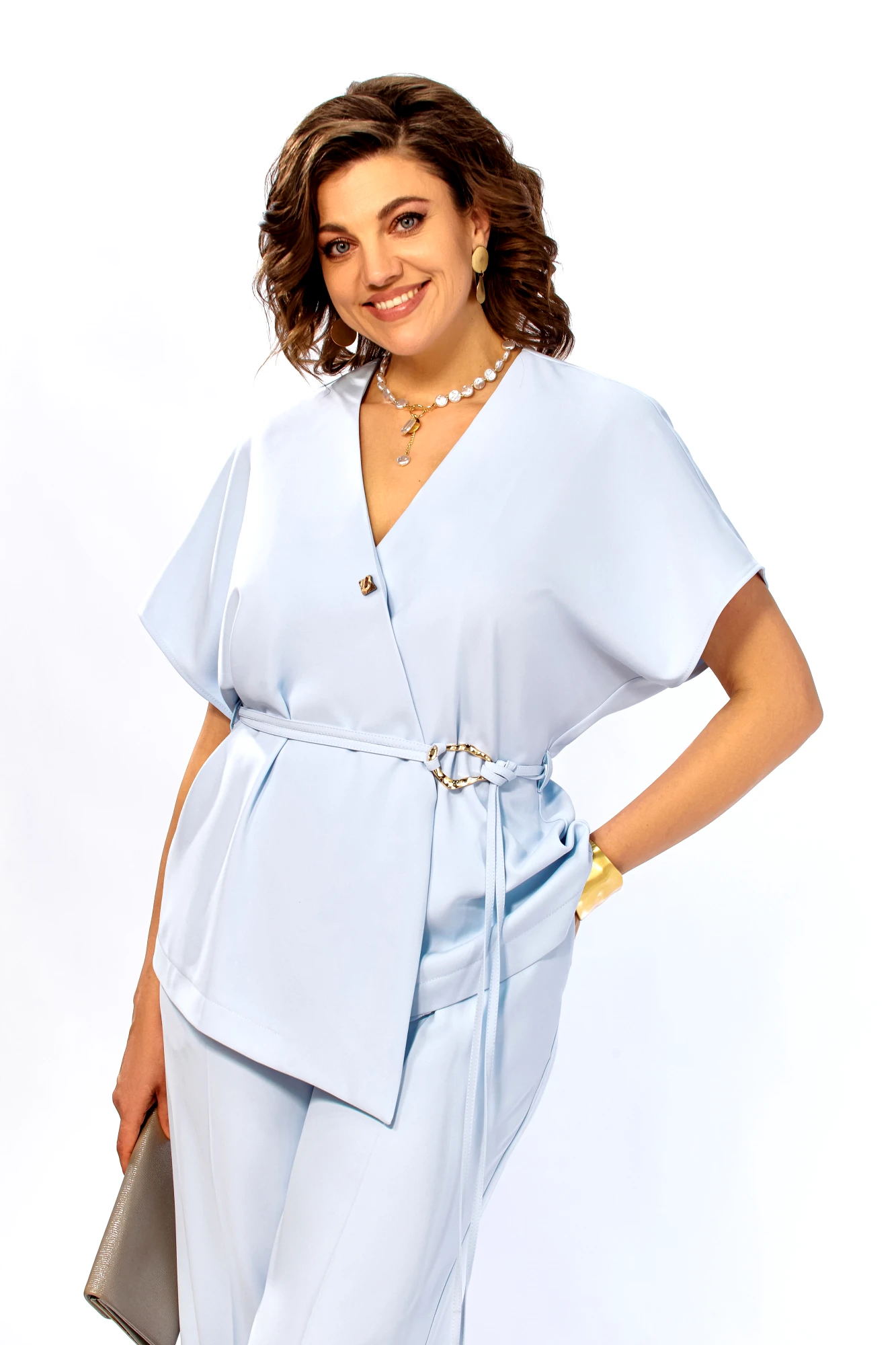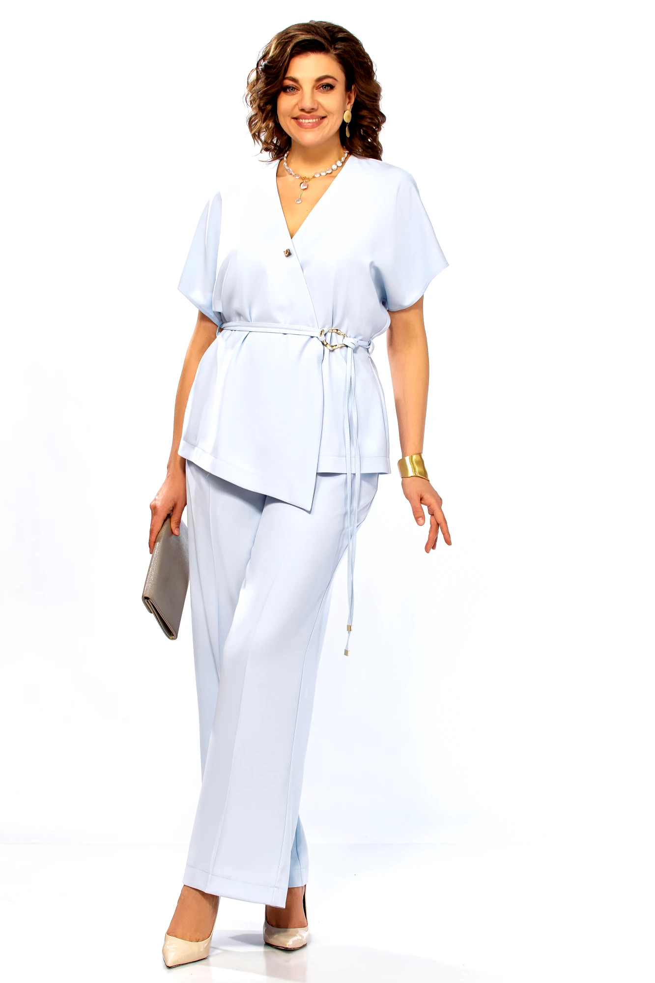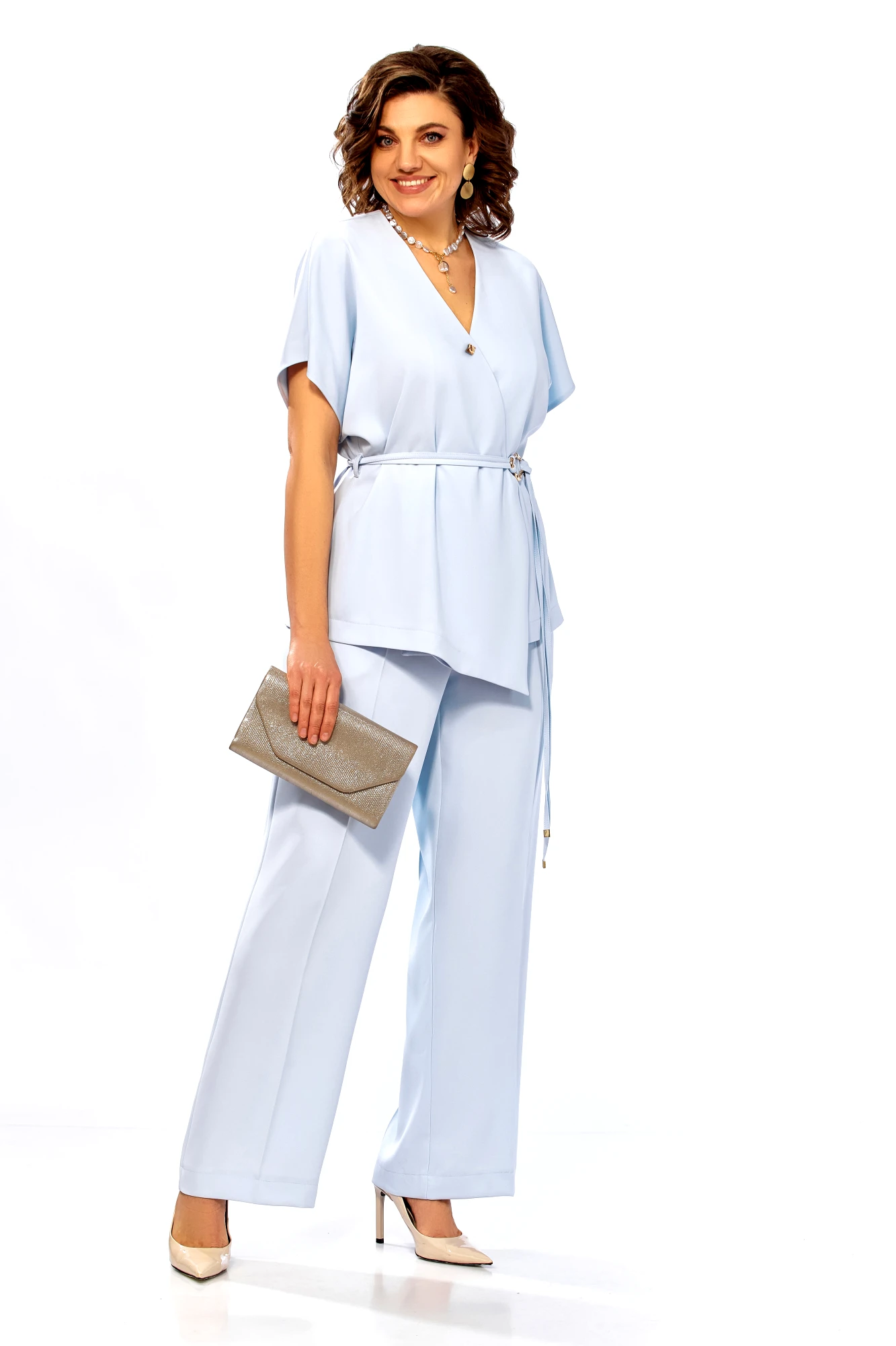 Брючный костюм Ольга Стиль С1020 голубой