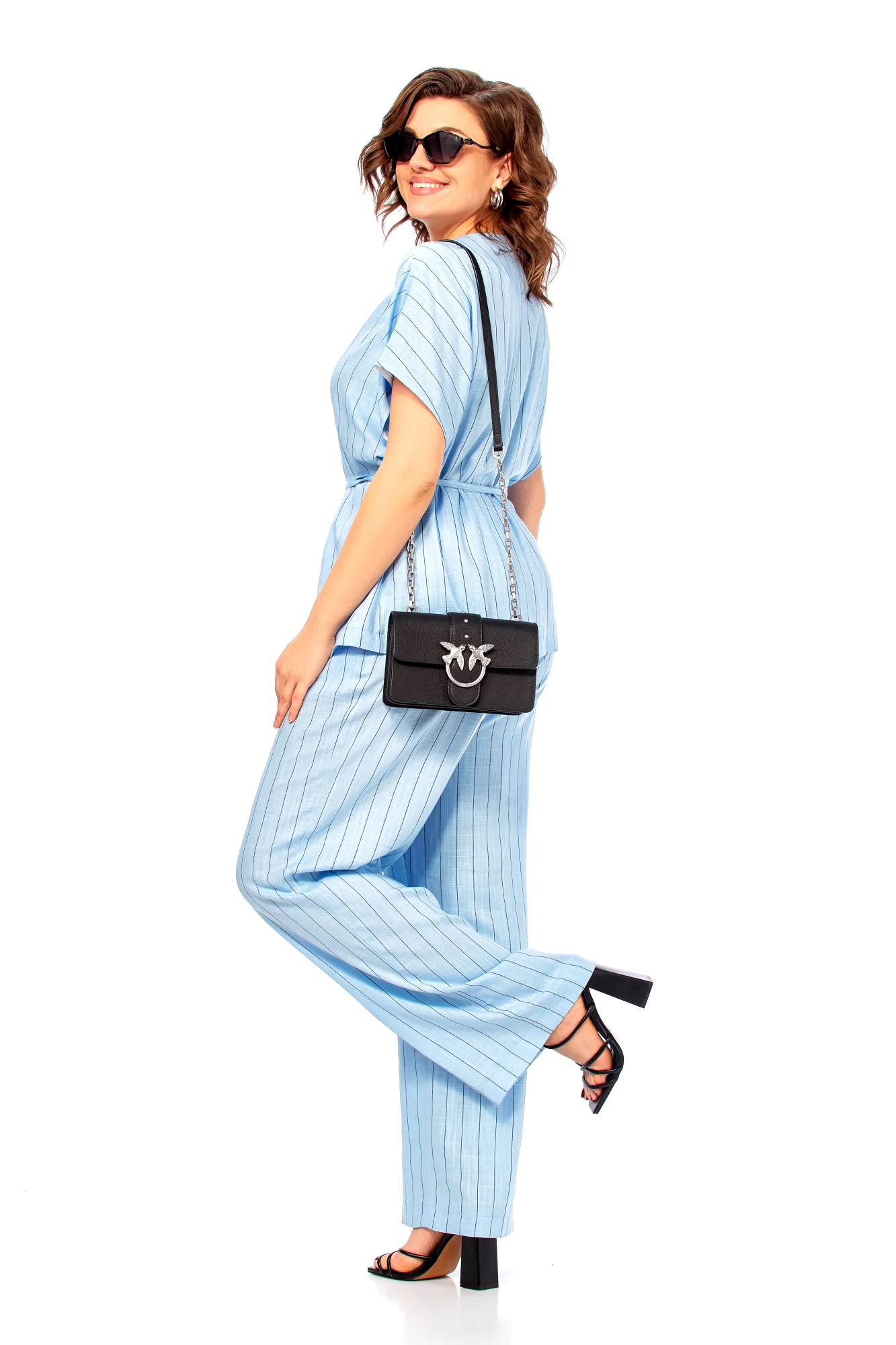 Брючный костюм Ольга Стиль С1023 голубой, полоска