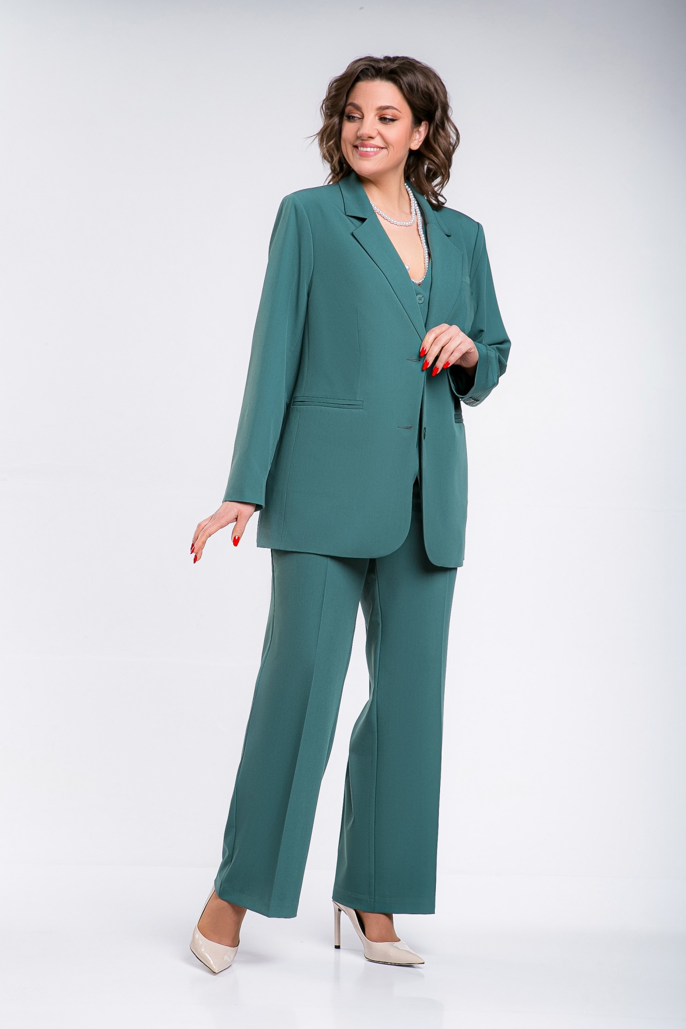 Брючный костюм Ольга Стиль С910 тройка светлая бирюза