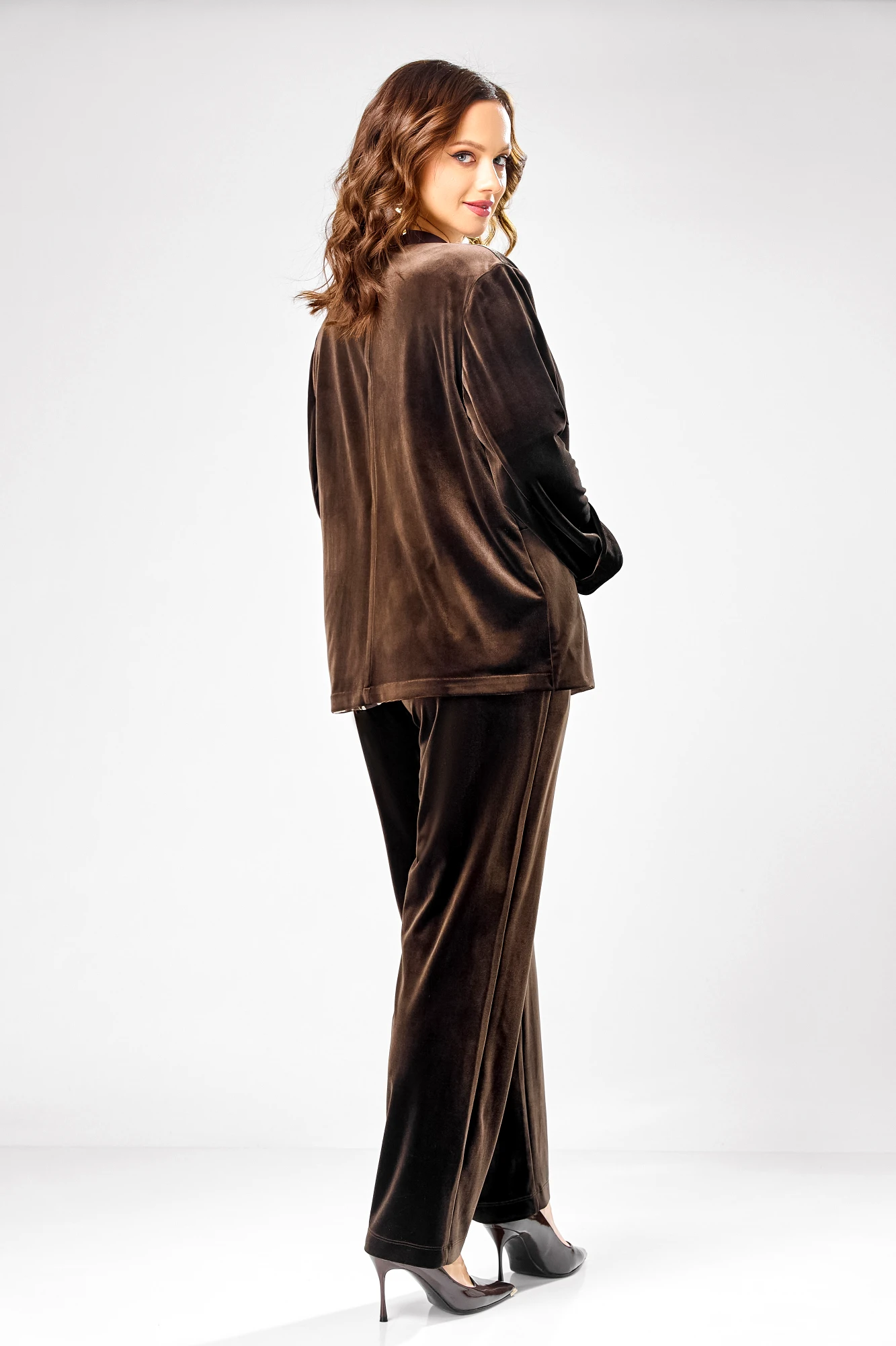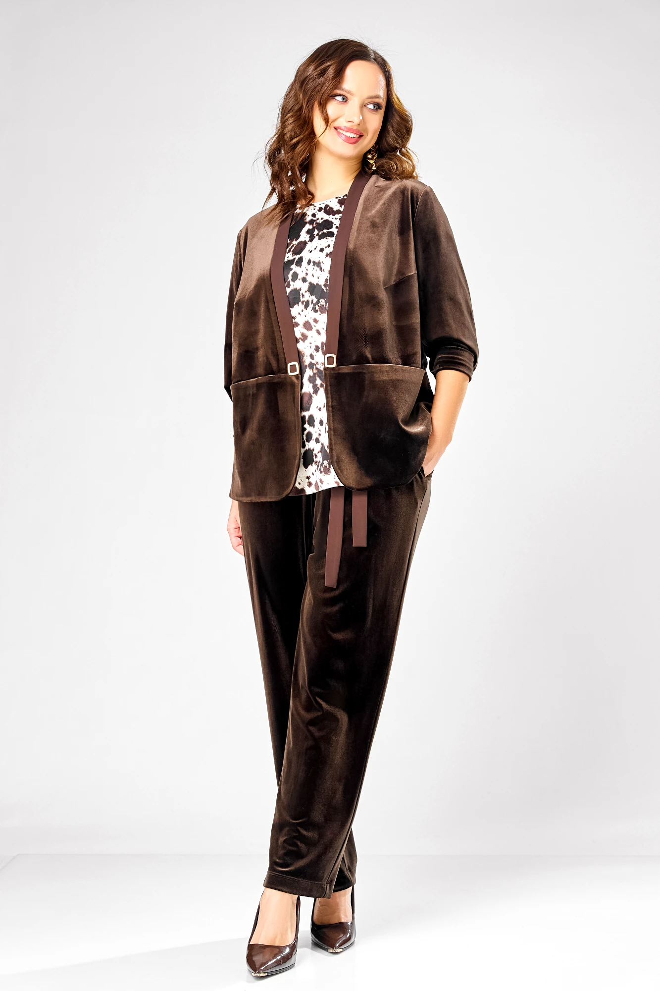 Брючный костюм Ольга Стиль С988 тройка коричневый