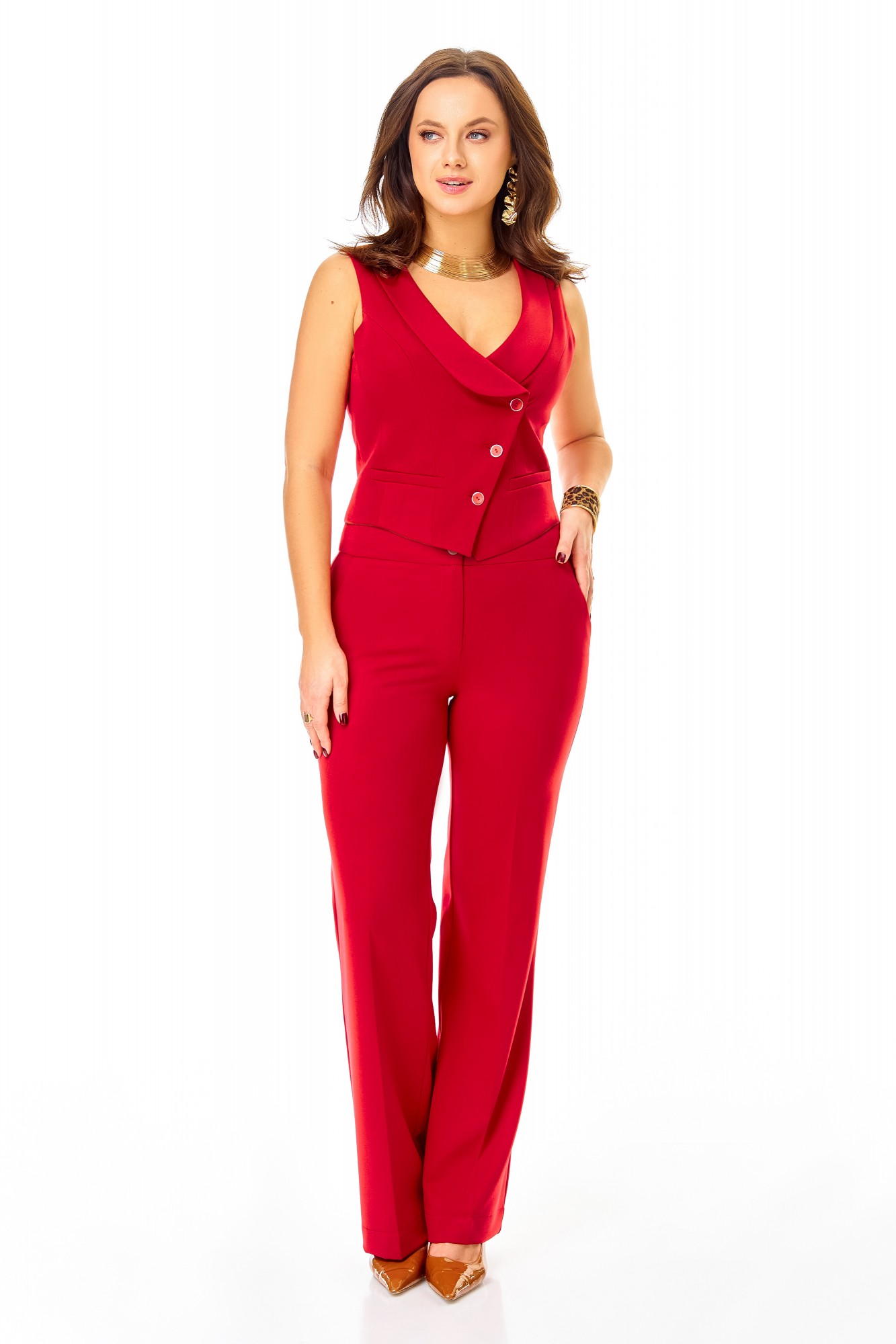 Брючный костюм Ольга Стиль С992 тройка красный