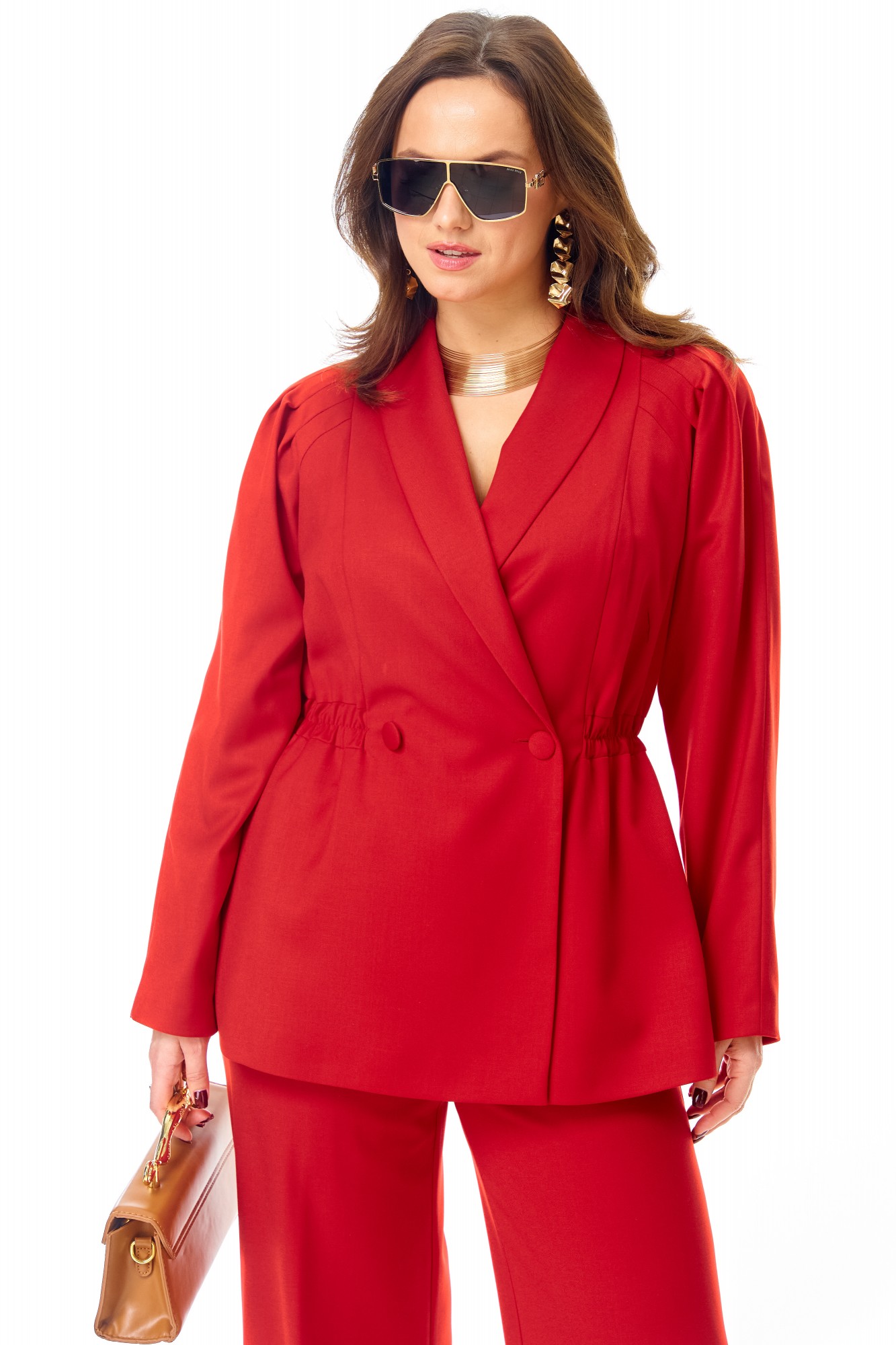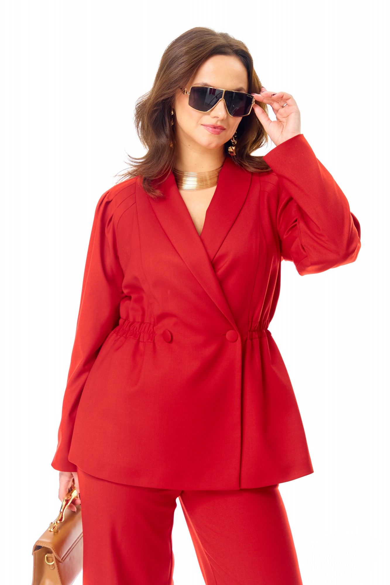 Брючный костюм Ольга Стиль С993 красный