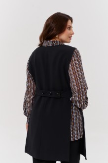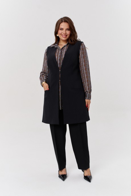 Костюм двойка женский из новой коллекции обрадует Вас посадкой и качеством пошива. Состоит из двух элементов: жилетки и брюк. Каждый элемент пошит с особым подходом, чтобы можно было надевать их как в будни, так и в праздничные дни. Удлинённый жилет с V –образным вырезом на подкладке прямого кроя выполнен из костюмной ткани, имеет удобные функциональные карманы, что добавляет практичности. Жилет с ассиметричными бортами, с застежкой на крючки по переду, и на регулируемые пуговицы по спинке. По бокам глубокие разрезы с уменьшением полочек, что визуально вытягивает фигуру и делает его комфортным для повседневного ношения как в офис, так и на другие мероприятия. Брюки частично на резинке, с молнией, а также центральной застежке на петлю-пуговичку. Брюки заужены к низу, что зрительно вытягивает фигуру и невероятно стройнит. Для удобства и функциональности в боковых швах карманы- «хулиганы». Ткань эластичная, струящаяся