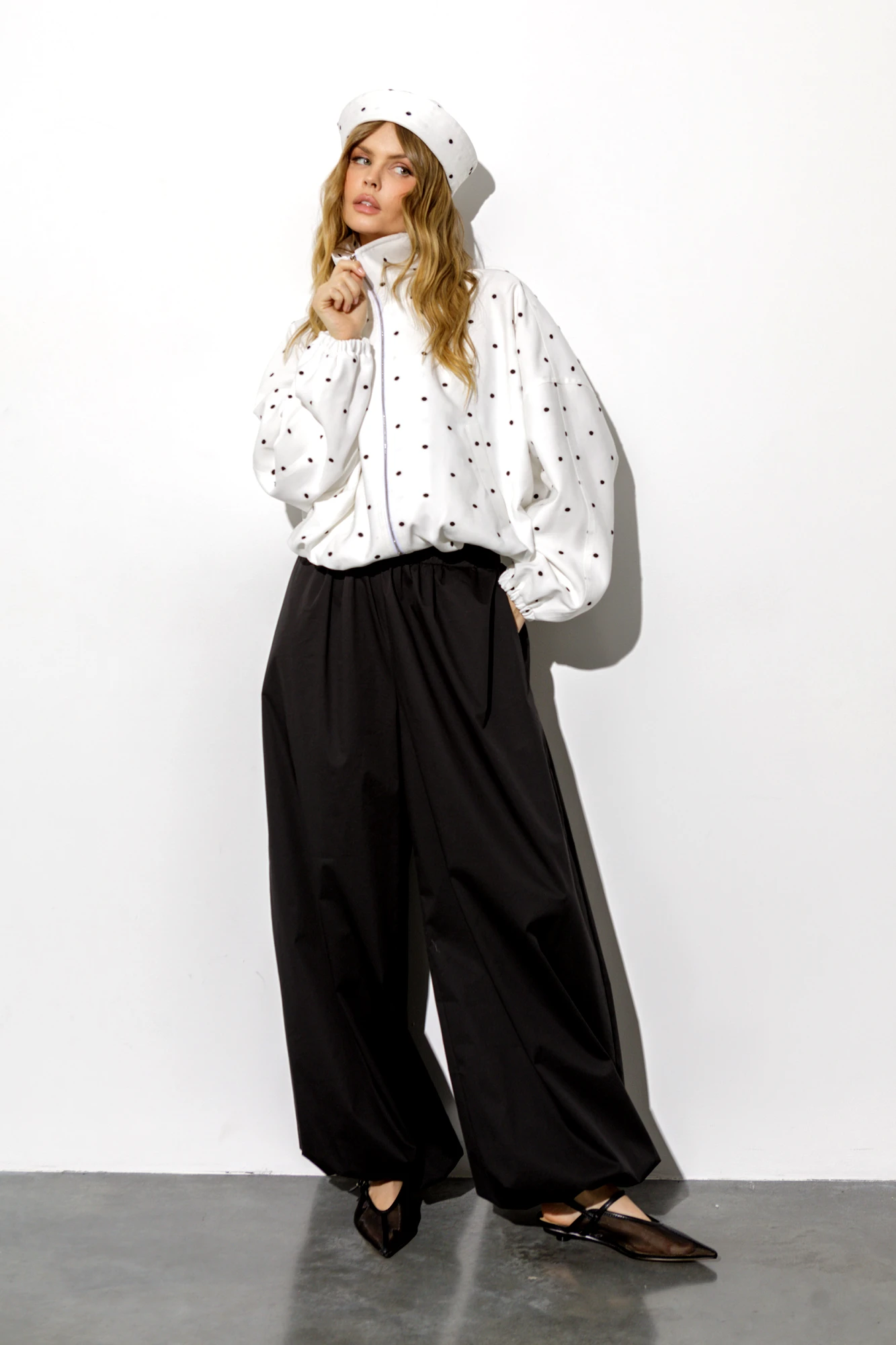 ветровка- 93% вискоза 3% полиэстер, подкладка - 100% хлопок; брюки- 76% хлопок 22% полиэстер 2% эластан
