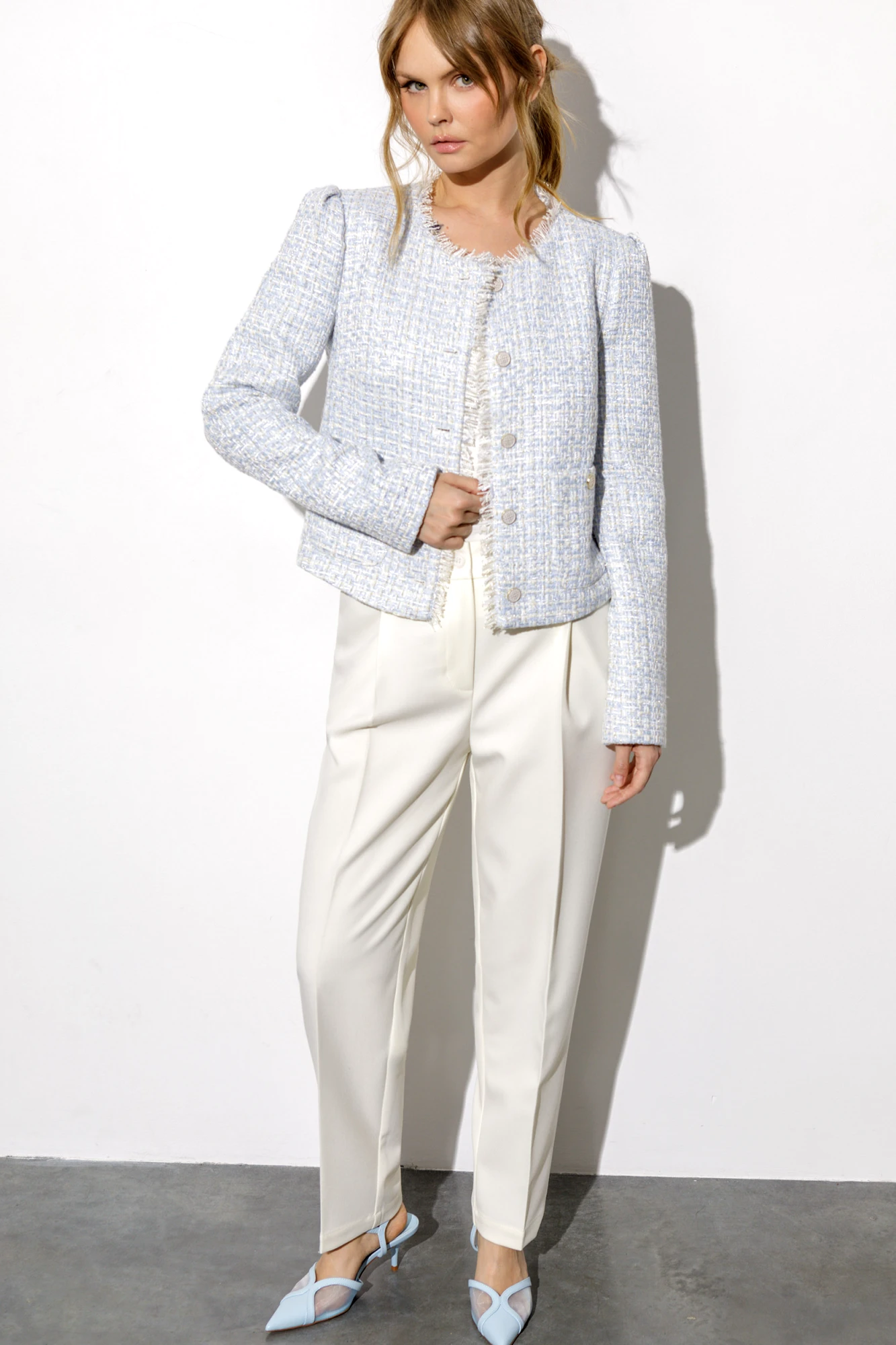Брючный костюм PiRS 6787 двойка голубой, айвори