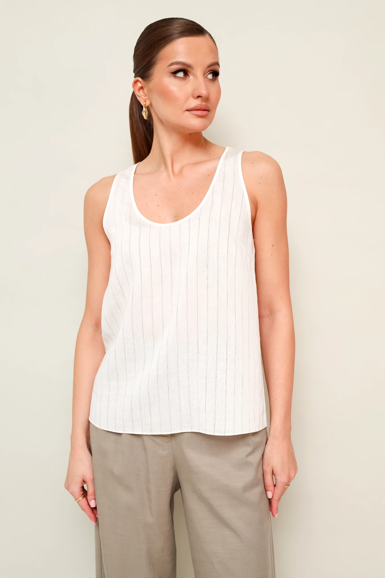 Брючный костюм PUR PUR 11-478 тройка бежевый, белый