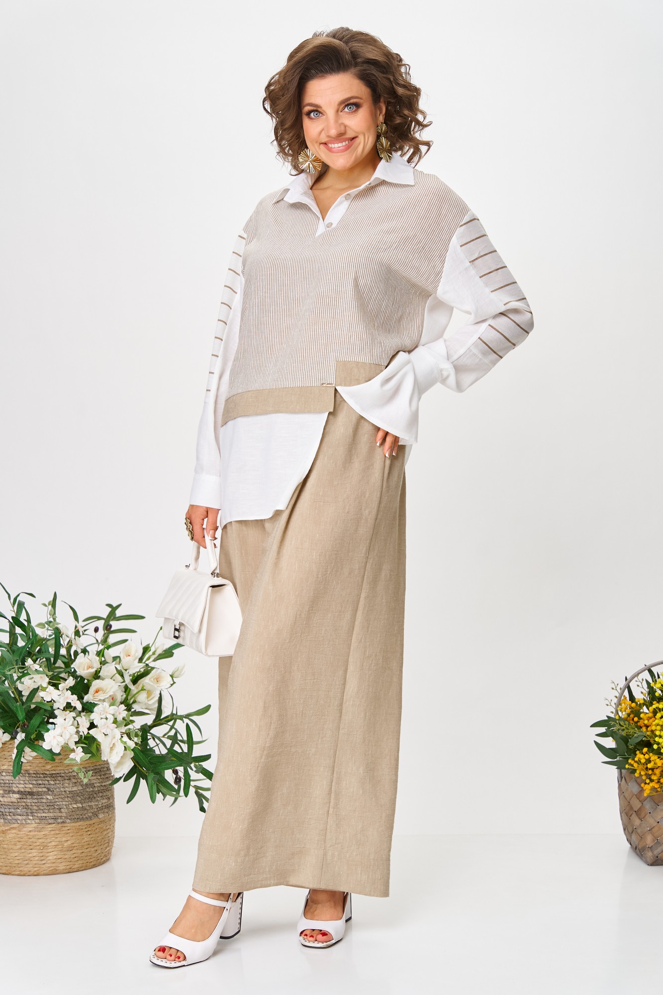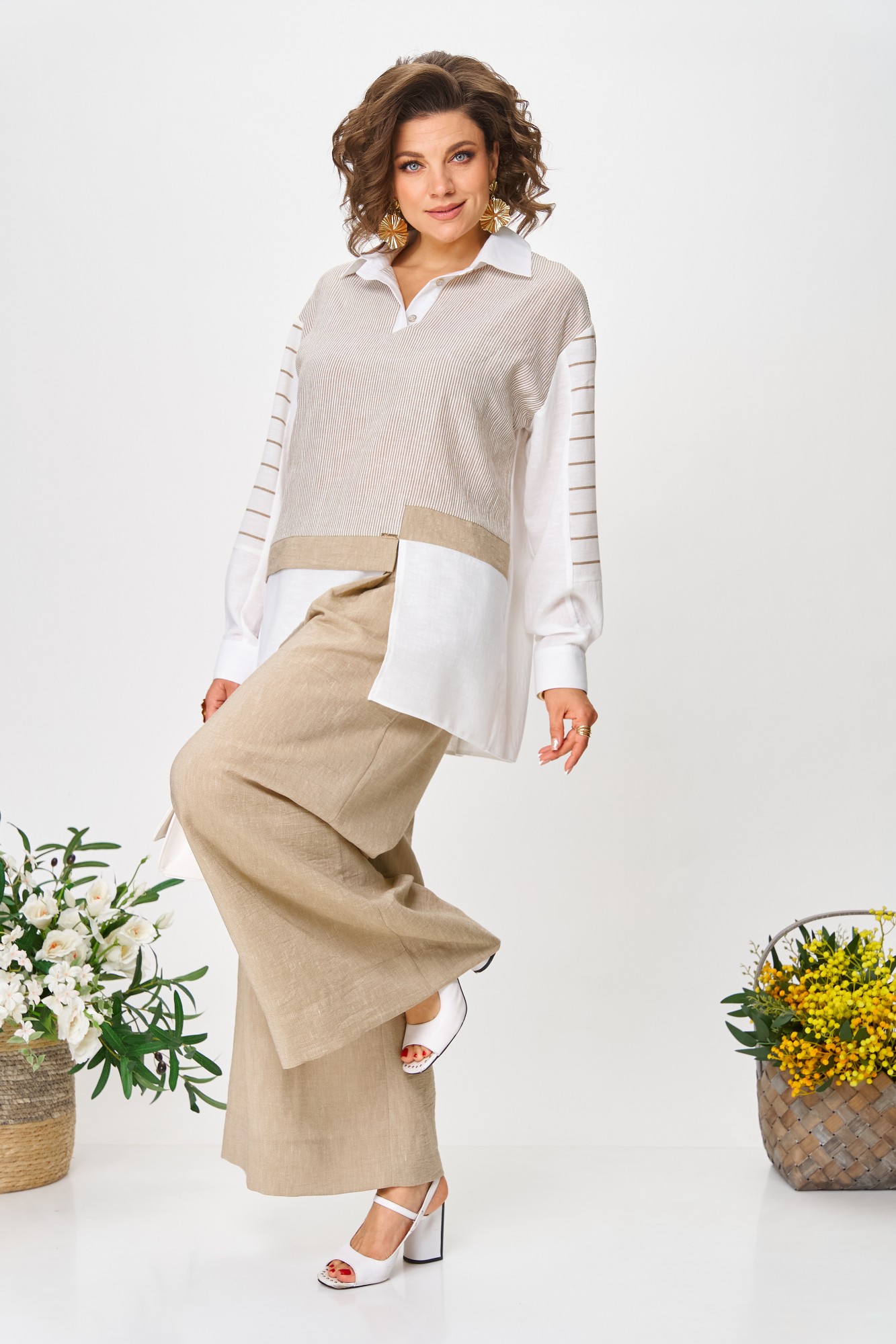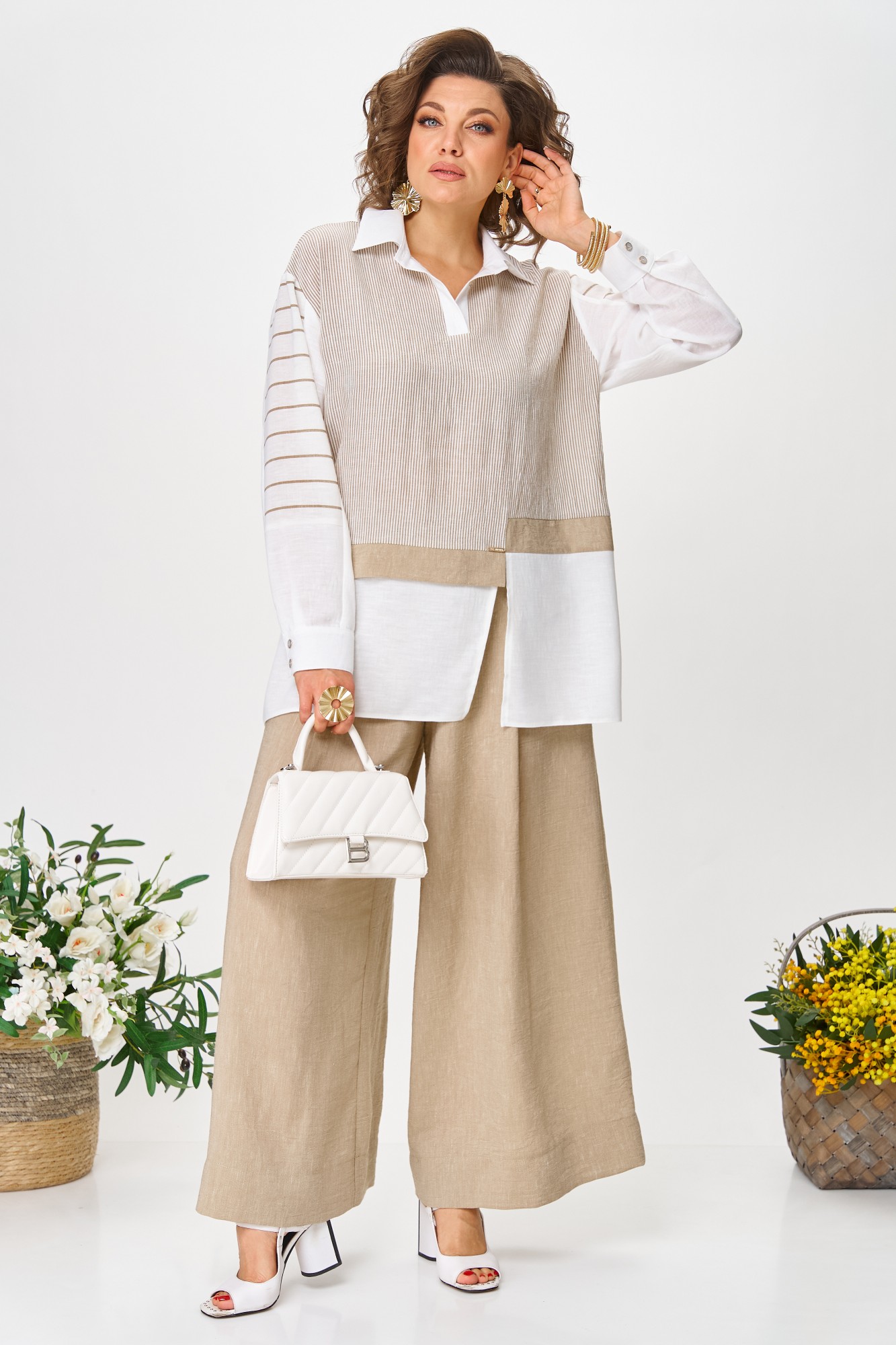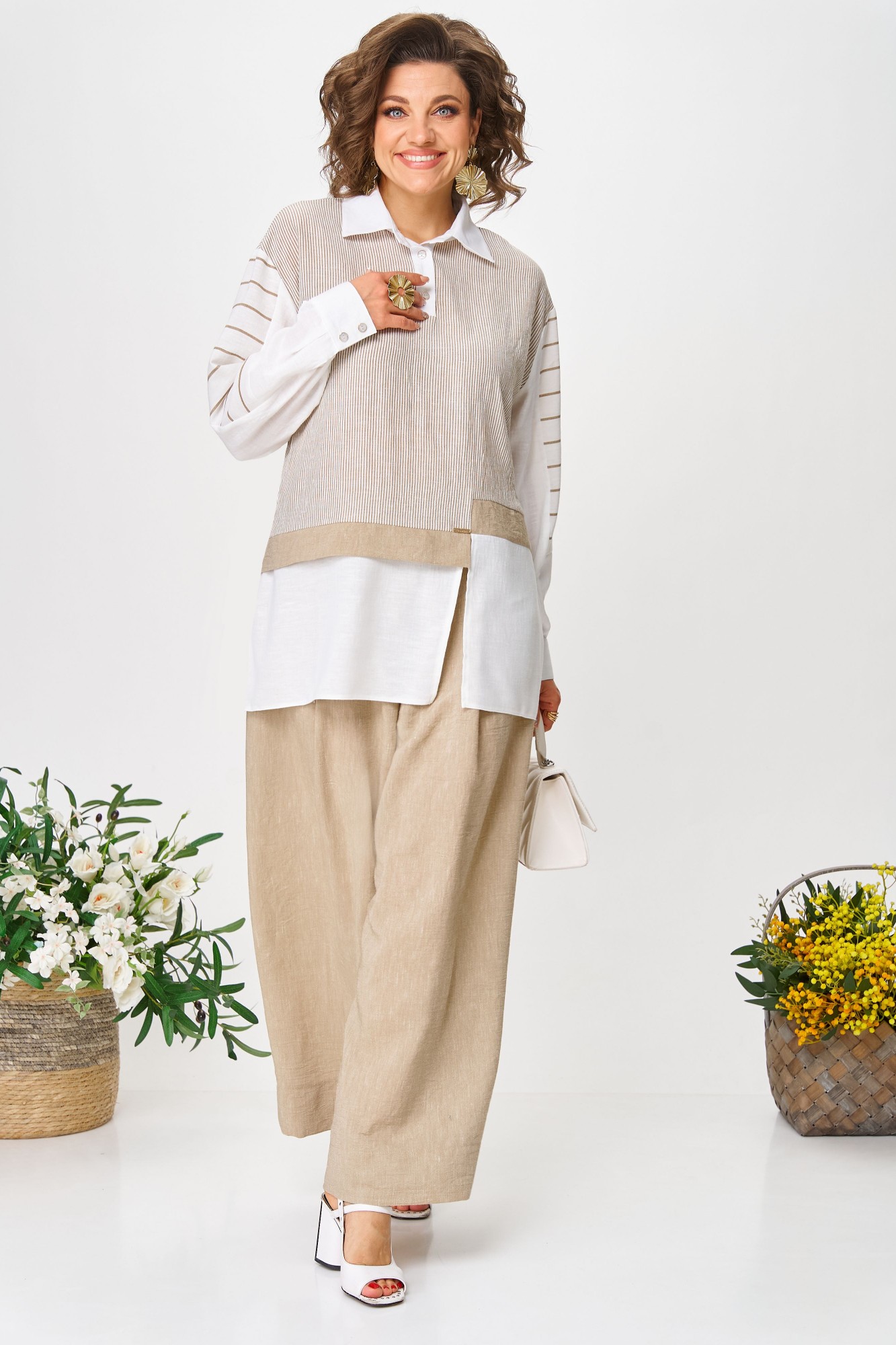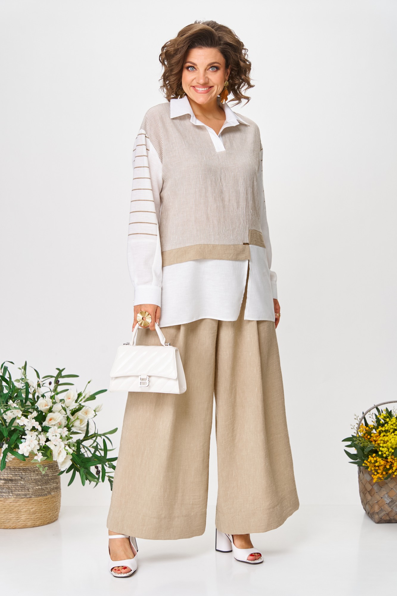 Брючный костюм Anastasia м-1242 молочно-бежевый