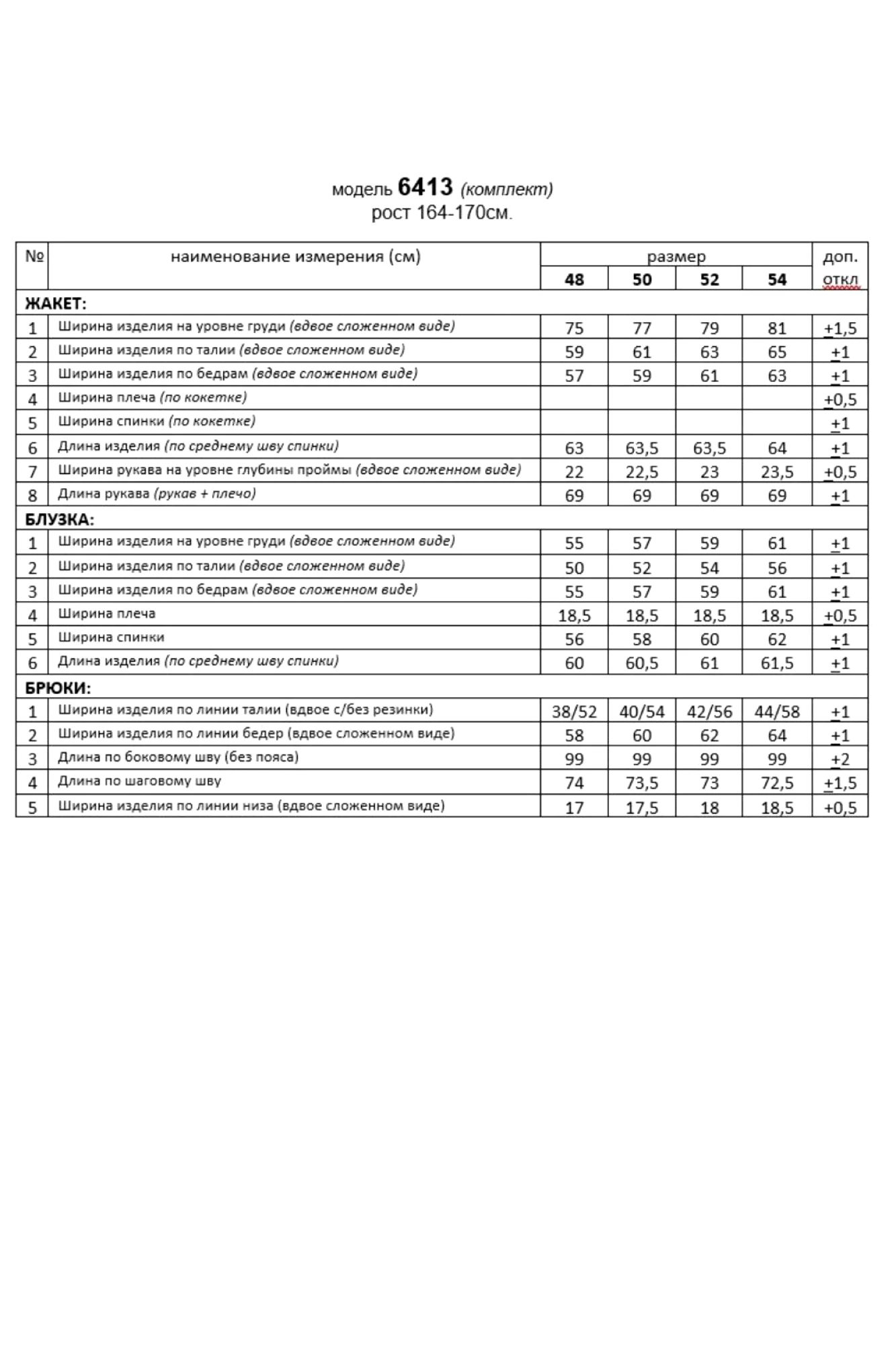 жакет- вискоза 89%, акрил 8%, эластан 3%. брюки– вискоза 60%; пэ 37%; спандекс 3%. блузка– вискоза 58%; хлопок 34%, эластан 8%.
