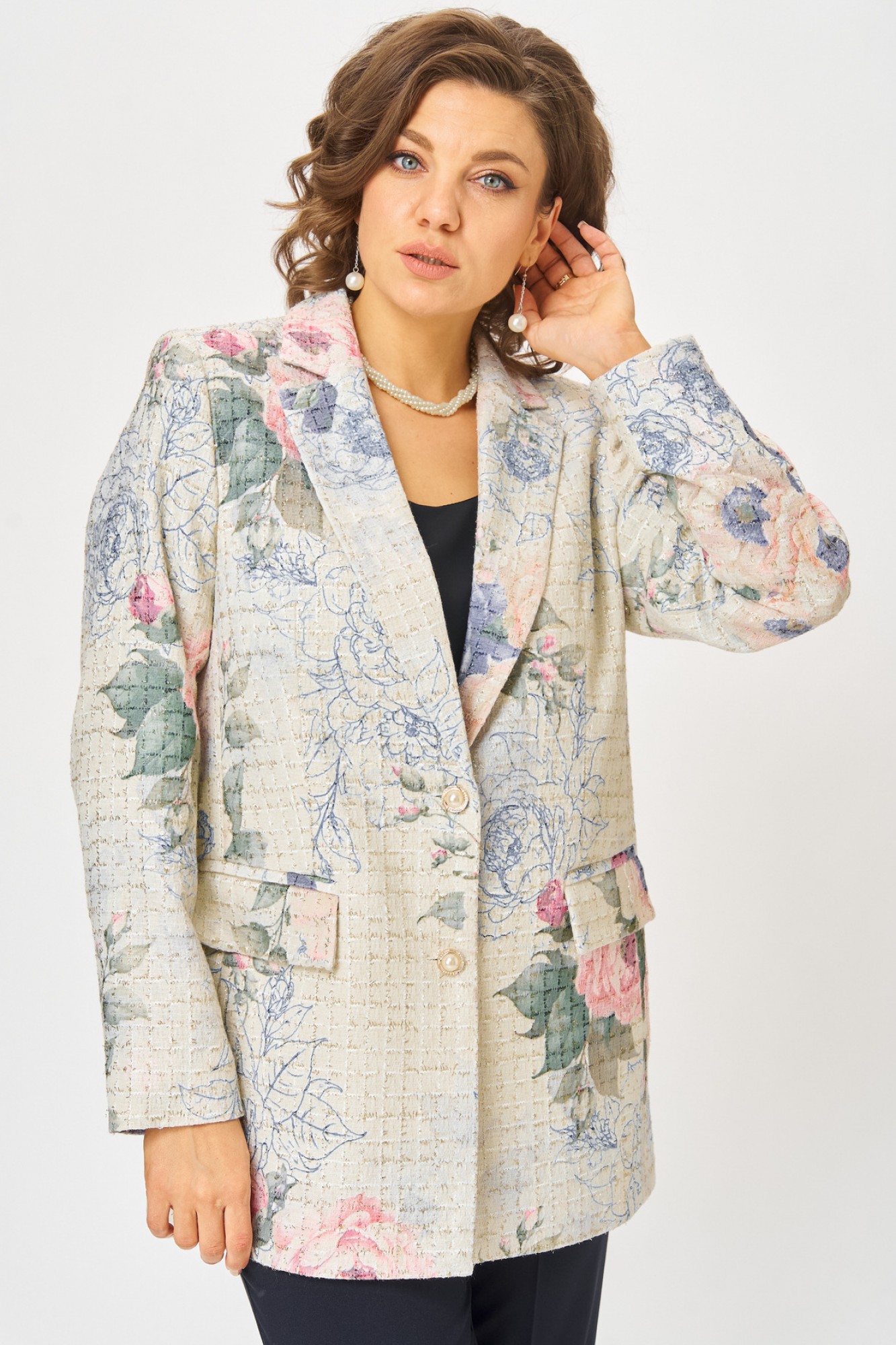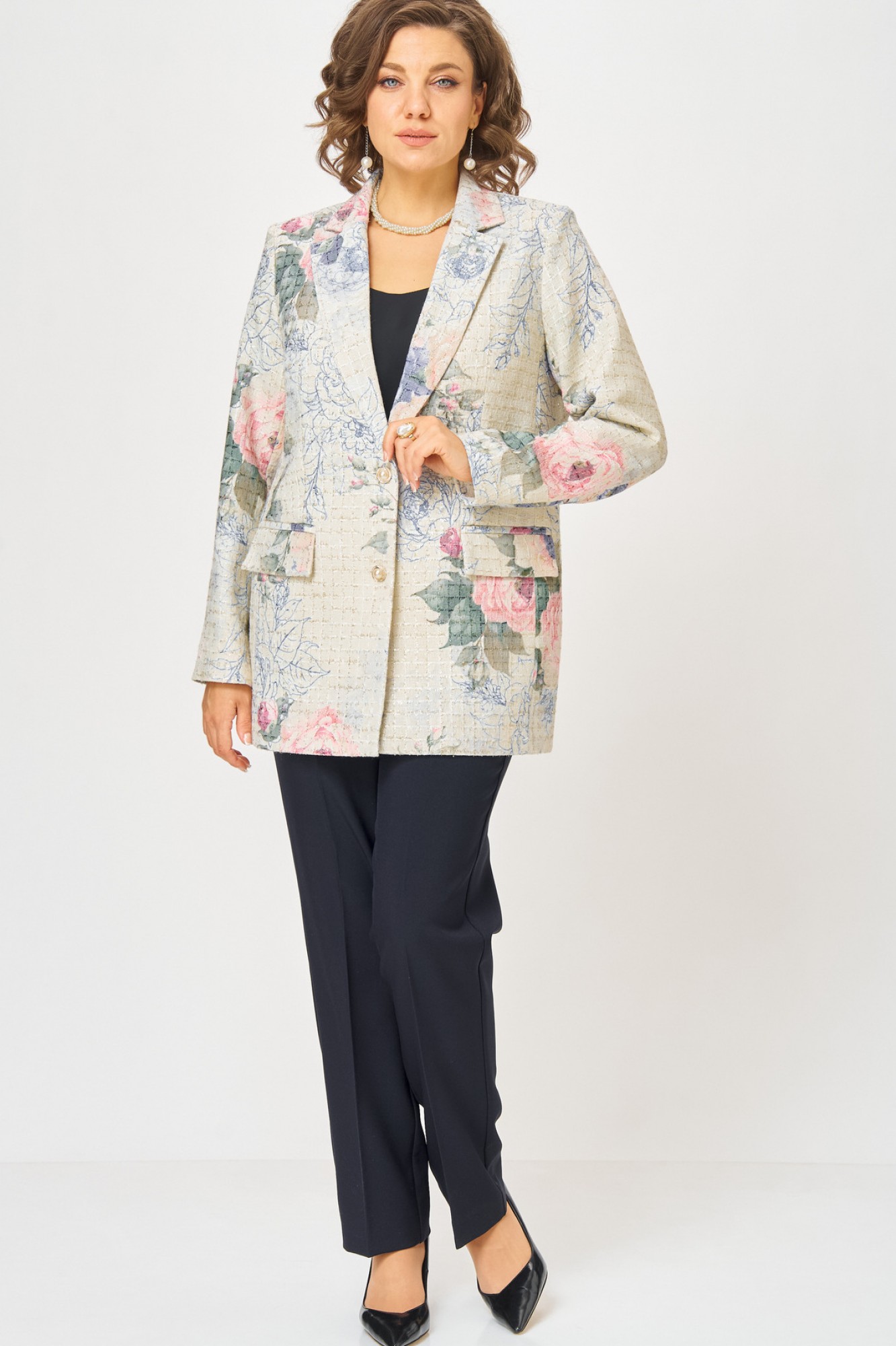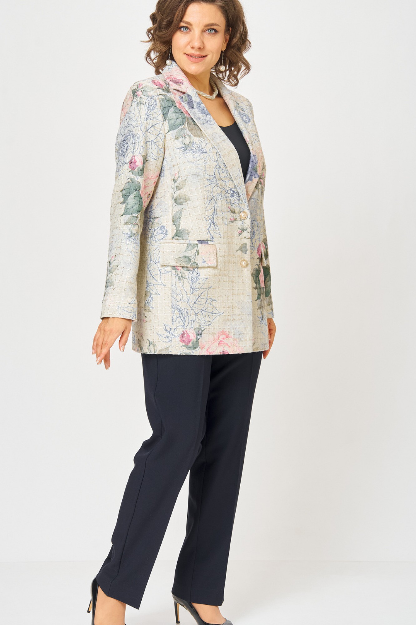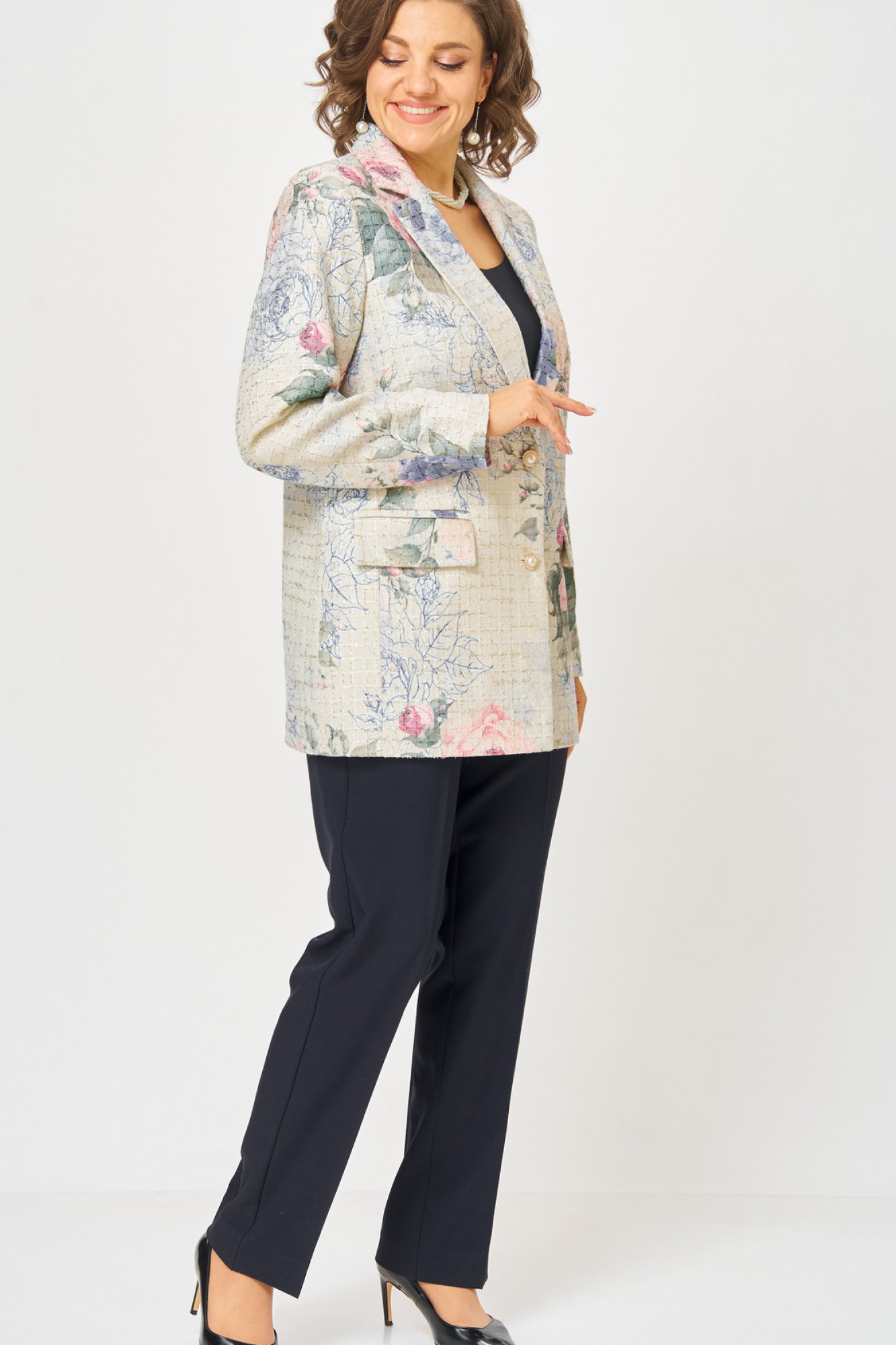 жакет хлопок 34%, полиэстер 44%, акрил 20%, люрекс 2%// брюки хлопок 60%, полиэстер 37%, эластан 3%