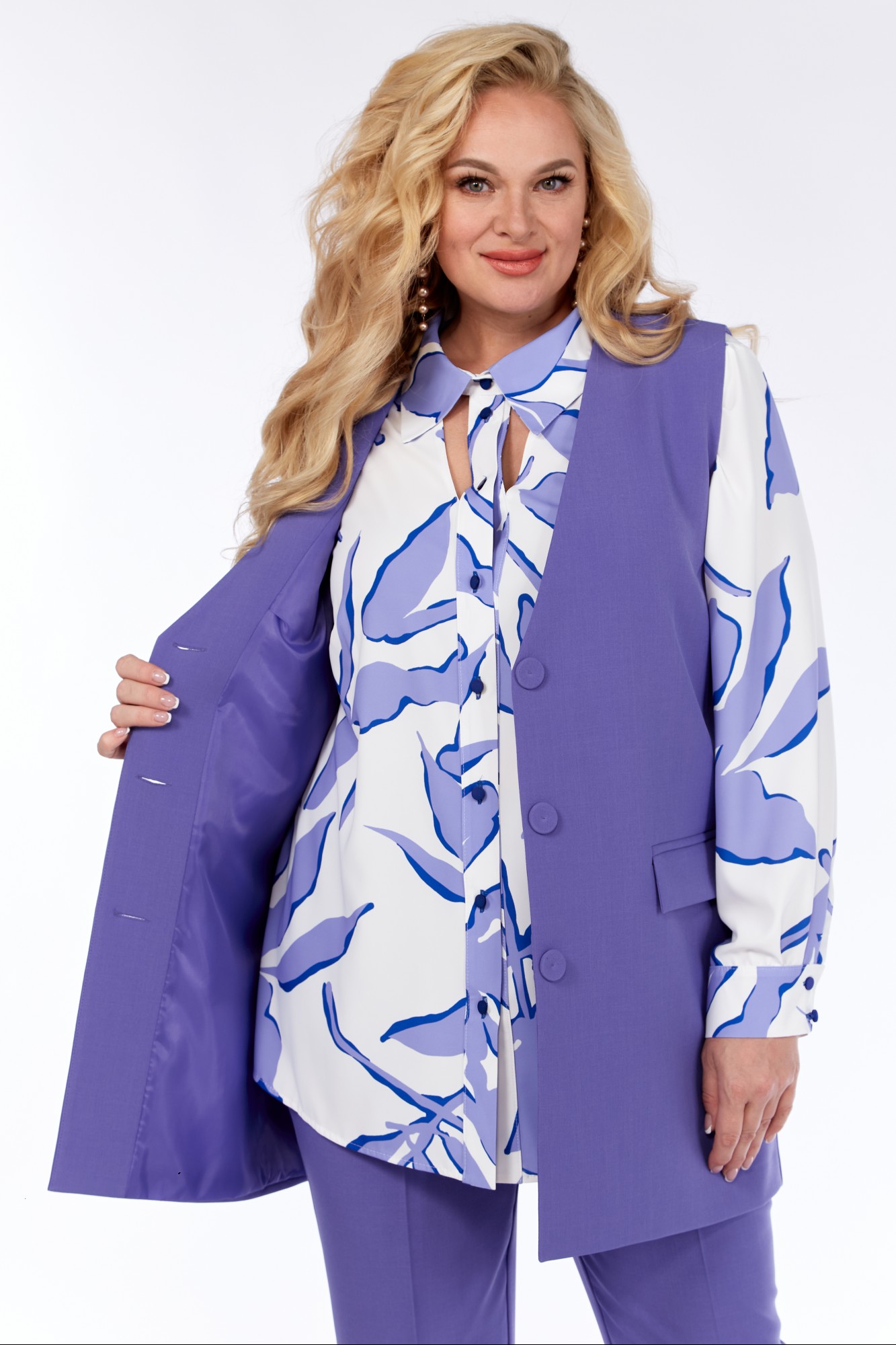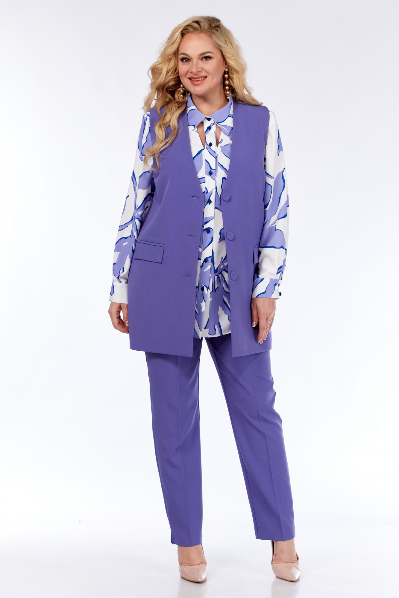 Брючный костюм Элль-Стиль 2297 лаванда, белый