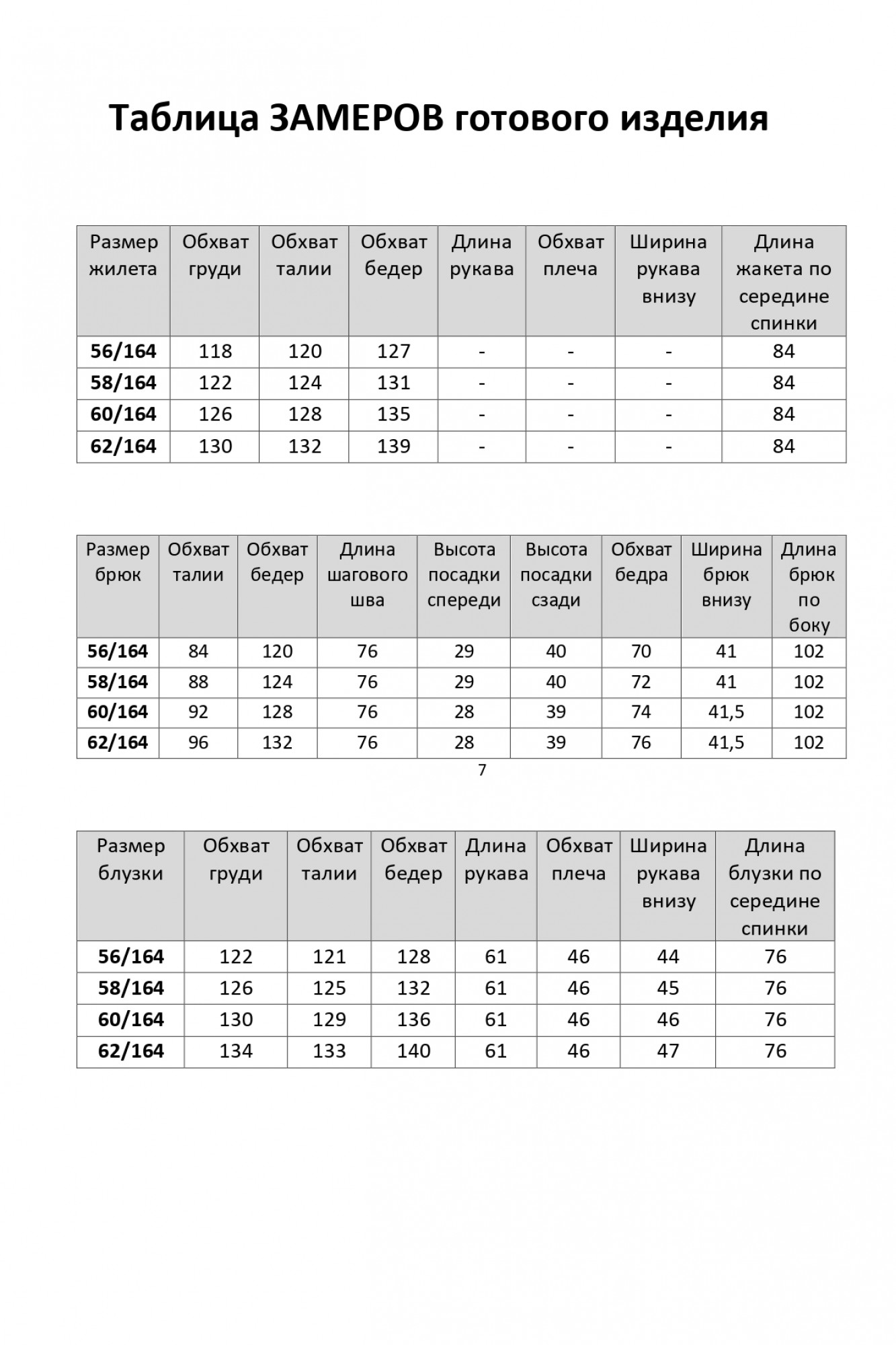 Жилет, брюки – полиэстер 50%, вискоза 50%. Блузка – полиэстер 50%, вискоза 50%