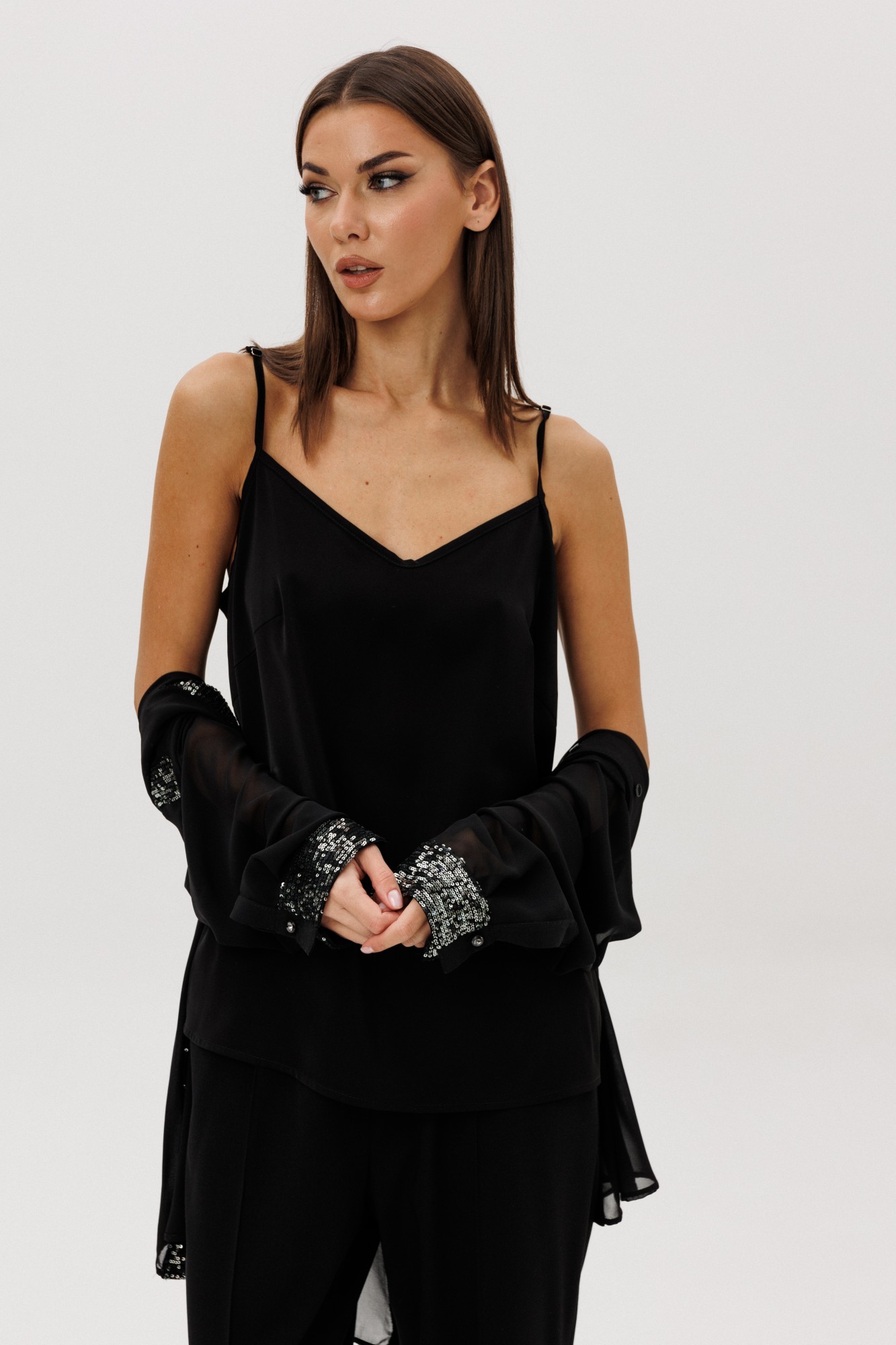Рубашка ПЭ 100% Топ ПЭ 100% Брюки ПЭ 64%, вискоза 34%, спандекс 2%