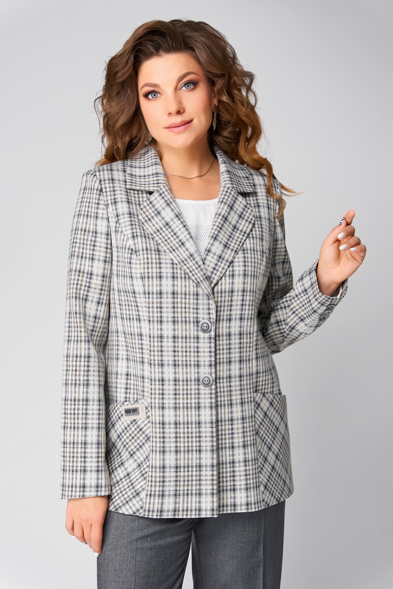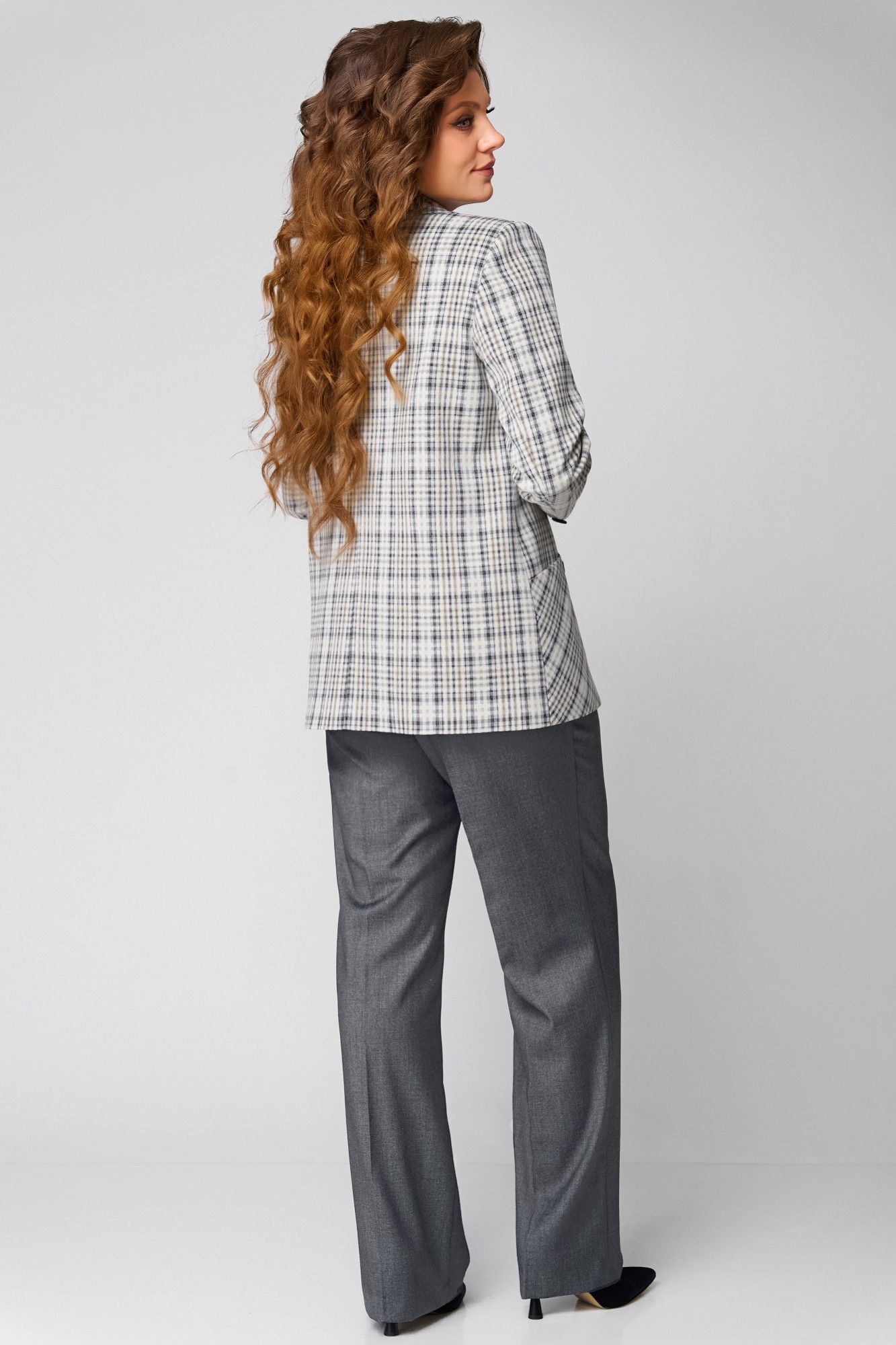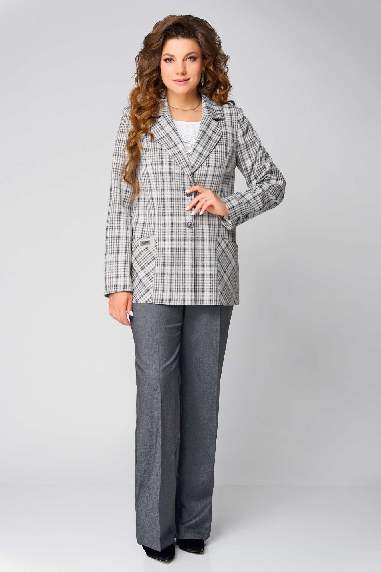 жакет: 60% вискоза, 36% полиамид 4% спандекс; брюки и блузка: 70% полиэстер, 30% вискоза.