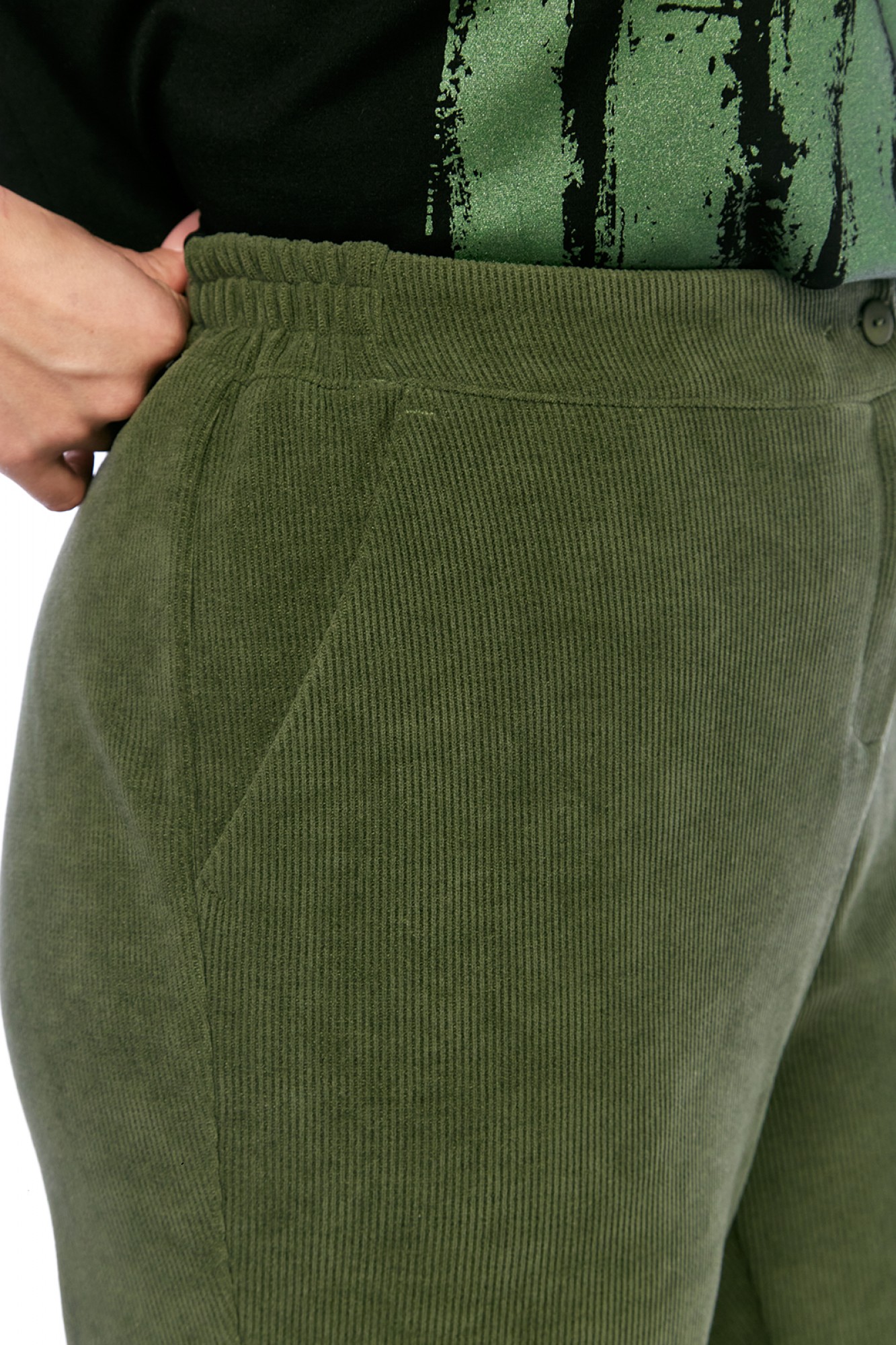 джемпер: вискоза — 85%, нейлон — 15%. Брюки: вискоза — 65%, полиэстер — 18%, полиамид — 13%, спандекс — 4%.